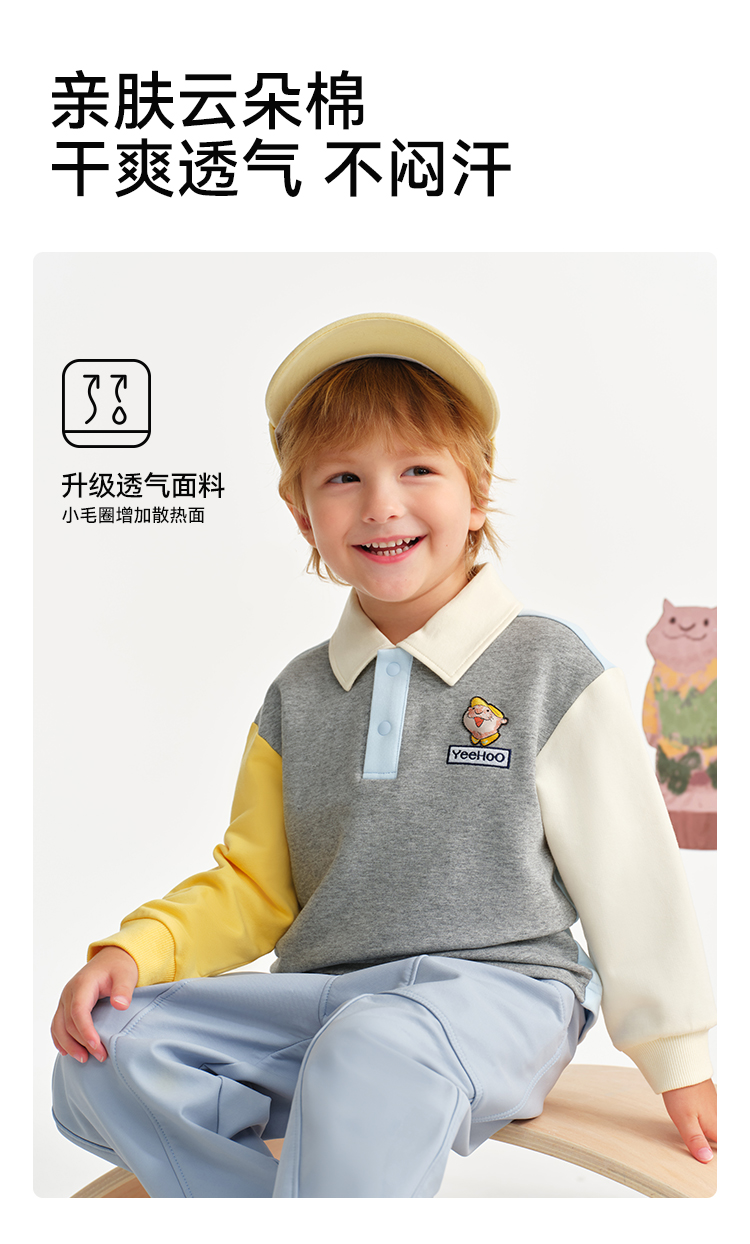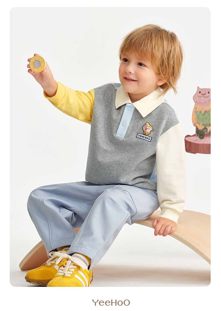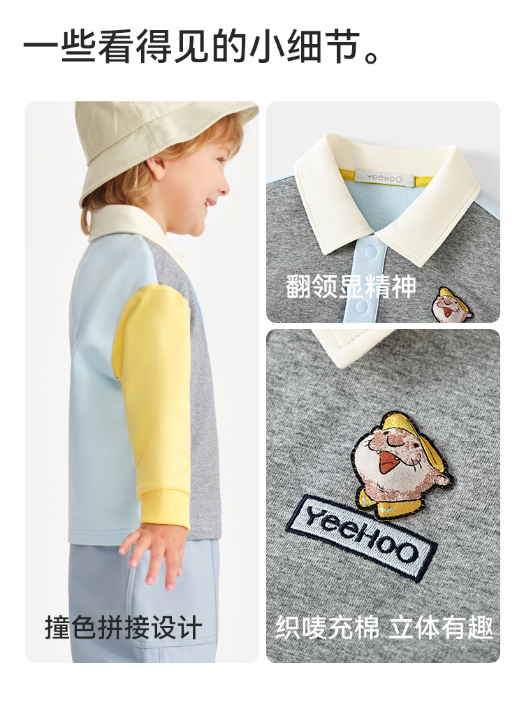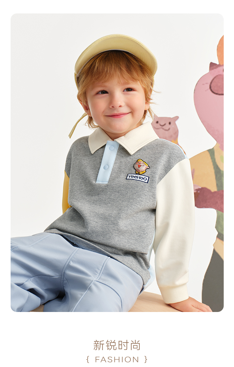 【英氏】【米雷联名款】【90-130】男童春秋polo领卫衣