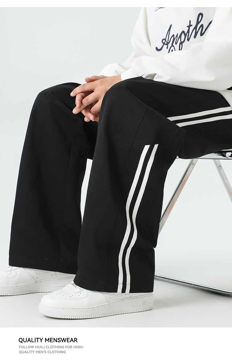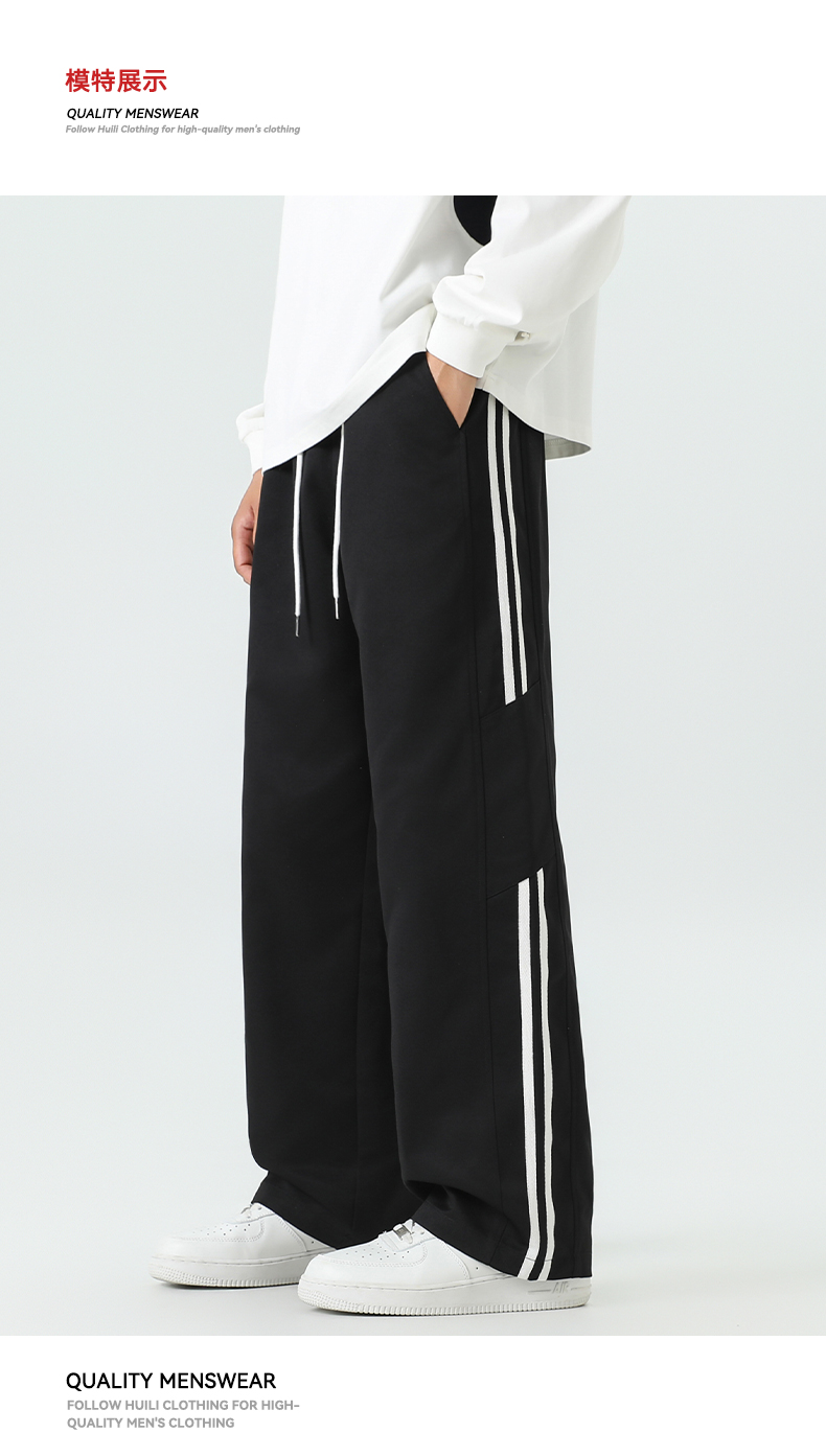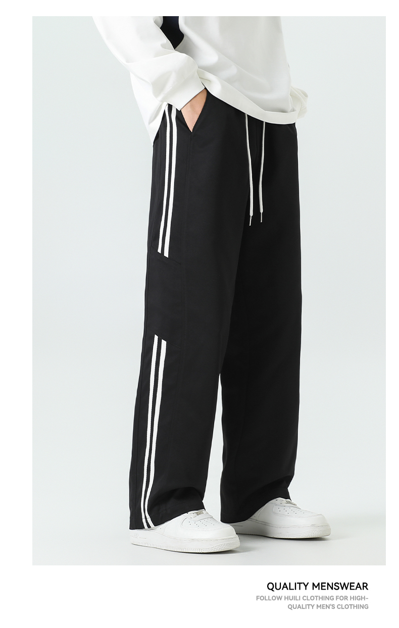 回力条纹裤子男款2025秋季新款宽松青少年阔腿裤2025新款休闲长裤