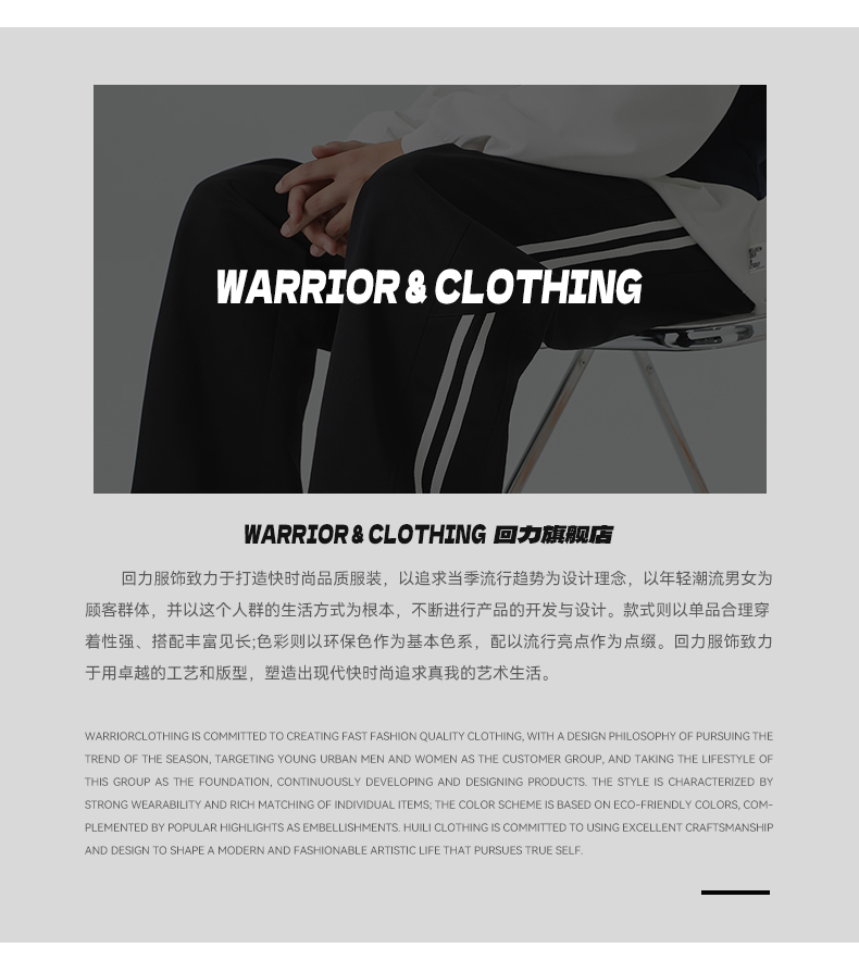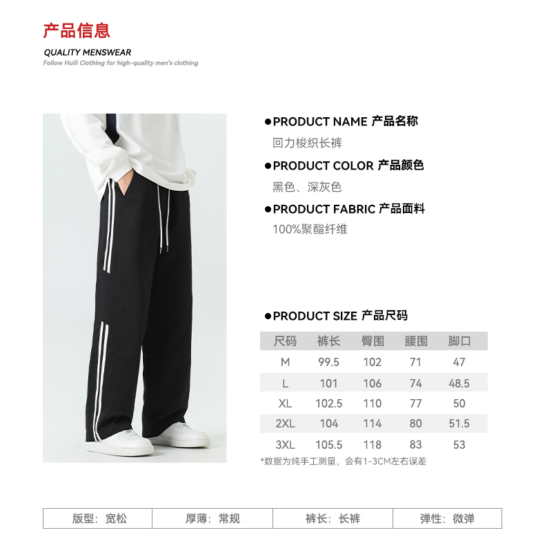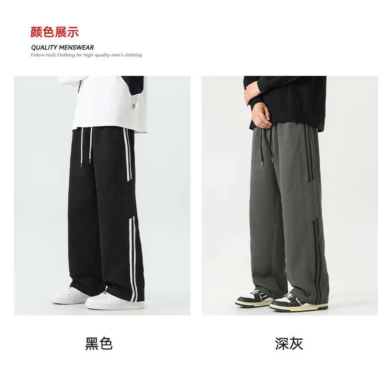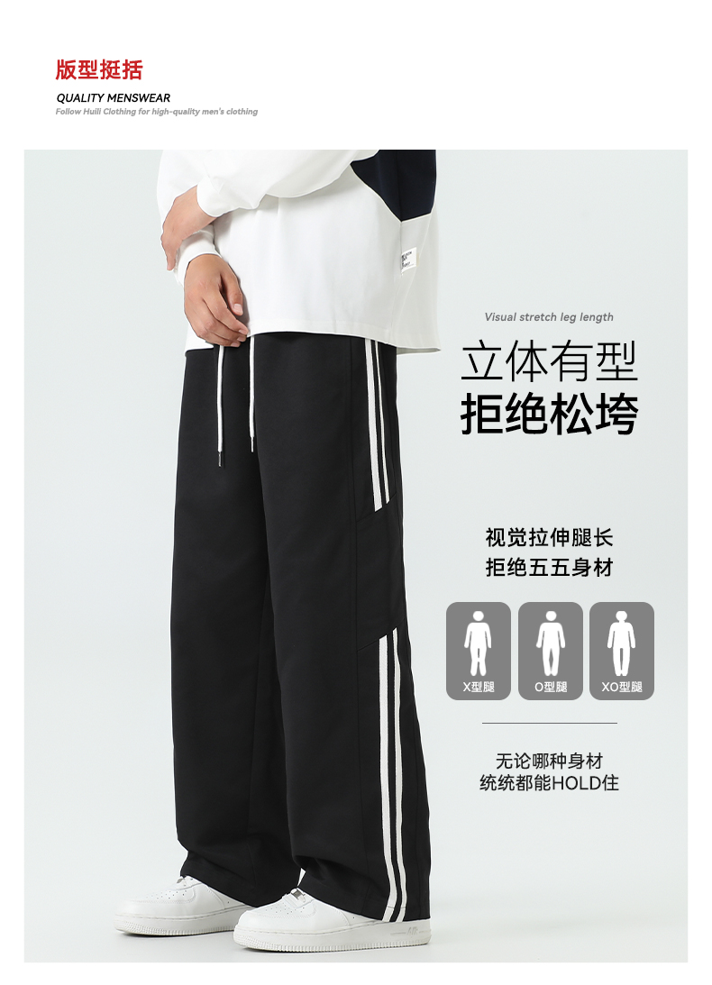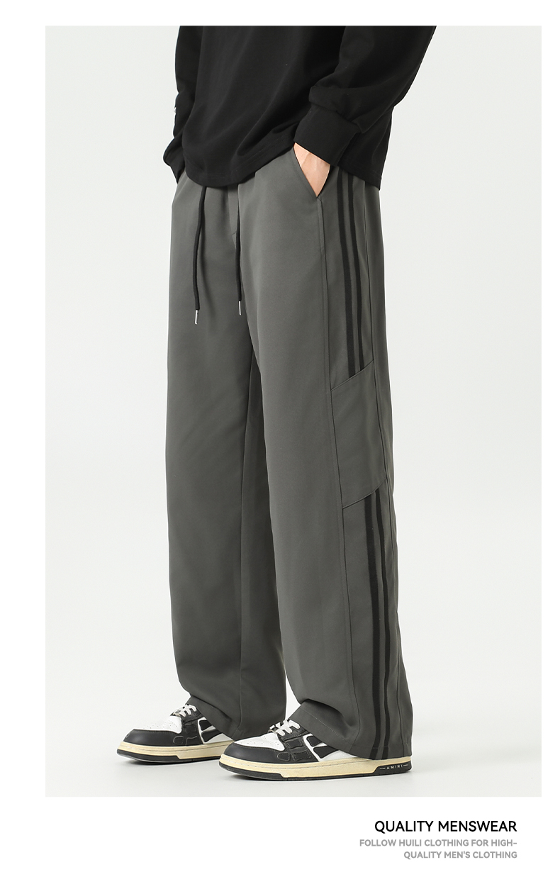 回力条纹裤子男款2025秋季新款宽松青少年阔腿裤2025新款休闲长裤