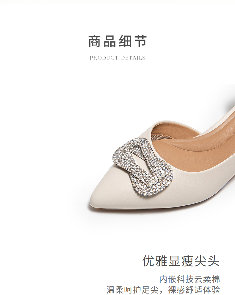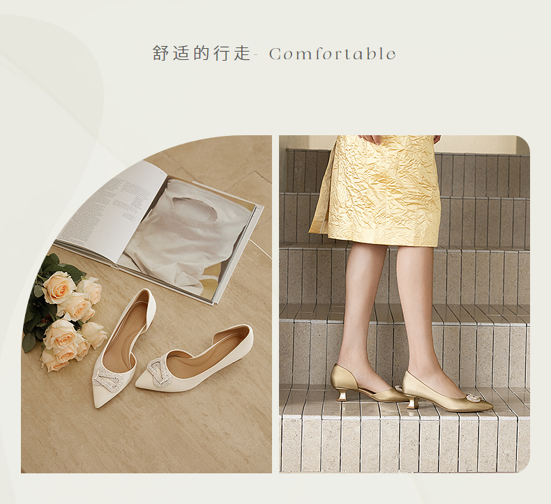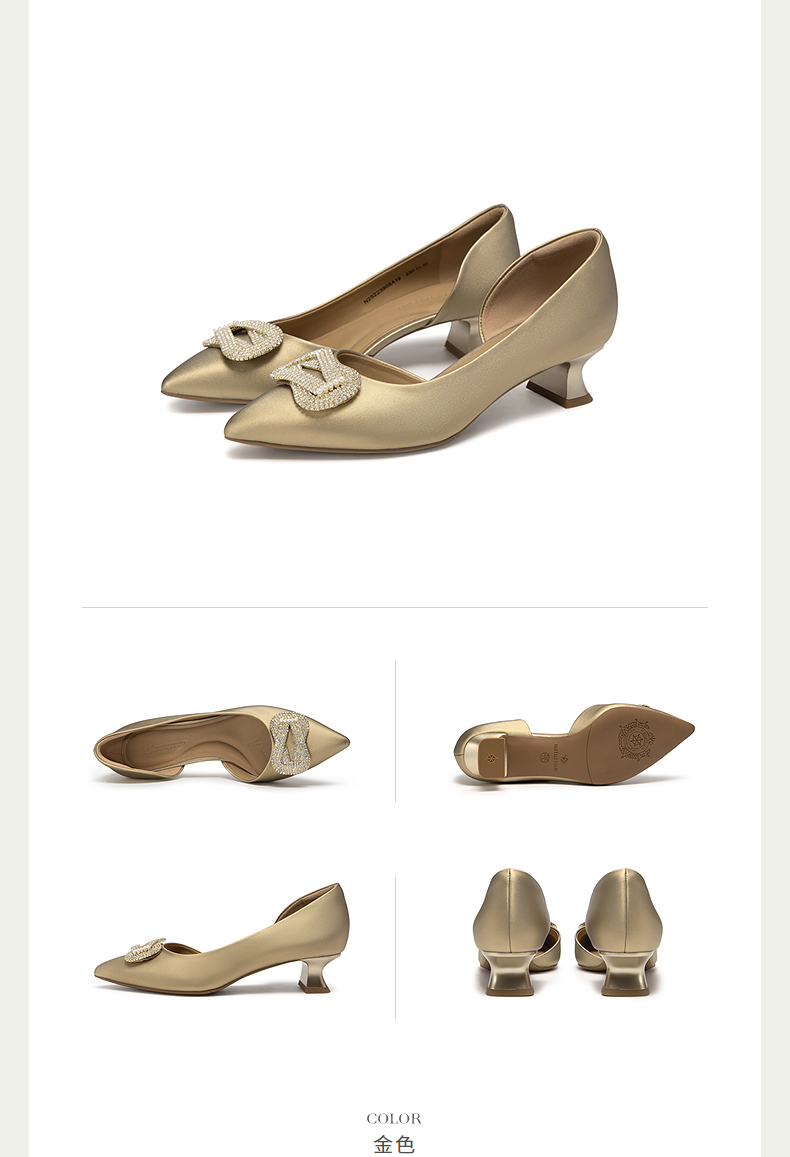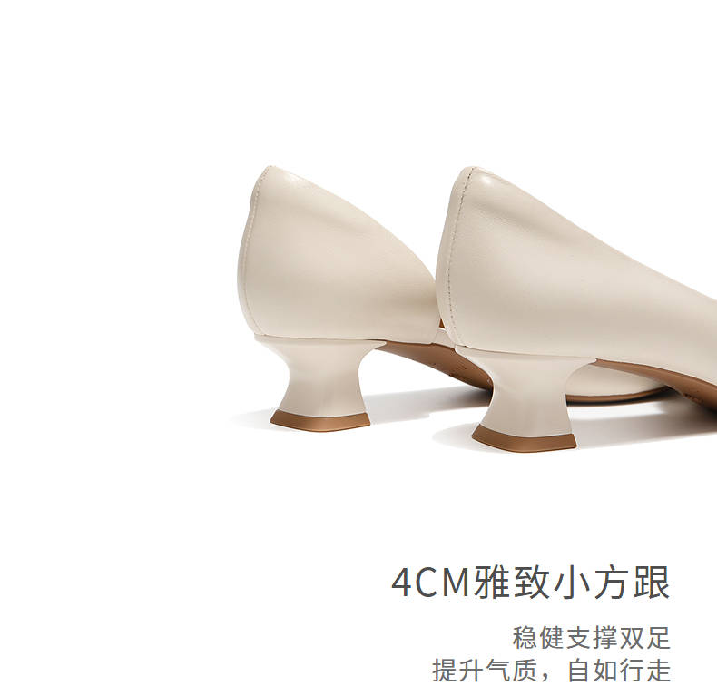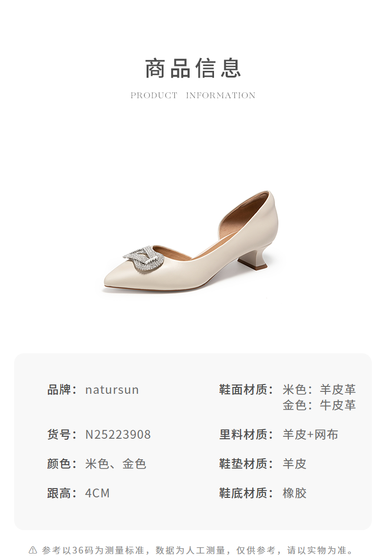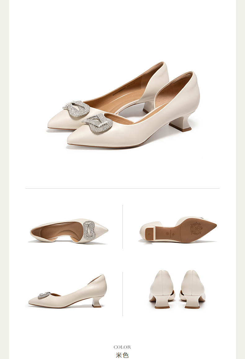 natursun尖头单鞋女真皮不累脚小猫跟优雅精致婚鞋N25223908