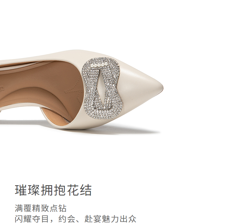 千百度婚鞋蕾丝钻带包头拖女婚礼宴会细高跟凉拖鞋A25257786