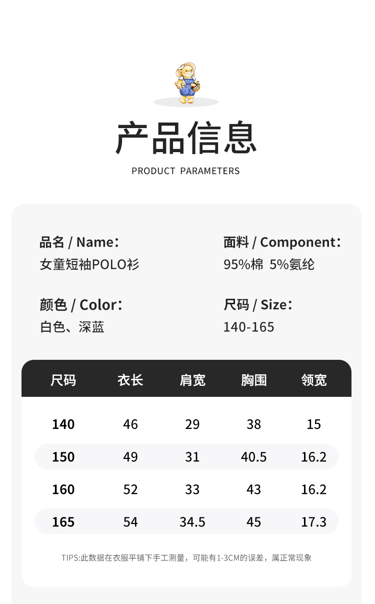 【140-165】【精典泰迪】女童夏季短袖POLO衫