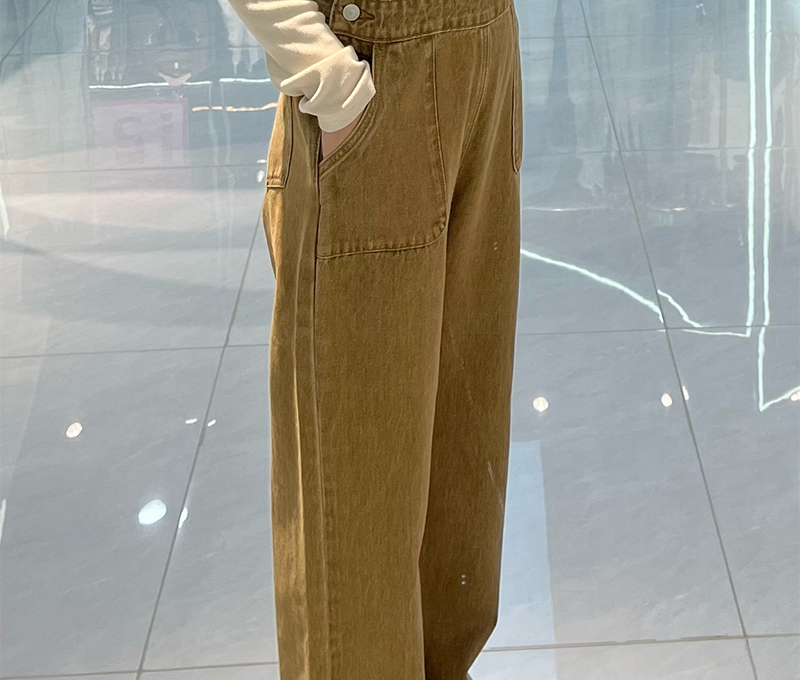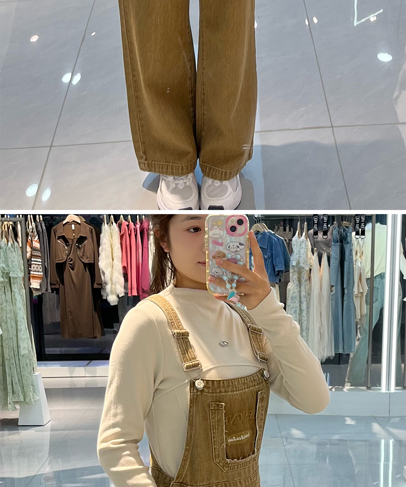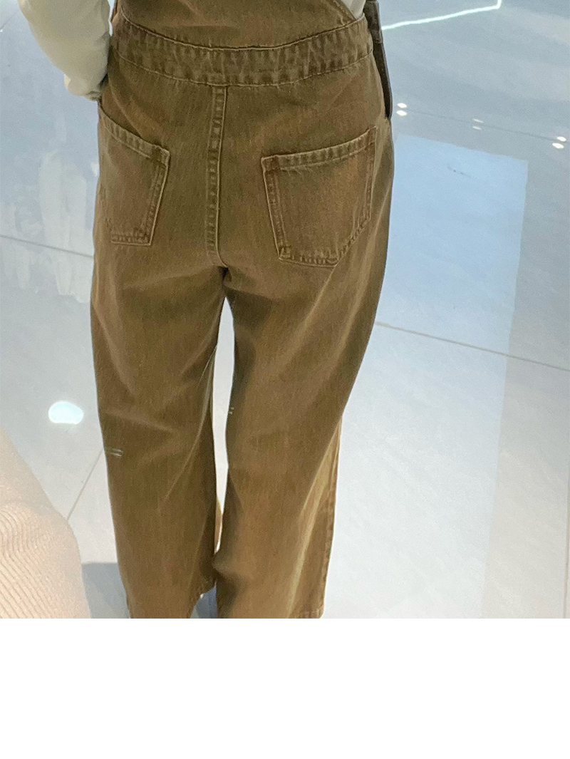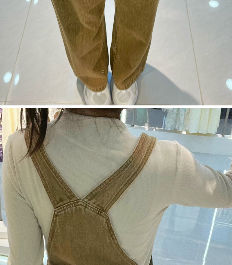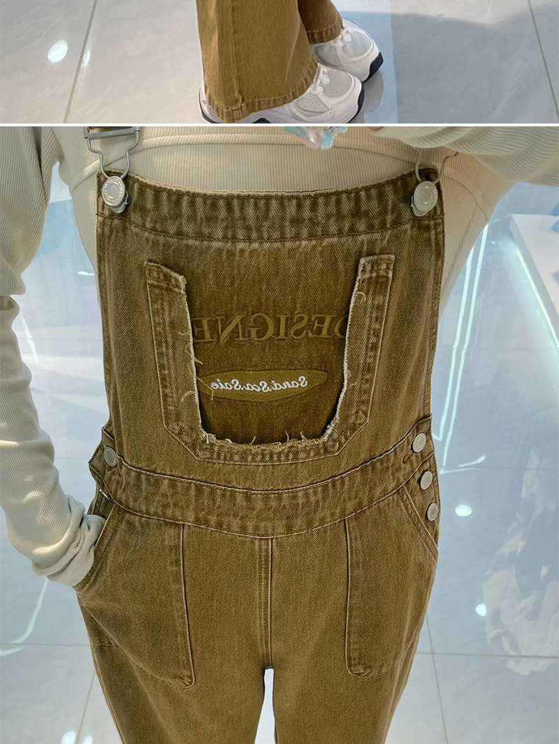 P&X设计师女装春秋款减龄休闲显瘦牛仔背带长裤 824130098 卡其