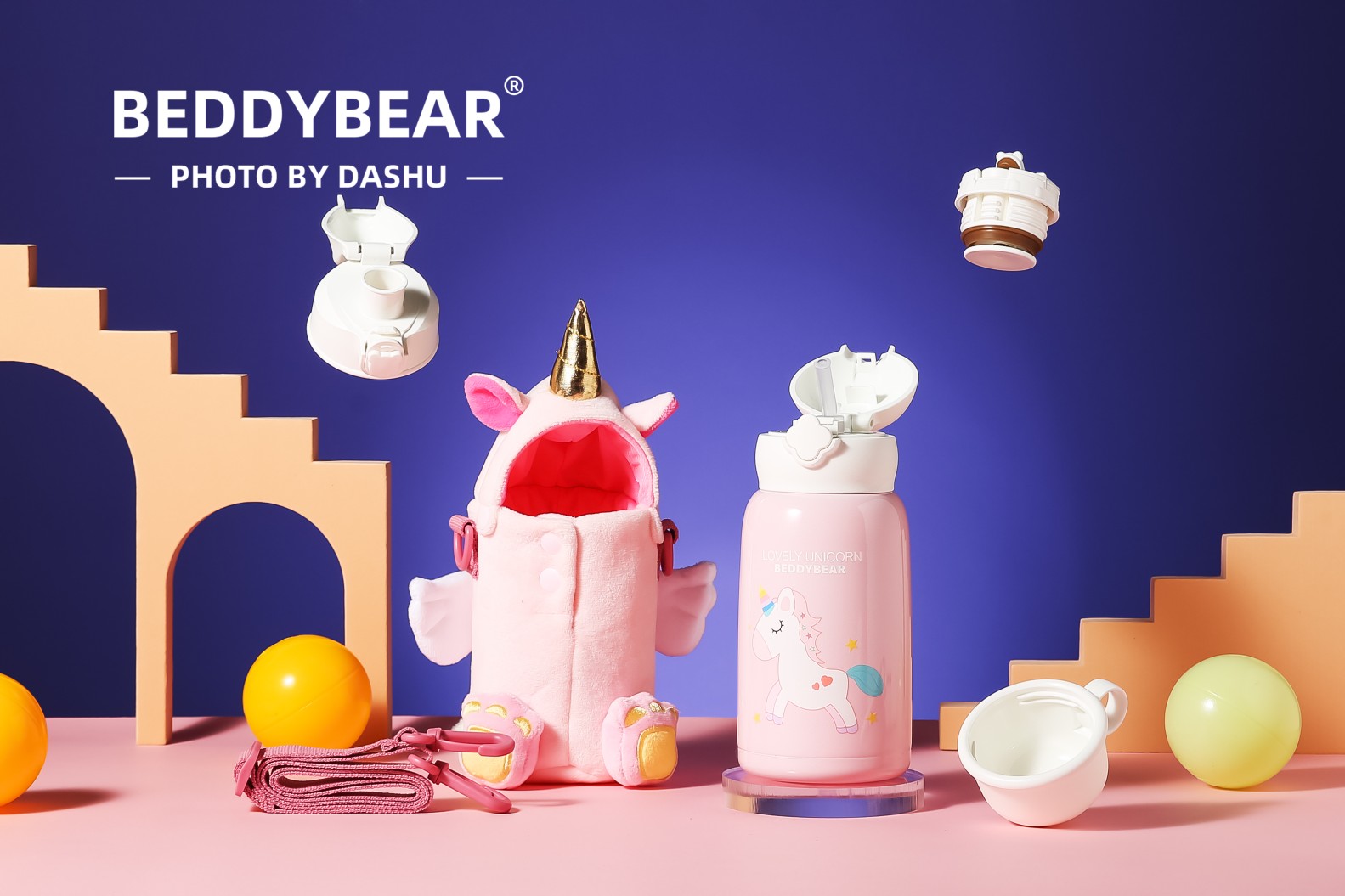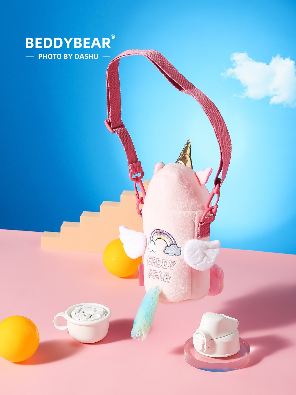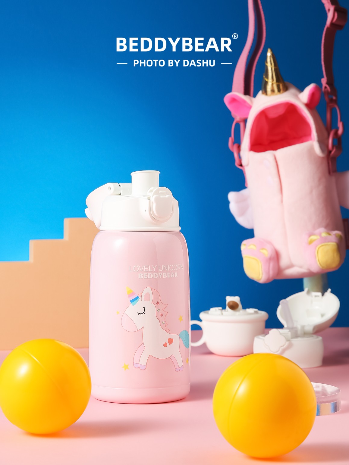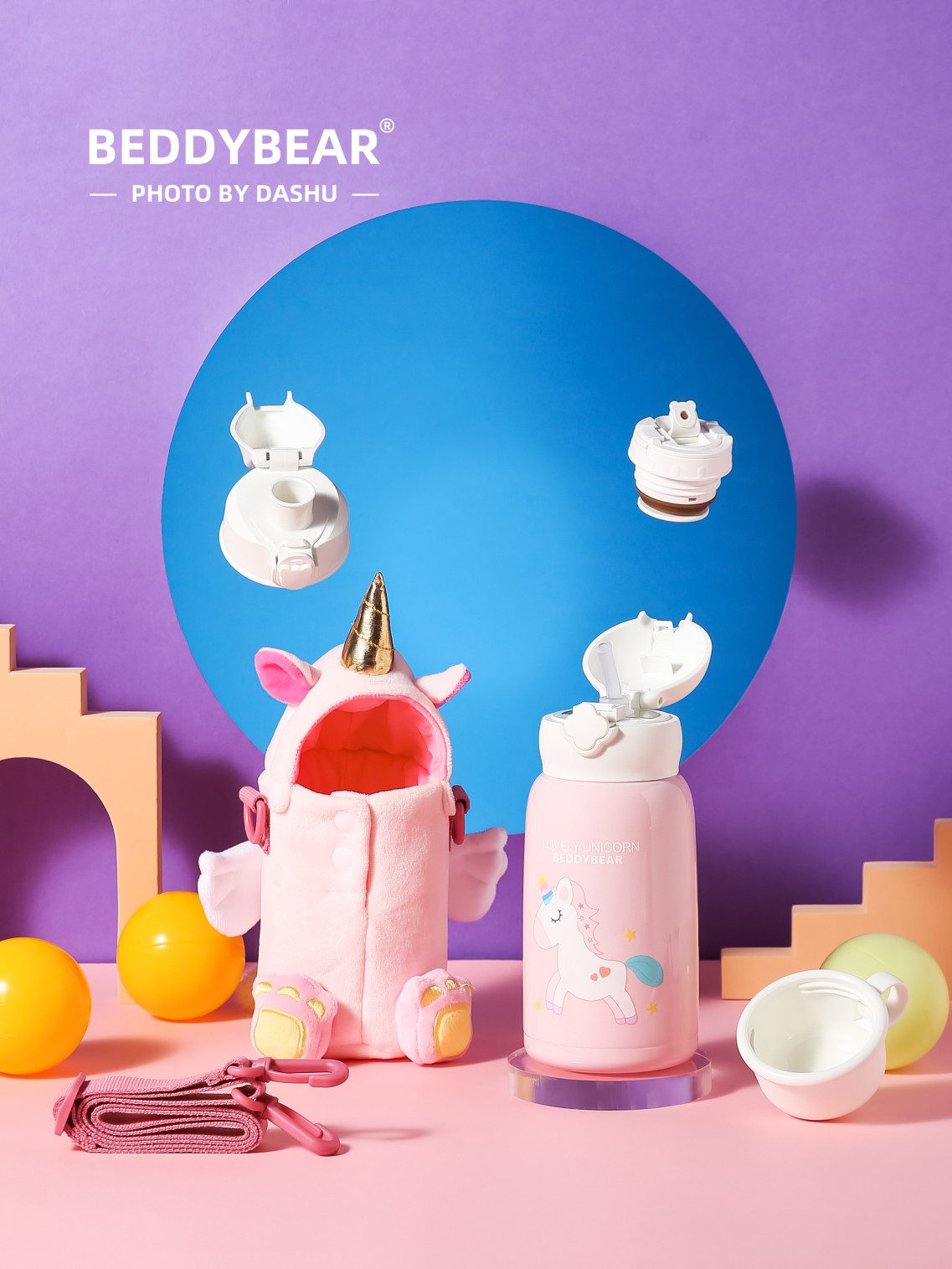杯具熊新款四叶草儿童保温杯毛绒独角兽带吸管幼儿园小学生水杯-15