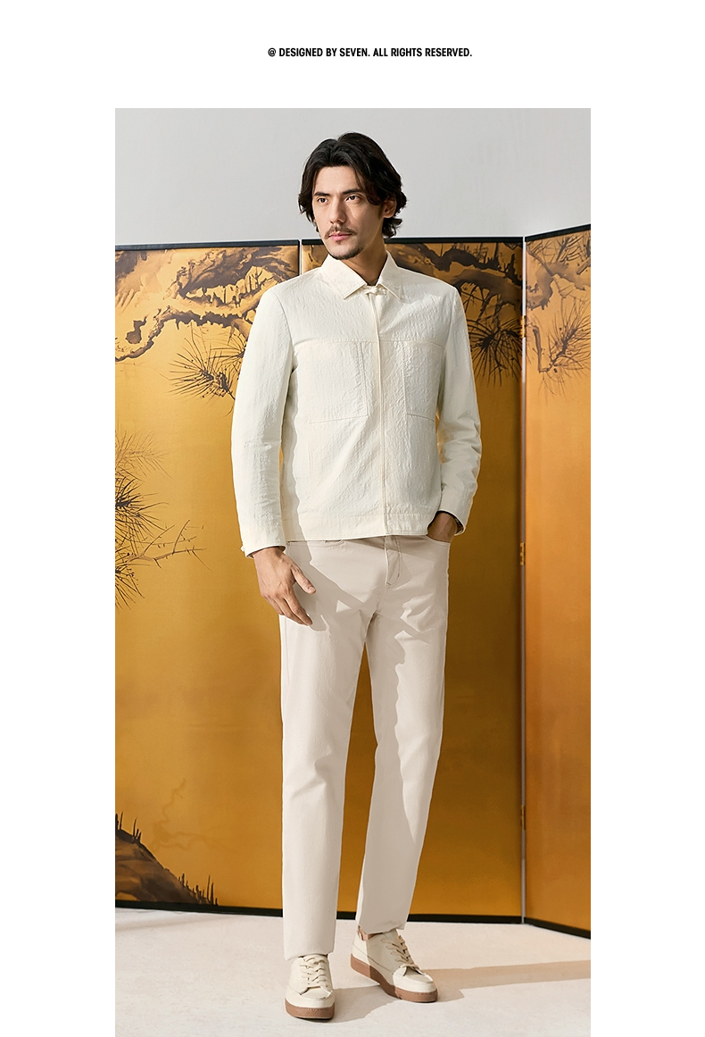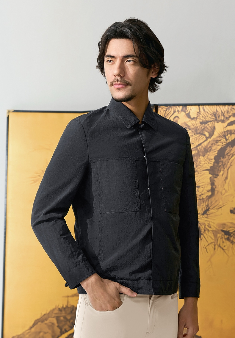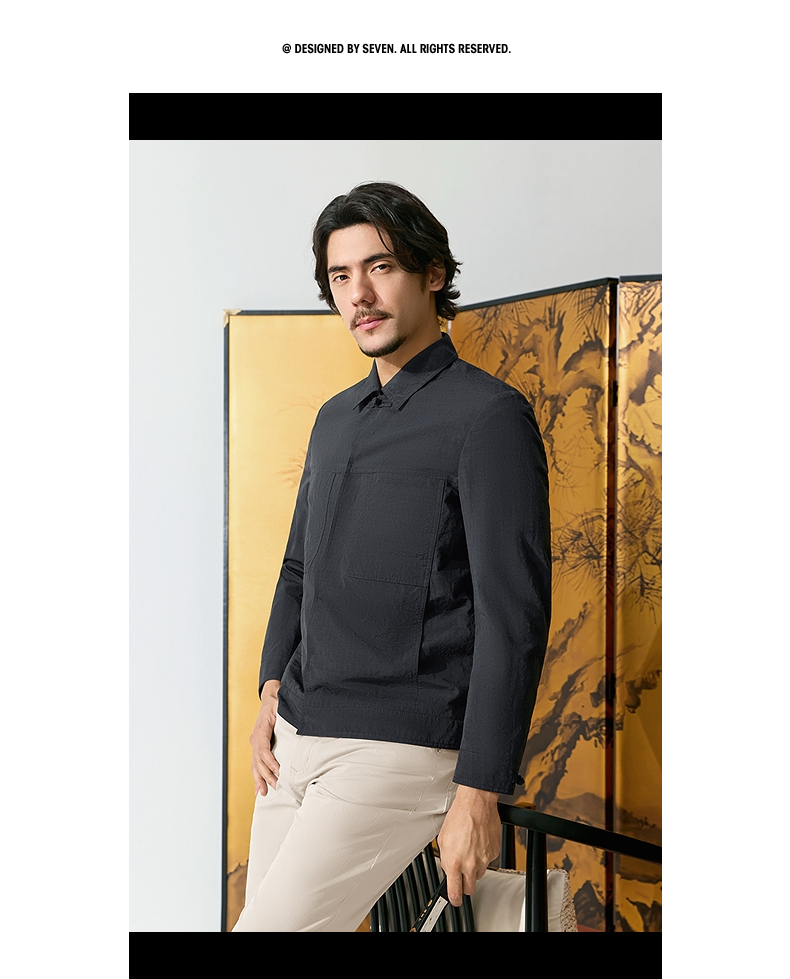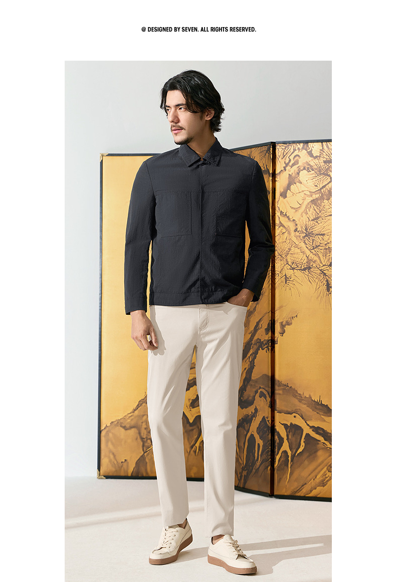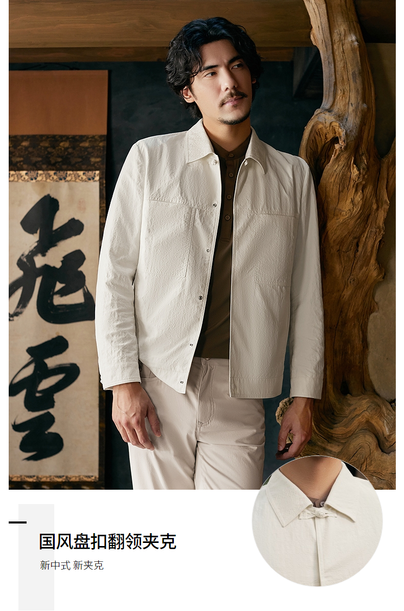 【中华立领】柒牌男士翻领夹克2025春季新款国风盘扣提花肌理外套128K70630