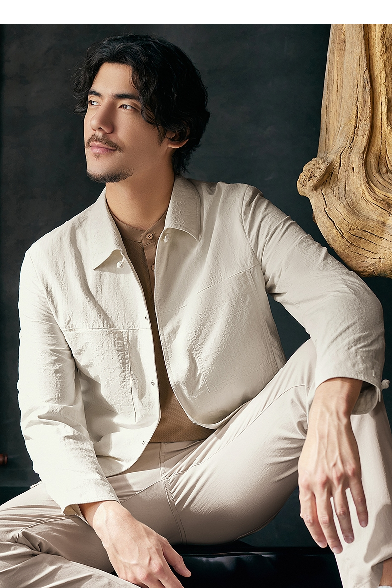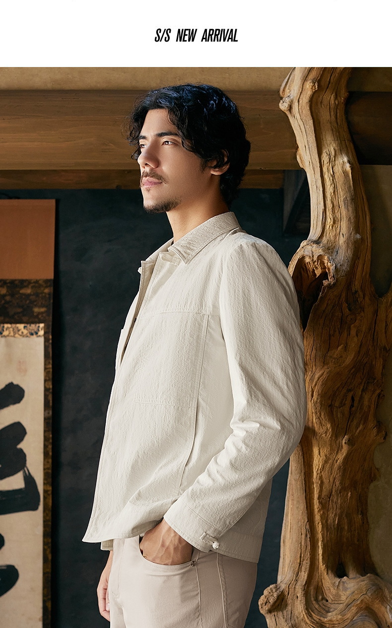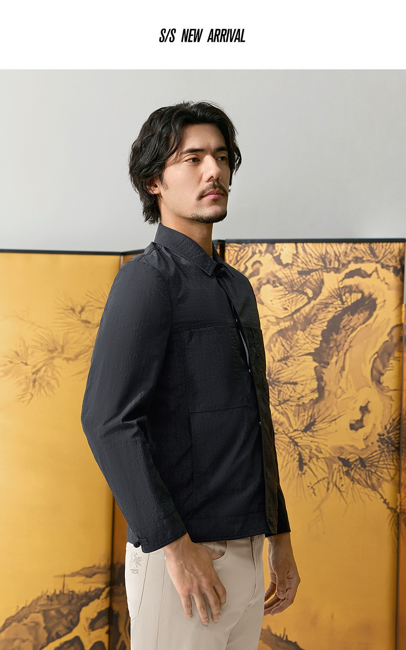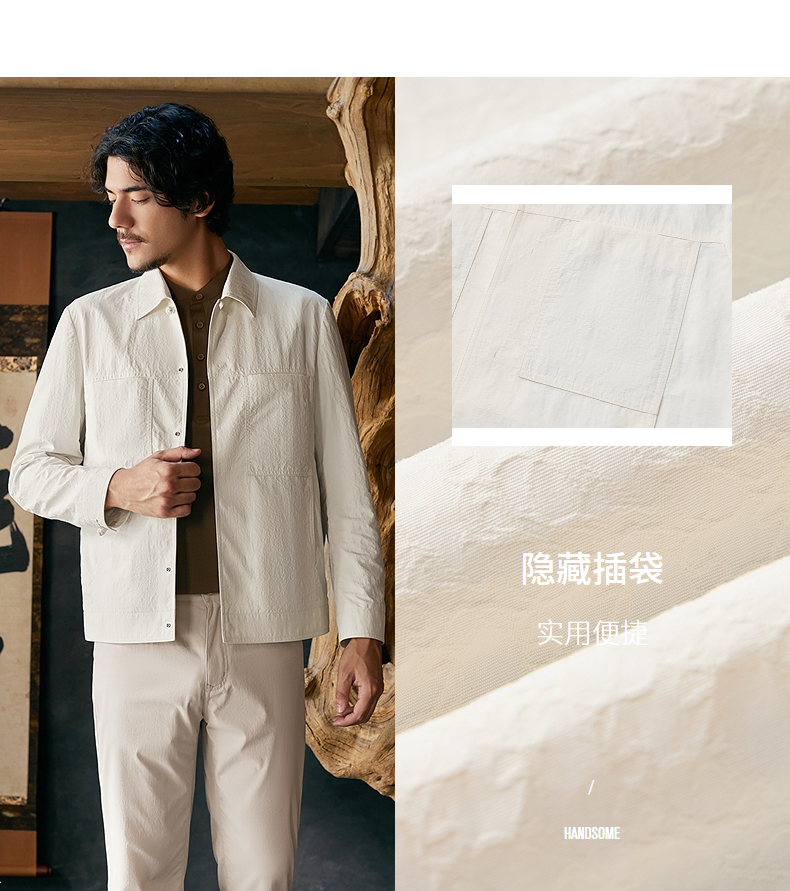 【中华立领】柒牌男士翻领夹克2025春季新款国风盘扣提花肌理外套128K70630