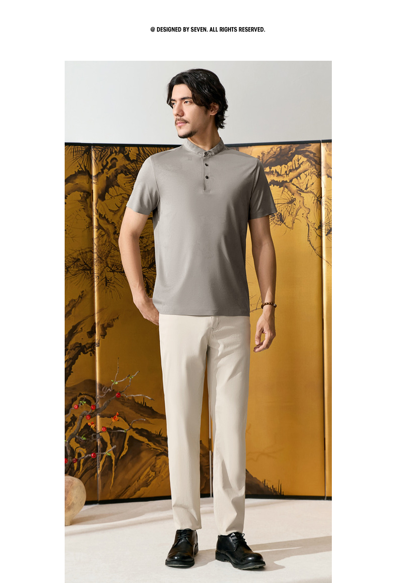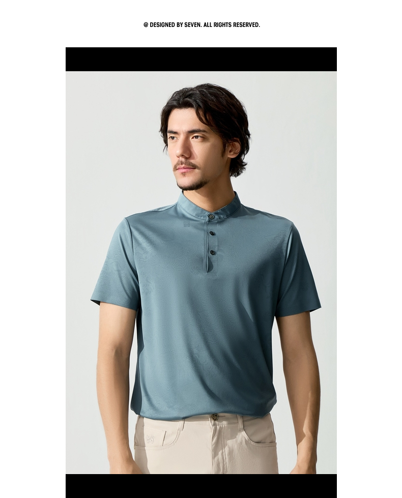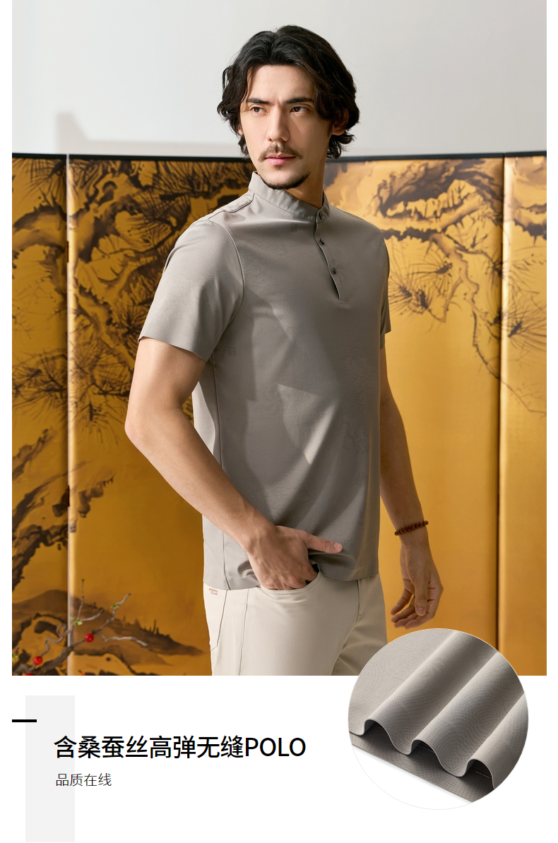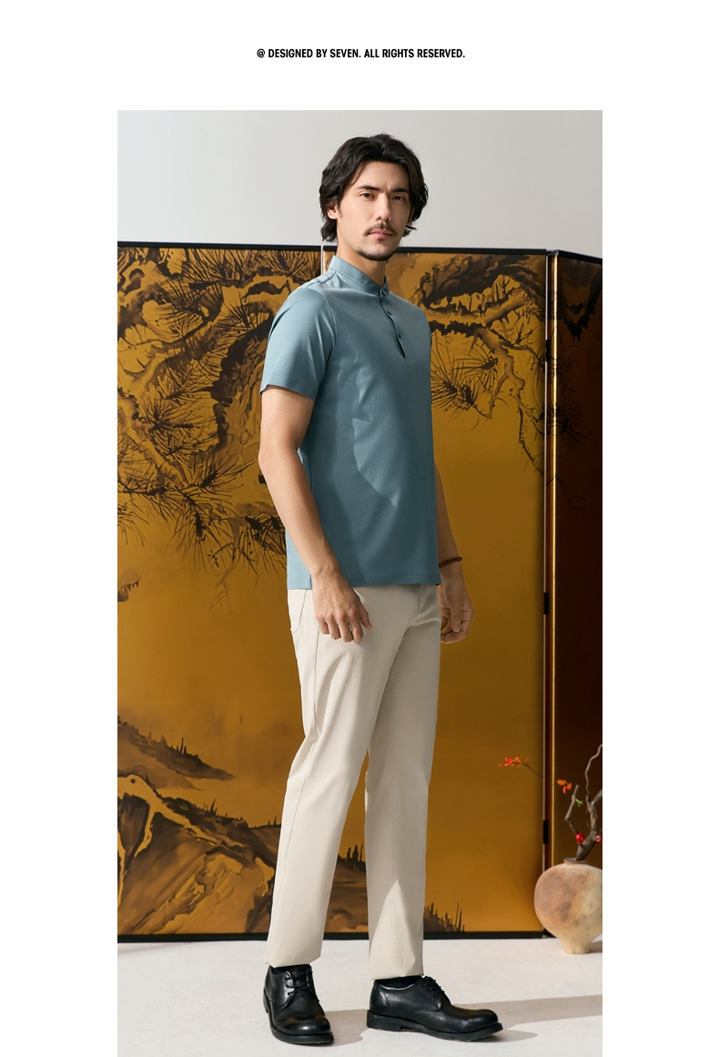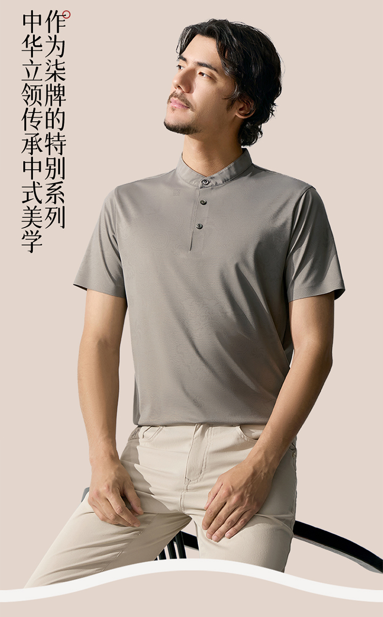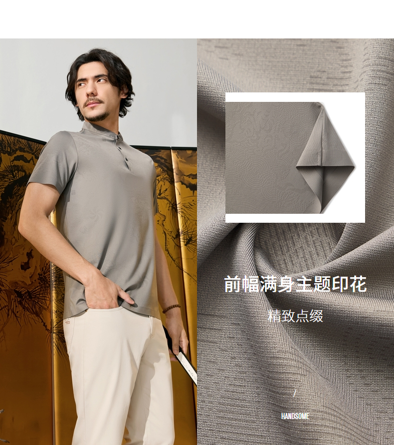 柒牌高弹短袖Polo衫男士夏季新品国风图案满身印花T恤128T72340