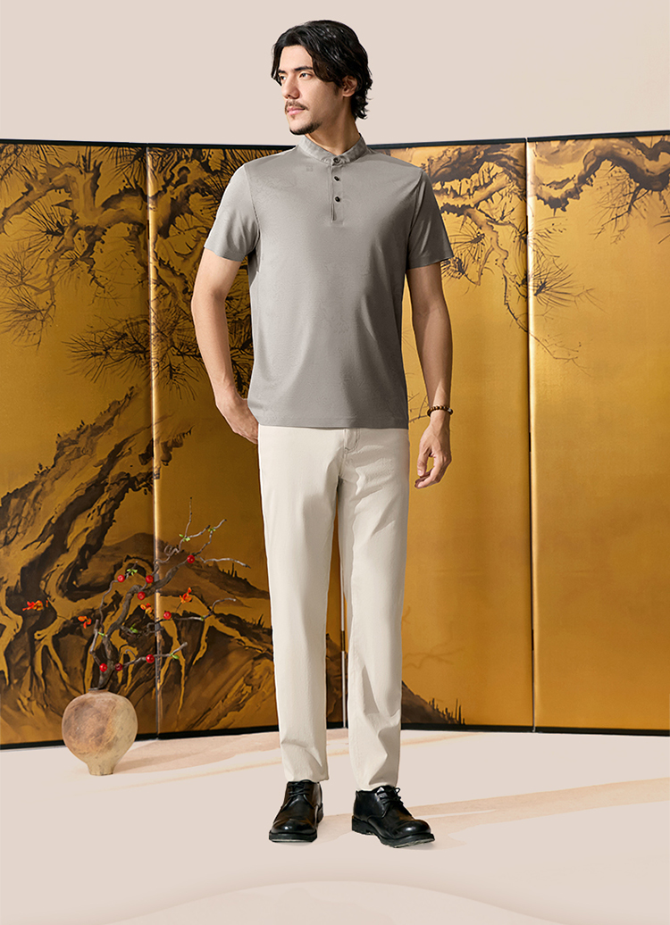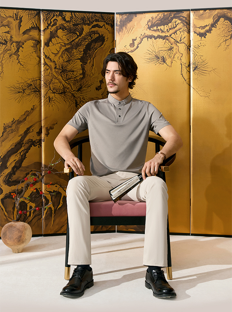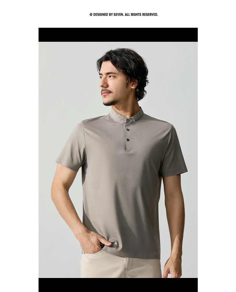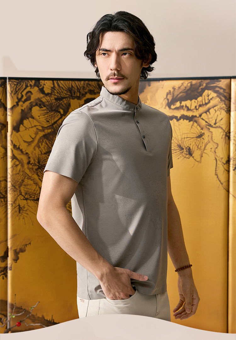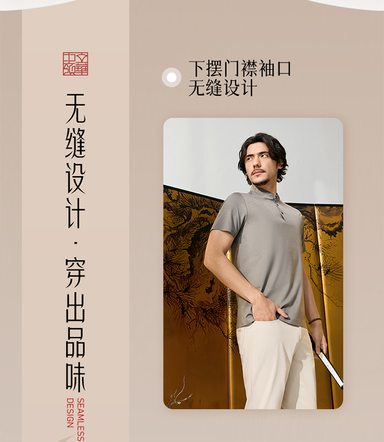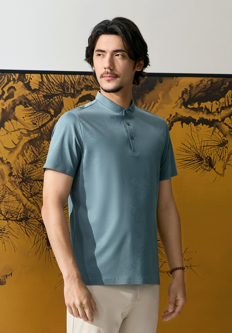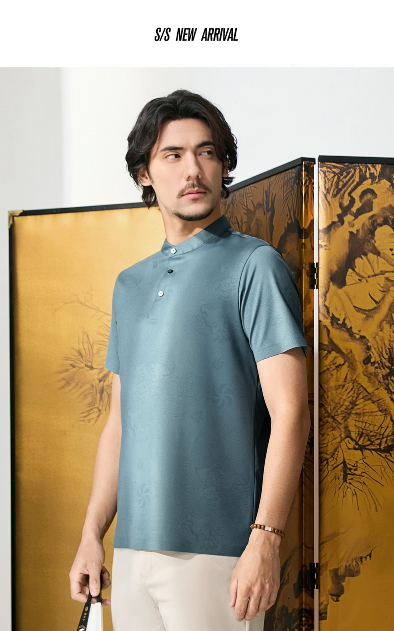 柒牌高弹短袖Polo衫男士夏季新品国风图案满身印花T恤128T72340