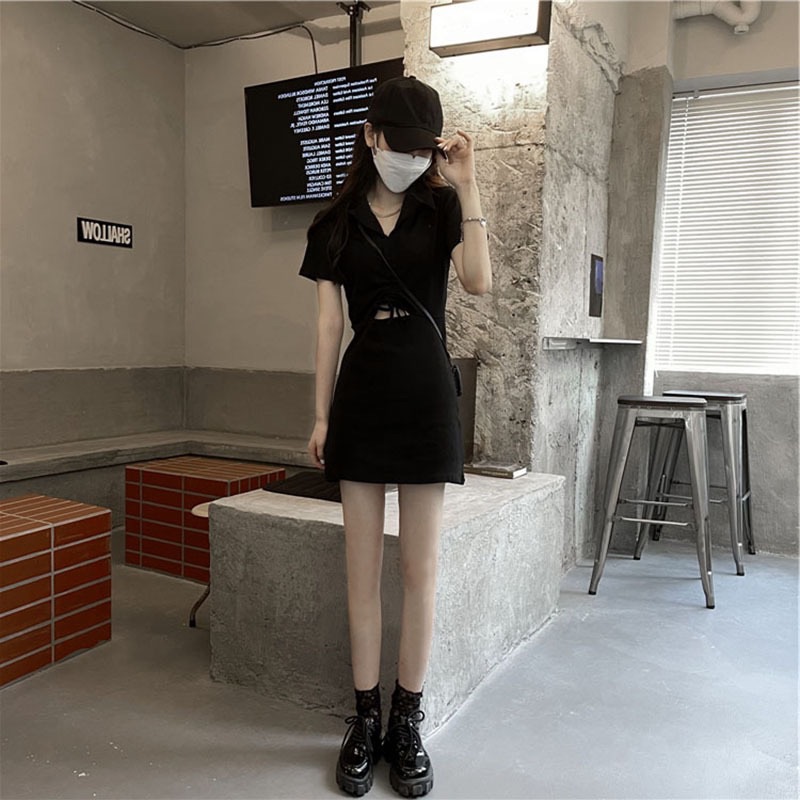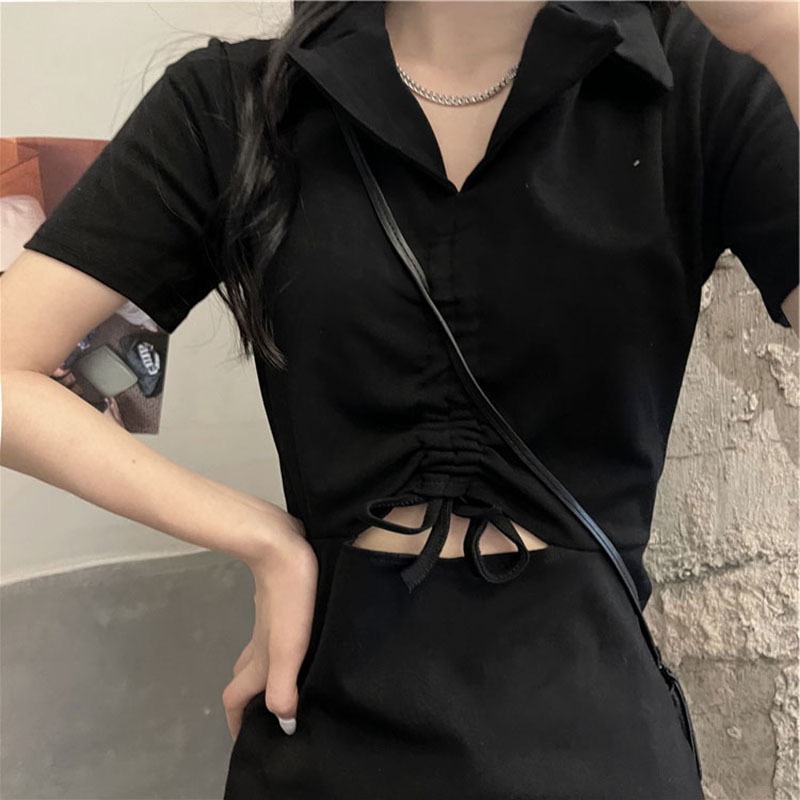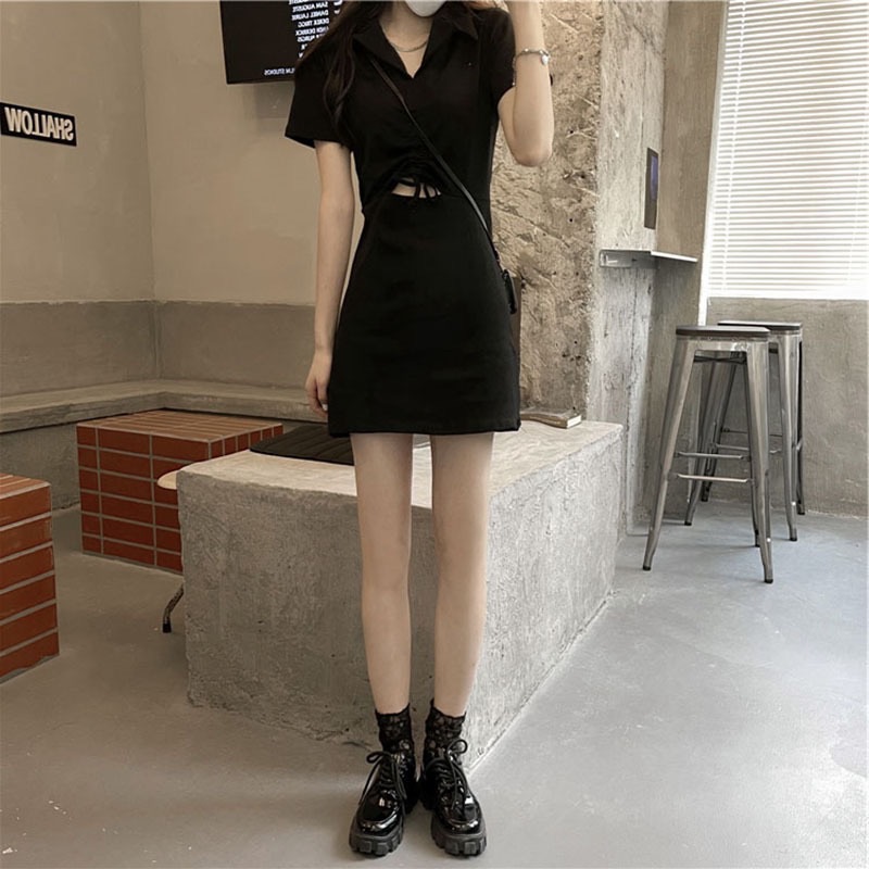 (清仓现发)【社群供G】2022夏季polo连衣裙设计感假两件抽绳褶皱连衣裙