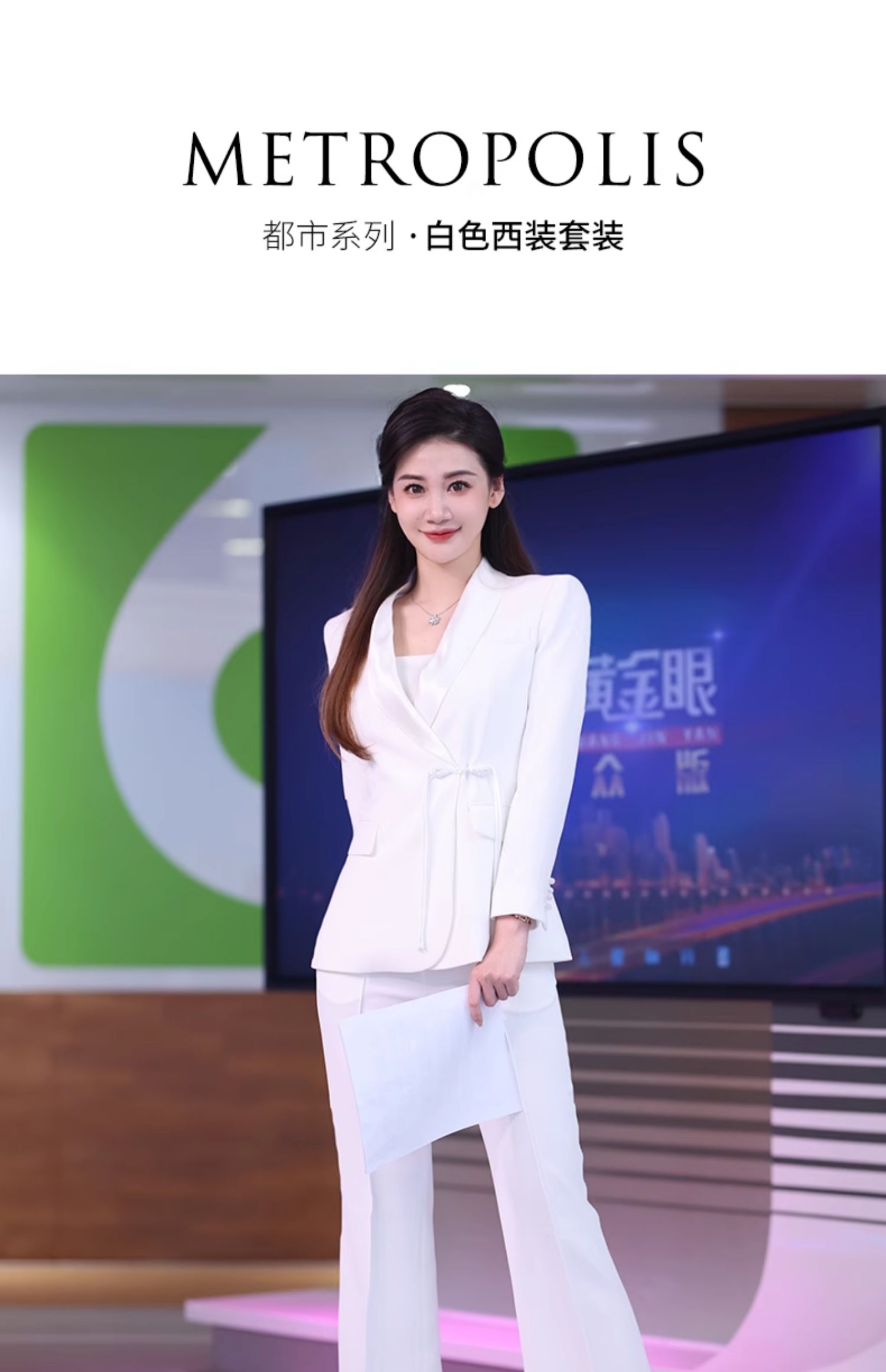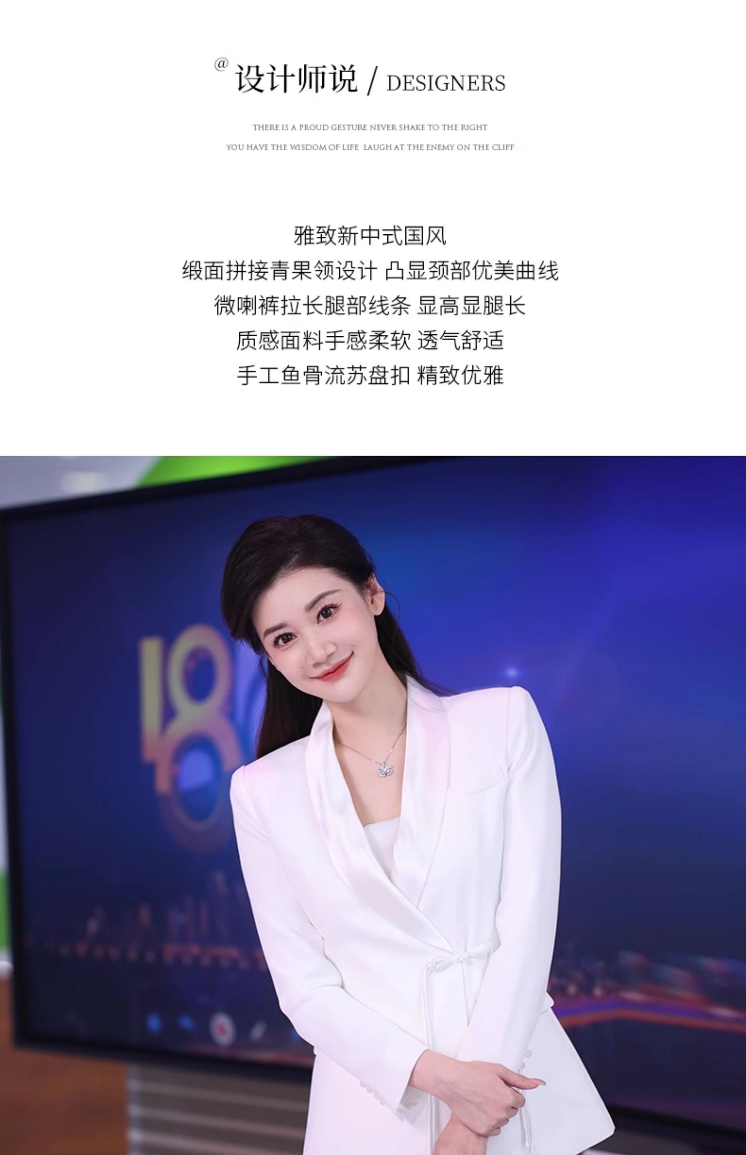 IWY/高端白色西装微喇裤套装女气质国风新中式盘扣职业装工作服CP2078