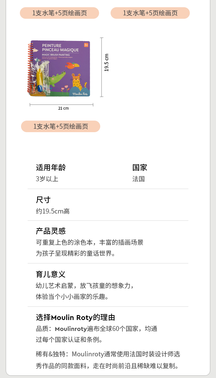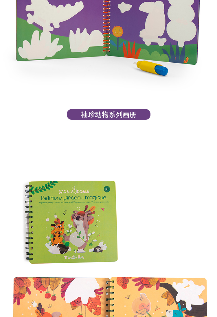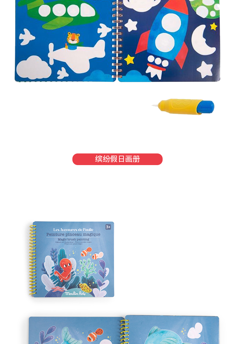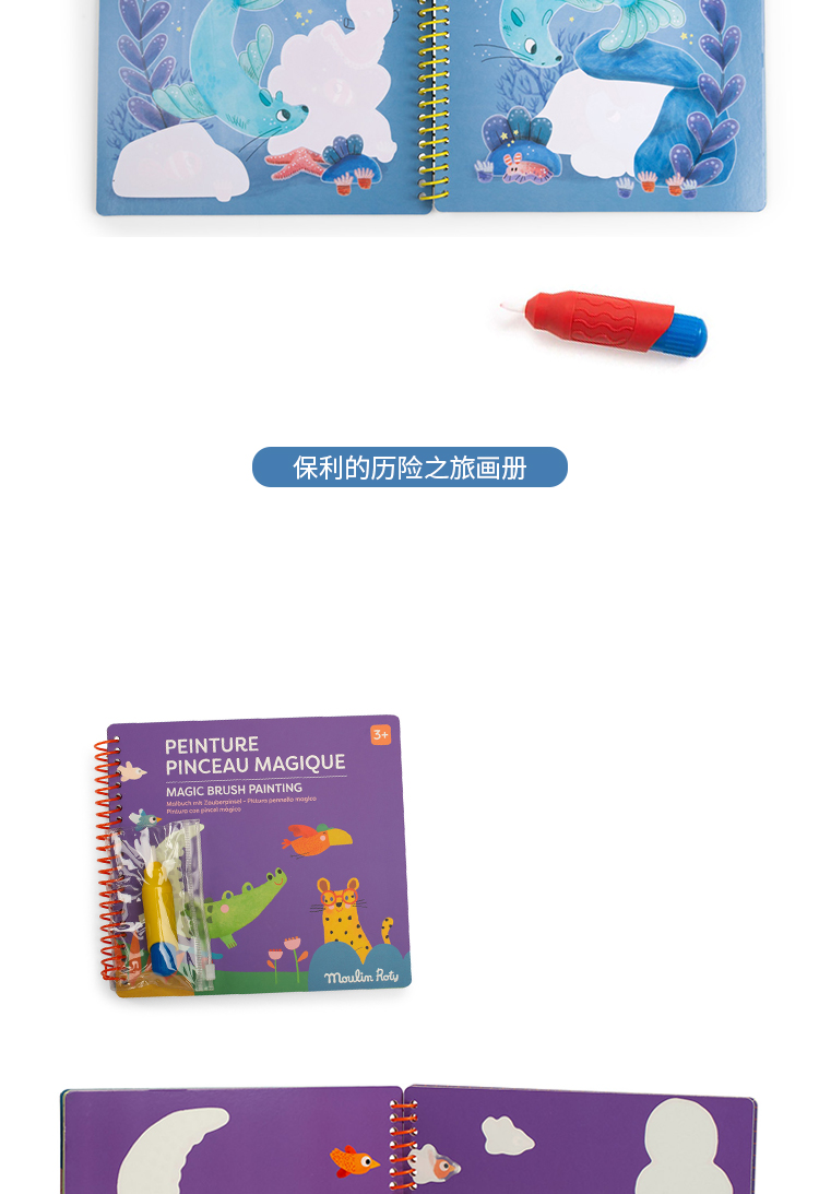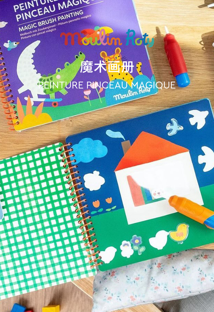 Moulin Roty 缤纷乐主题 水魔力涂色画册 适合三岁以上 涂水显色 可重复上色 法国品牌- 661609