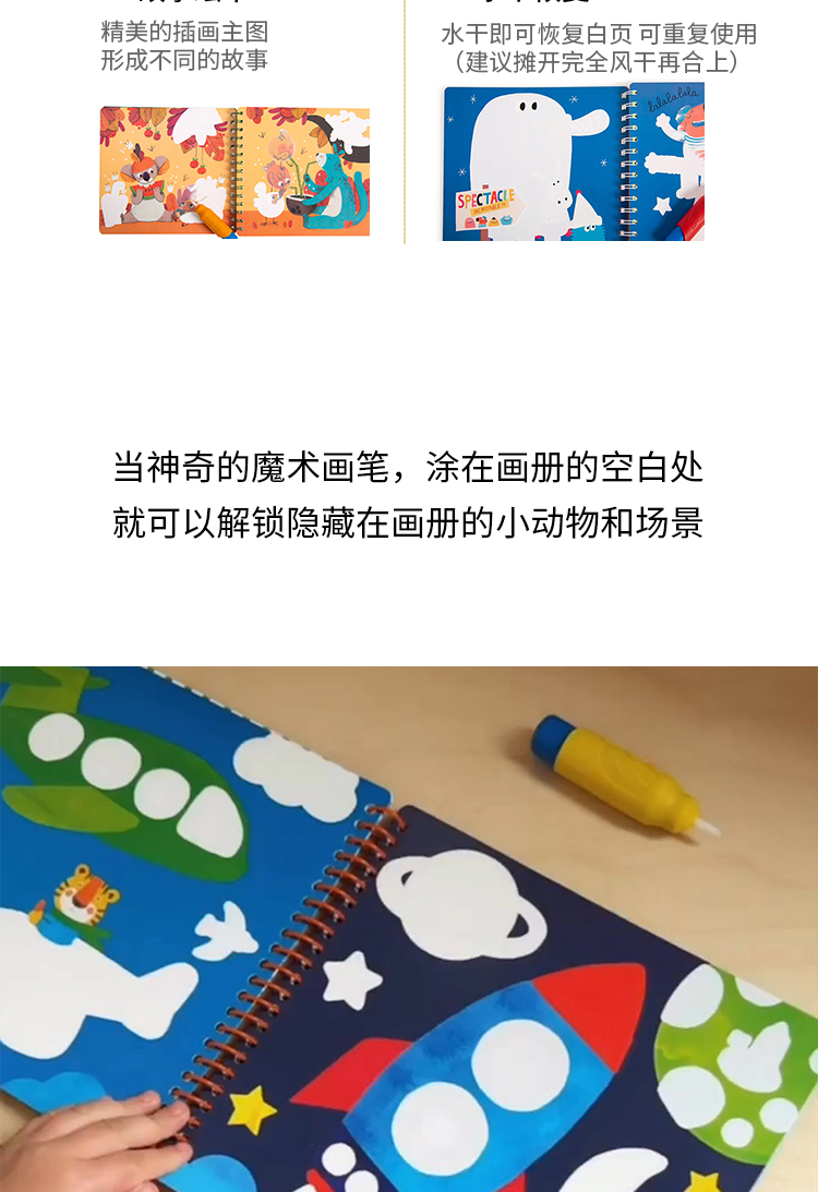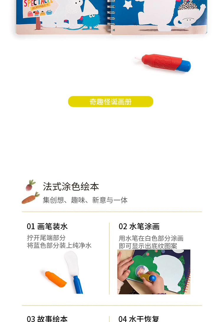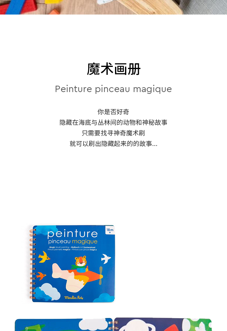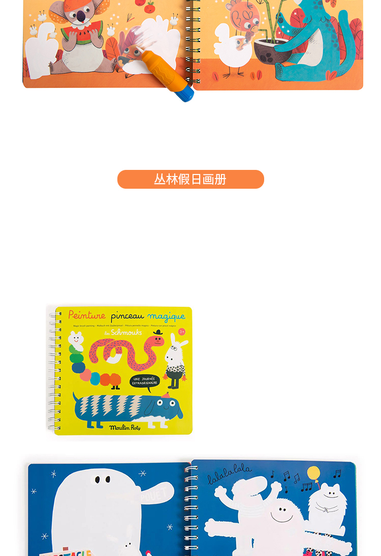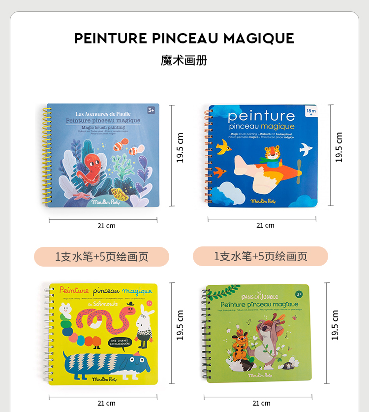 Moulin Roty 缤纷乐主题 水魔力涂色画册 适合三岁以上 涂水显色 可重复上色 法国品牌- 661609