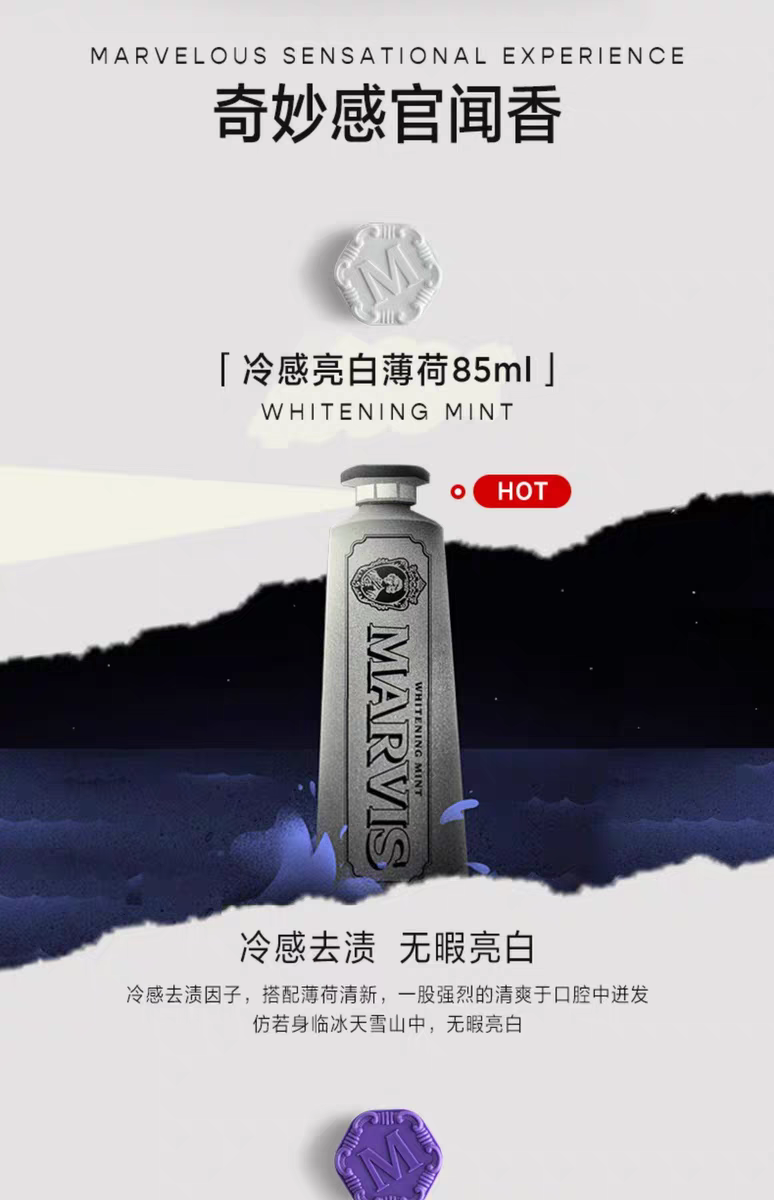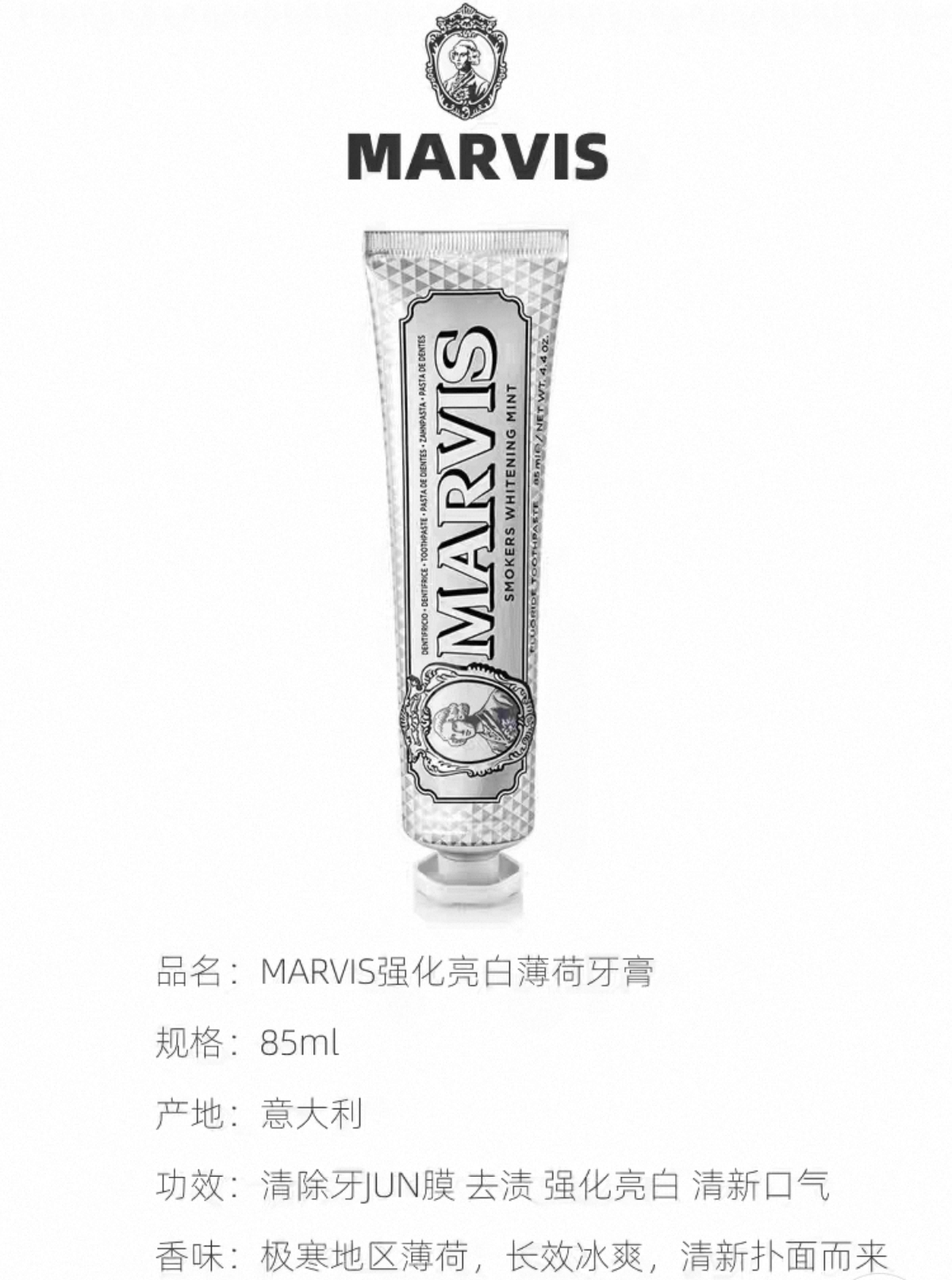 玛尔仕亮白薄荷牙膏85ml 冷感去渍 无瑕亮白 110388