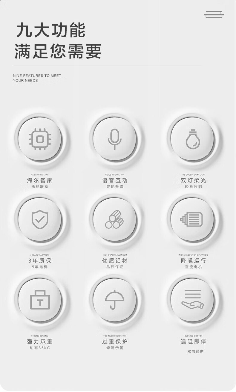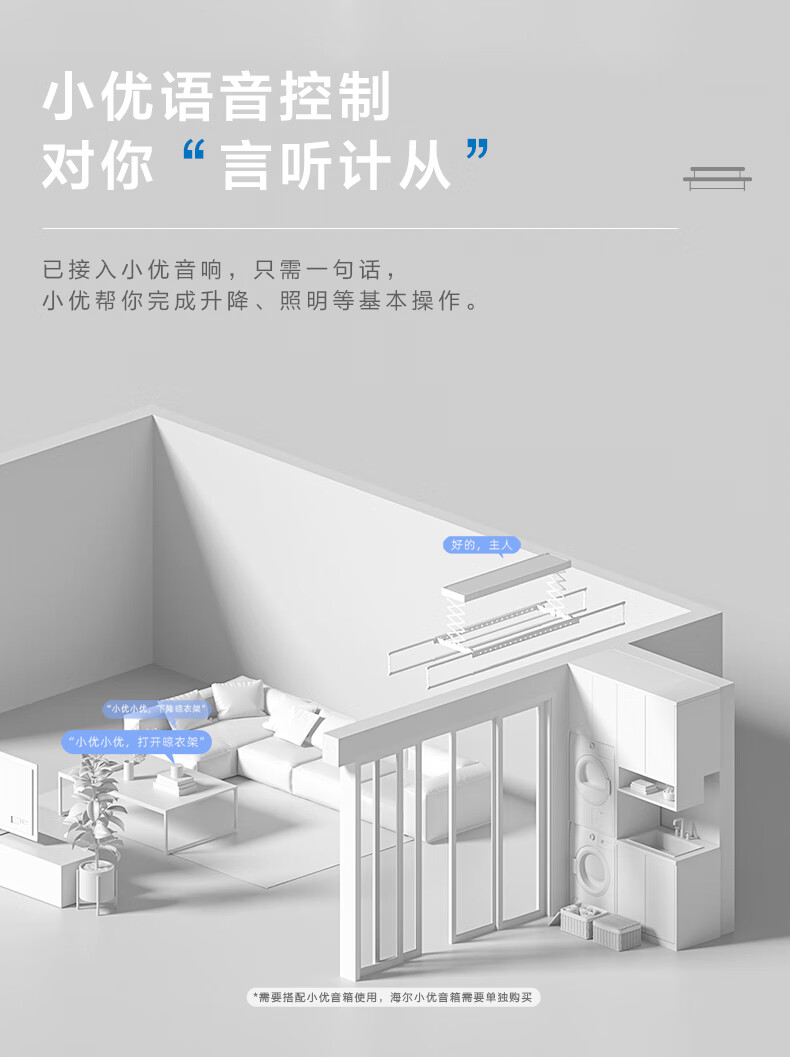 海尔(Haier)电动晾衣架智能阳台自动升降晾衣机隐形晾衣杆HL-S2E3S