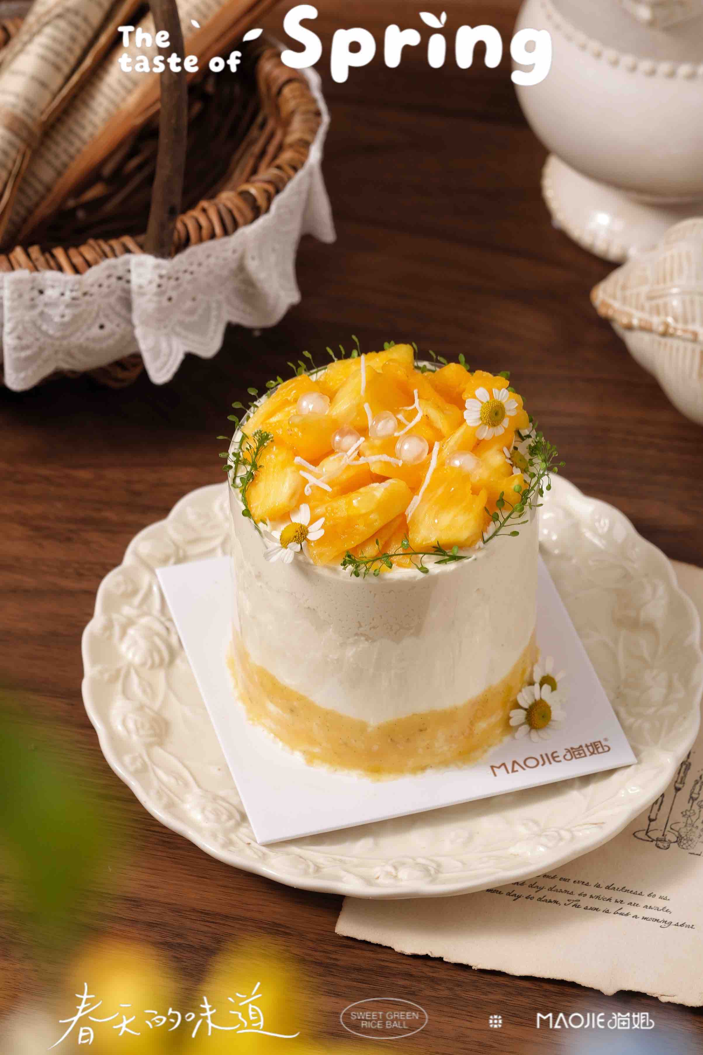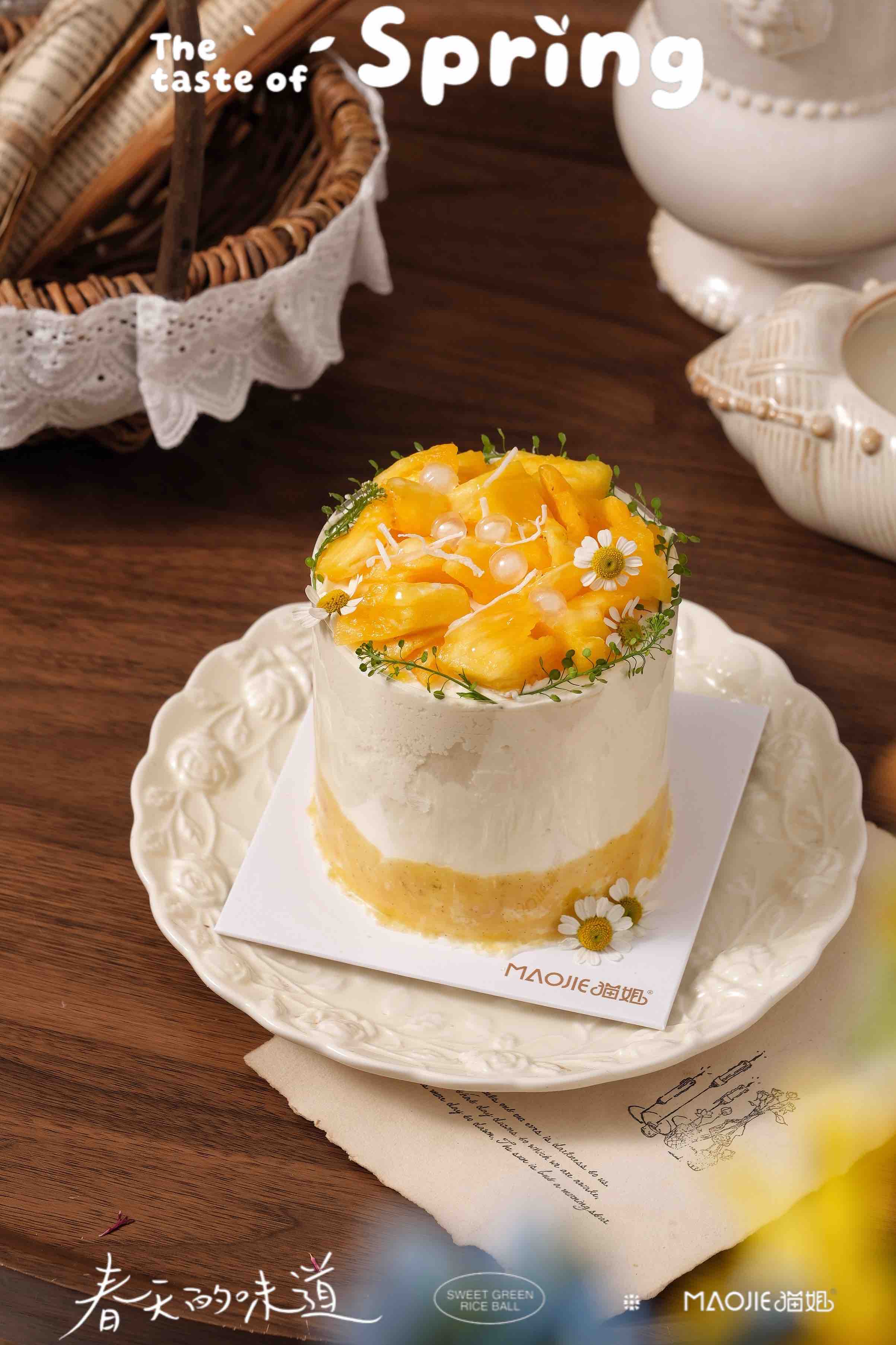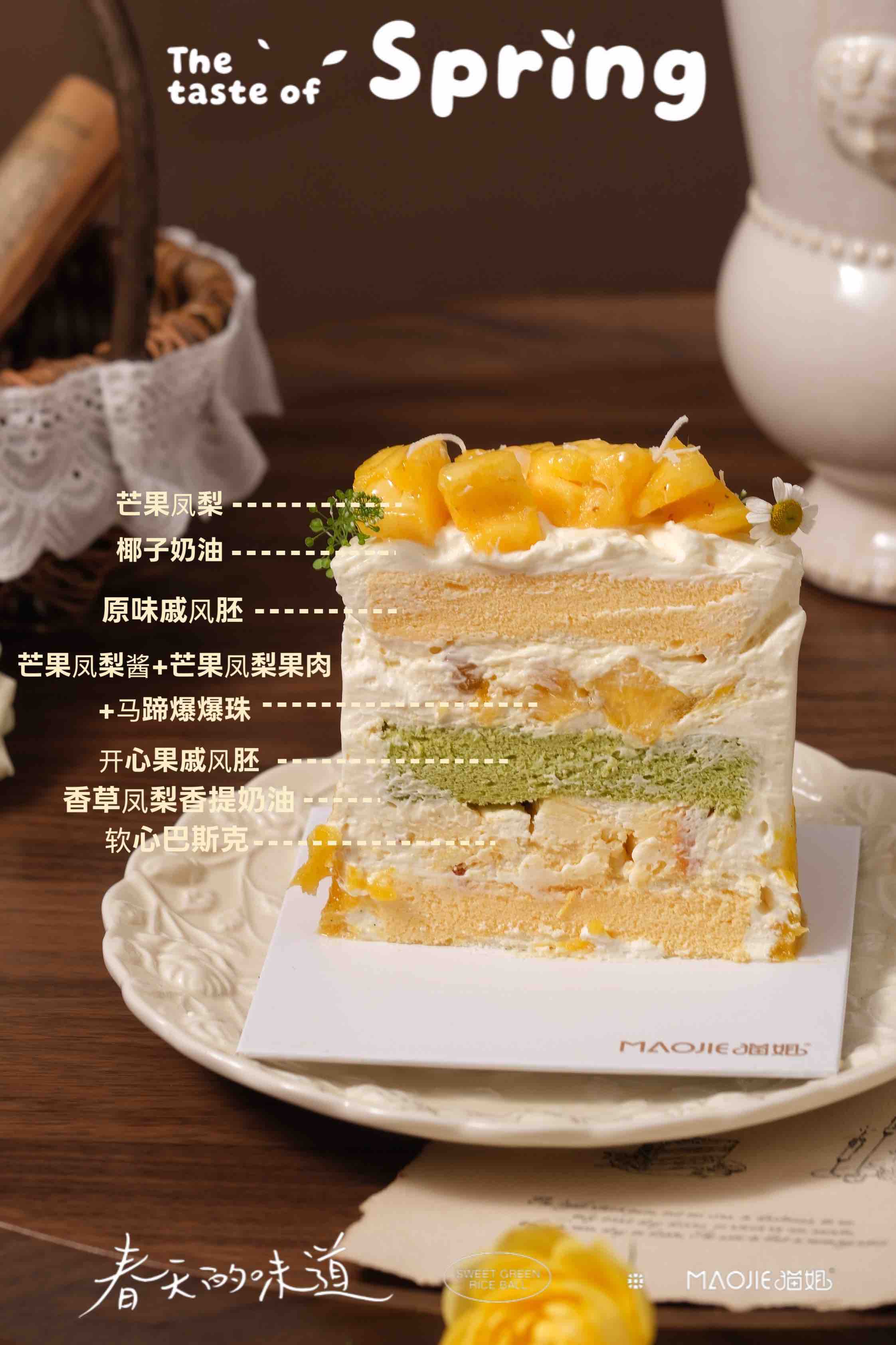 芒果凤梨小奶糕(开心果蛋糕胚,原味蛋糕坯,4%糖)