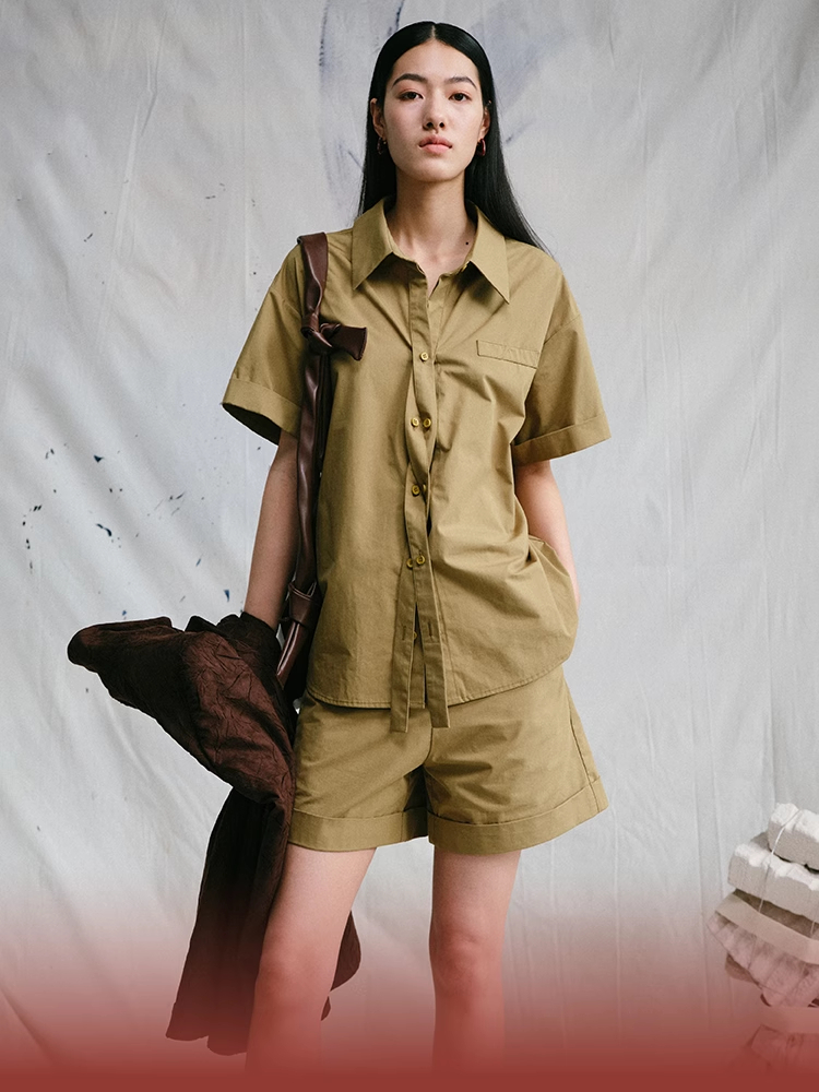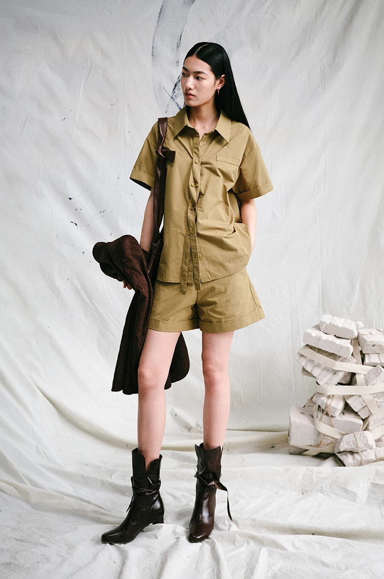 LIYIHAN 24新款女夏秋纯棉短裤OOTD知识分子风翻边短裤