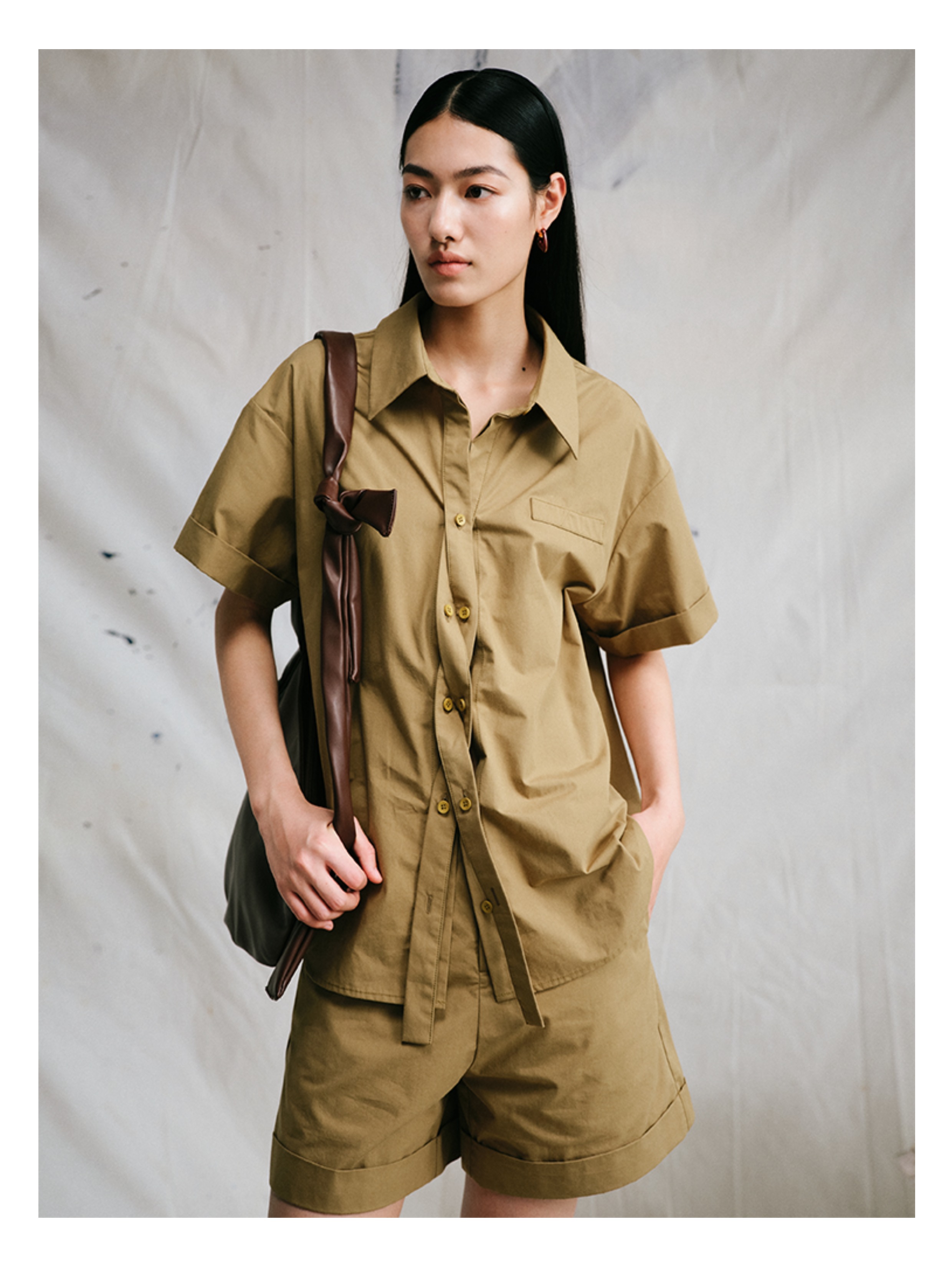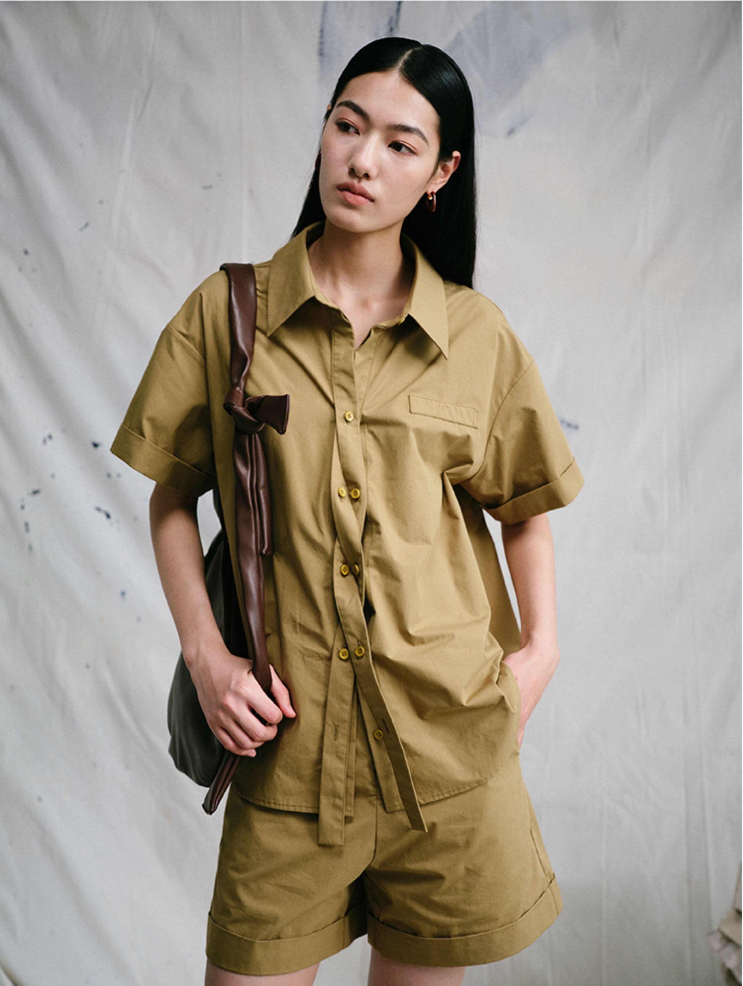 LIYIHAN织梦丨25春全棉扭结设计感衬衫小众设计女上衣宽松高级感