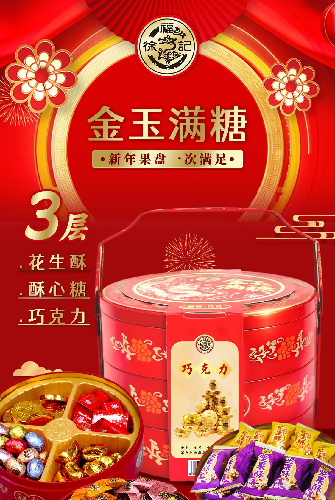 【粉丝专属❗️徐福记新年糖果礼盒】徐福记甄选品质原料制作,老少皆宜美味健康无负担,满足你的味蕾!整箱大礼包酥糖饼干年货零食糖果送礼L