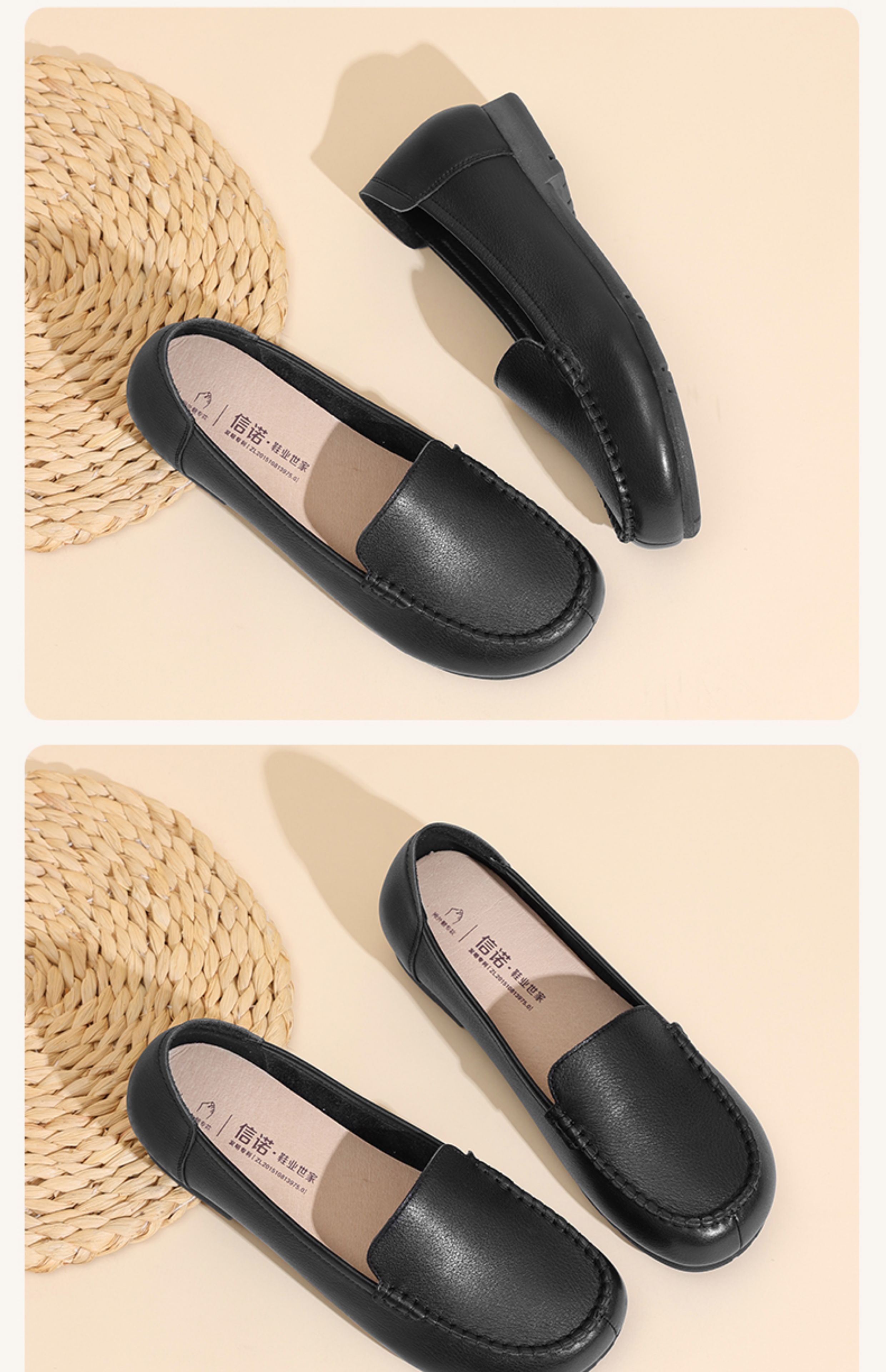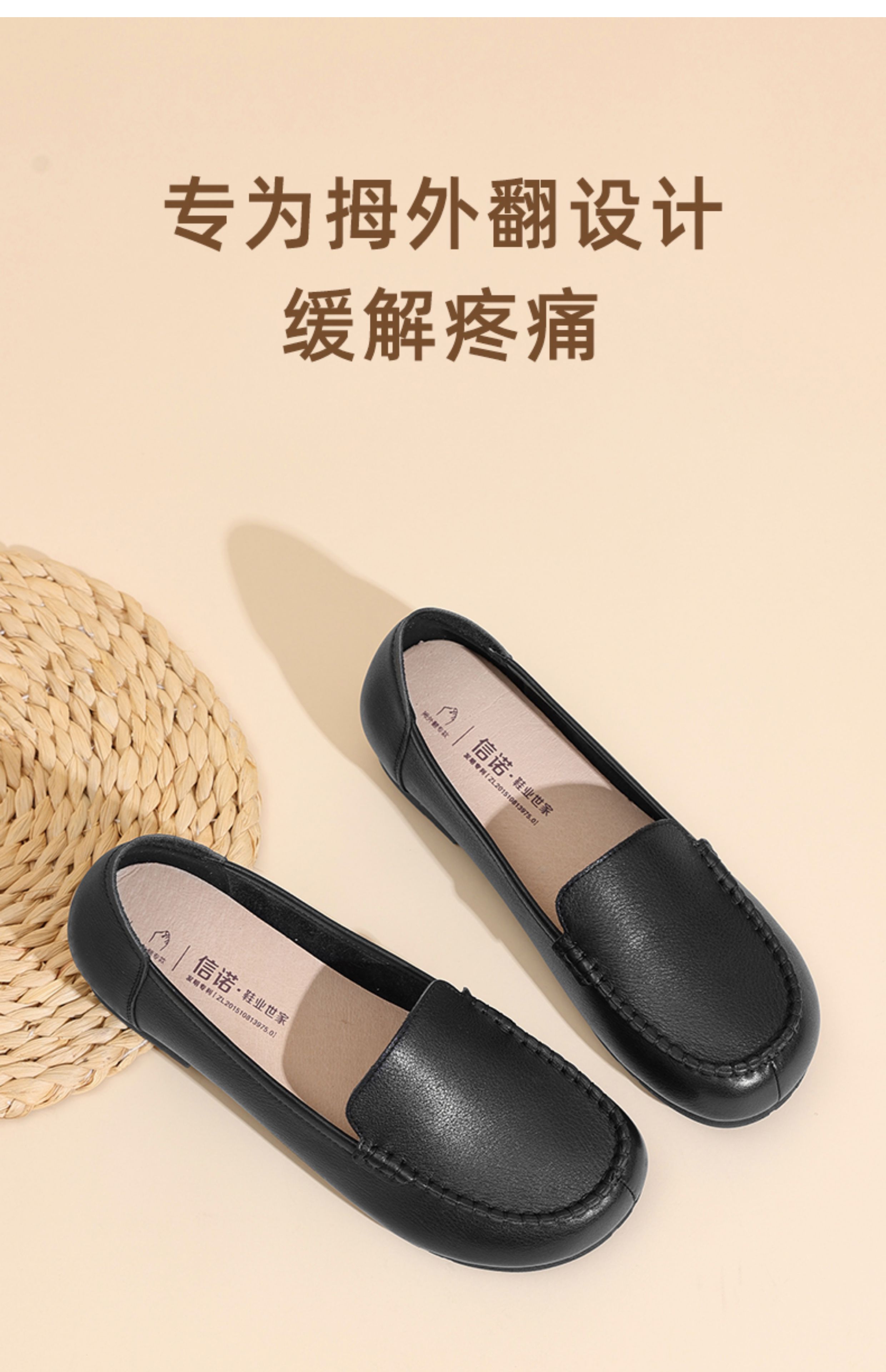 信诺真皮妈妈鞋子中老年拇外翻宽头女鞋舒适软底单鞋2025新款秋季5Q1980-19