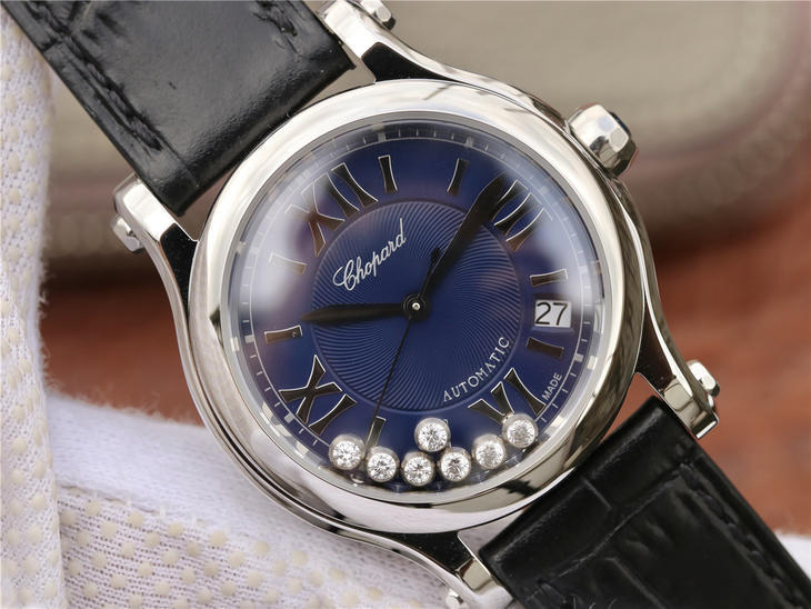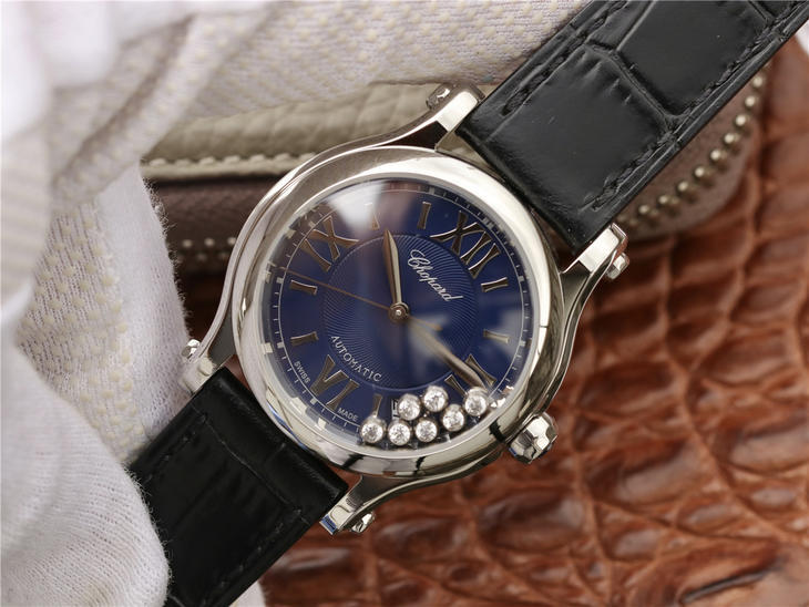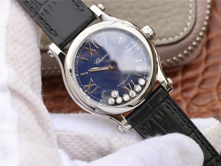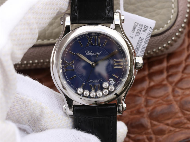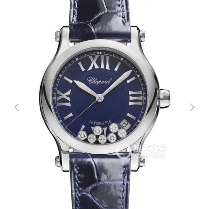 YF萧邦HAPPY SPORT MEDIUM AUTOMATIC系列 278559-3001 此款是肖邦旗下zui具代表性的腕表名为快乐钻系列 zui有特色是夹层玻璃的七颗钻石 产生自旋 犹如舞蹈 在女表上可以说是福音 多了一款蓝气球除外的经典腕表。