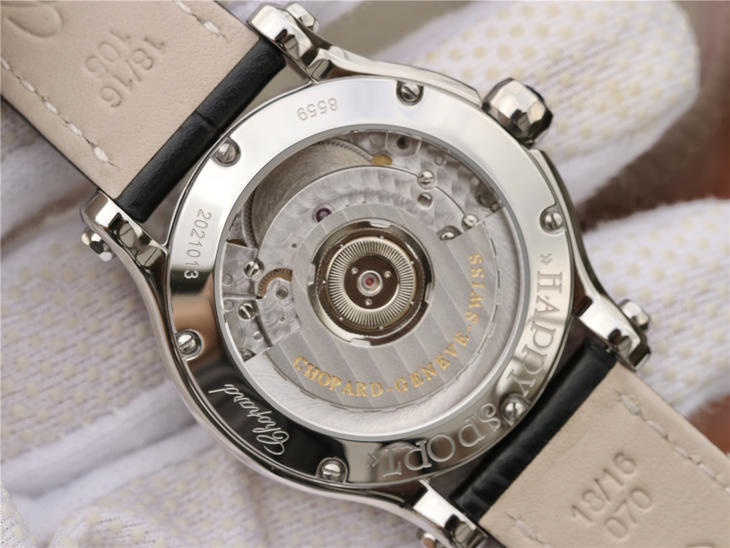 YF萧邦HAPPY SPORT MEDIUM AUTOMATIC系列 278559-3001 此款是肖邦旗下zui具代表性的腕表名为快乐钻系列zui有特色是夹层玻璃的七颗钻石 产生自旋 犹如舞蹈