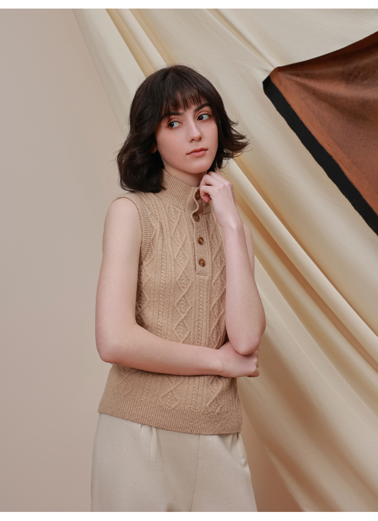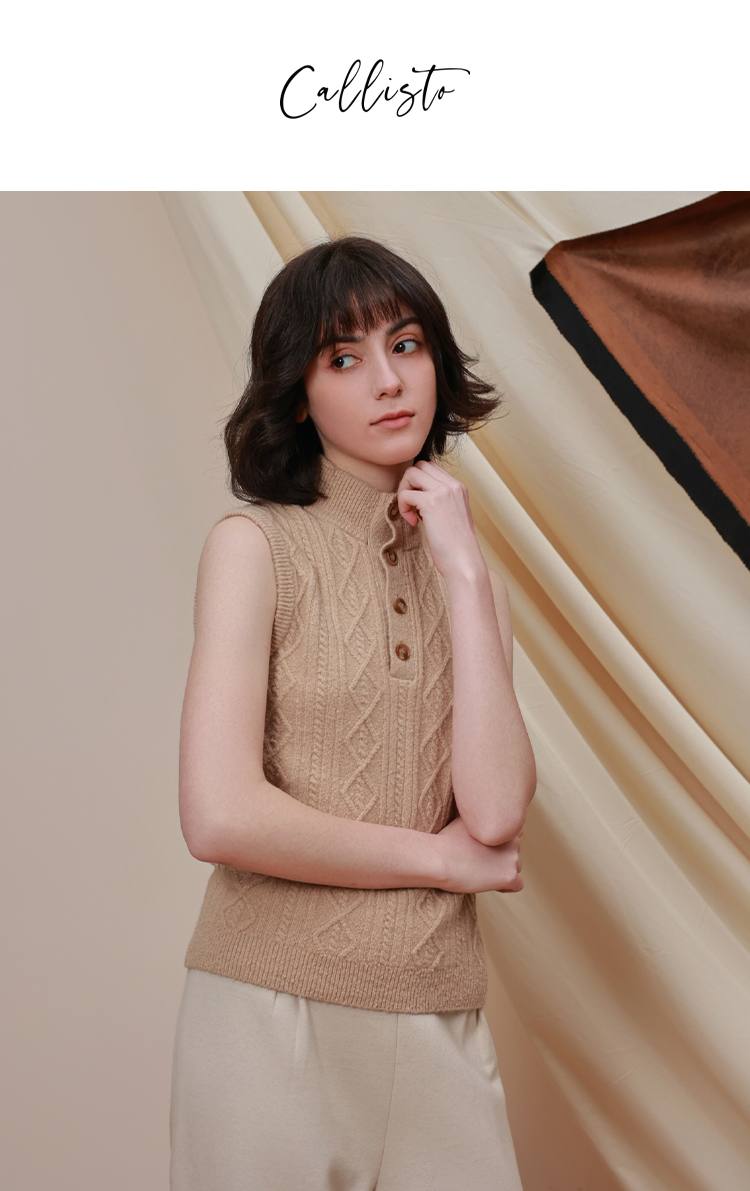 callisto雪茄棕弹力气质半高领T恤