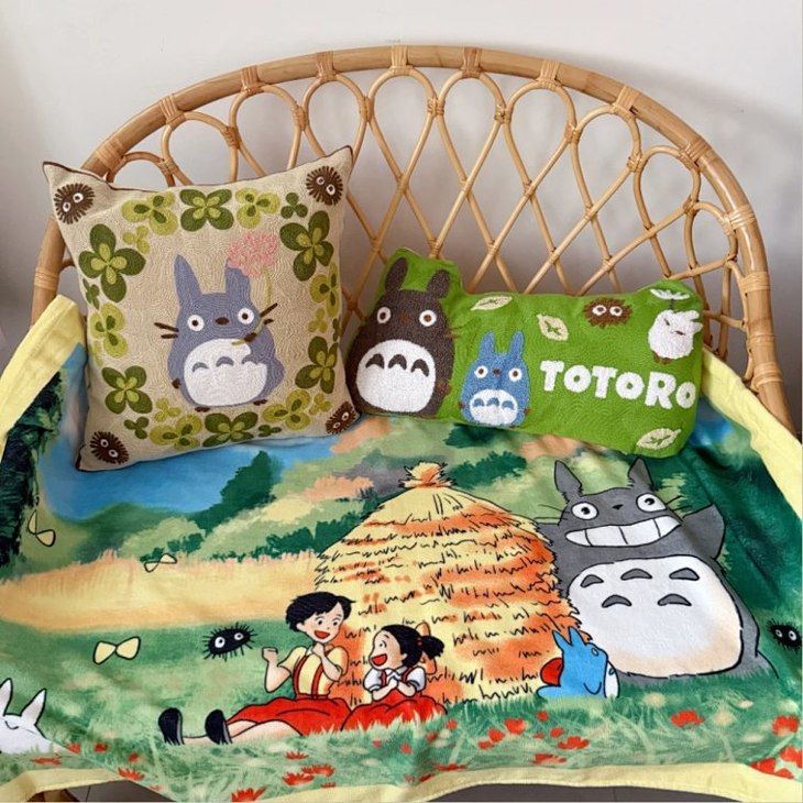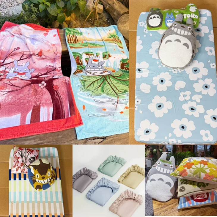 出口日本⚠️孤品速抢❗️【大浴巾大方巾| 立体可爱龙猫抱枕| 北欧罂粟花毯子软席 | vintage法绣少女感枕套|兰精天丝床单床笠】