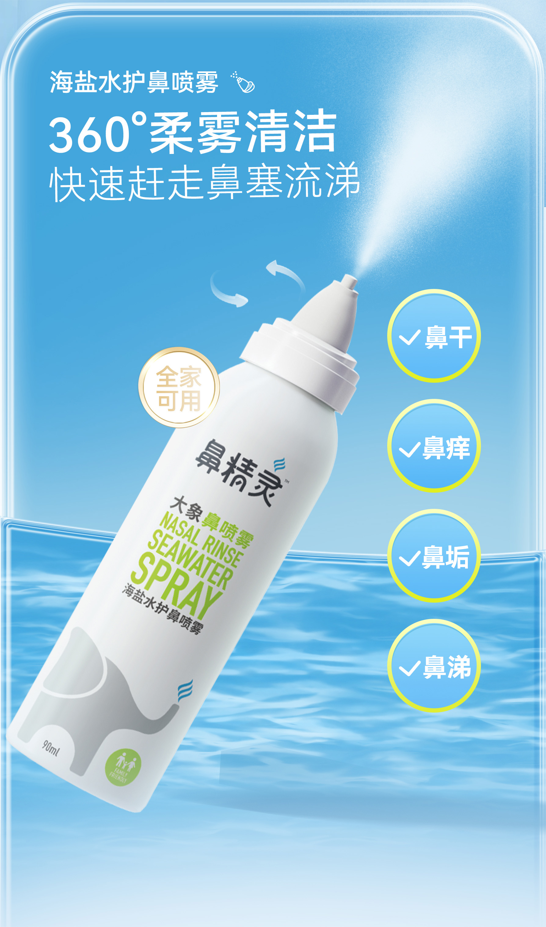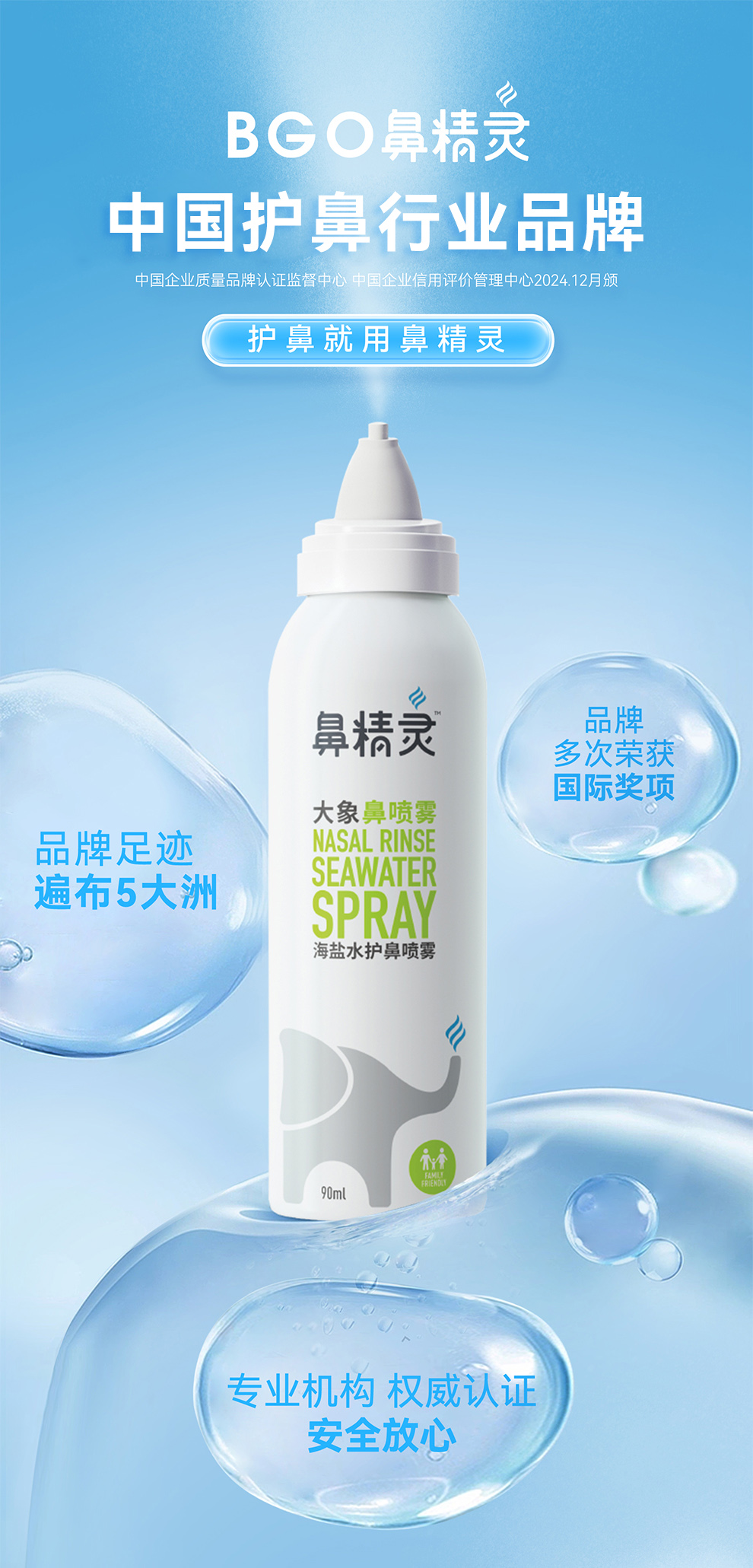 BGO鼻精灵海盐水鼻喷剂鼻腔喷雾儿童洗鼻子生理性洗鼻盐水鼻喷婴儿90ml