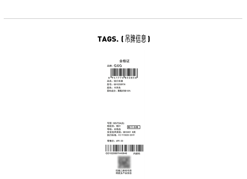 GXG男装 卡其色收口长裤 秋季热卖城市户外系列