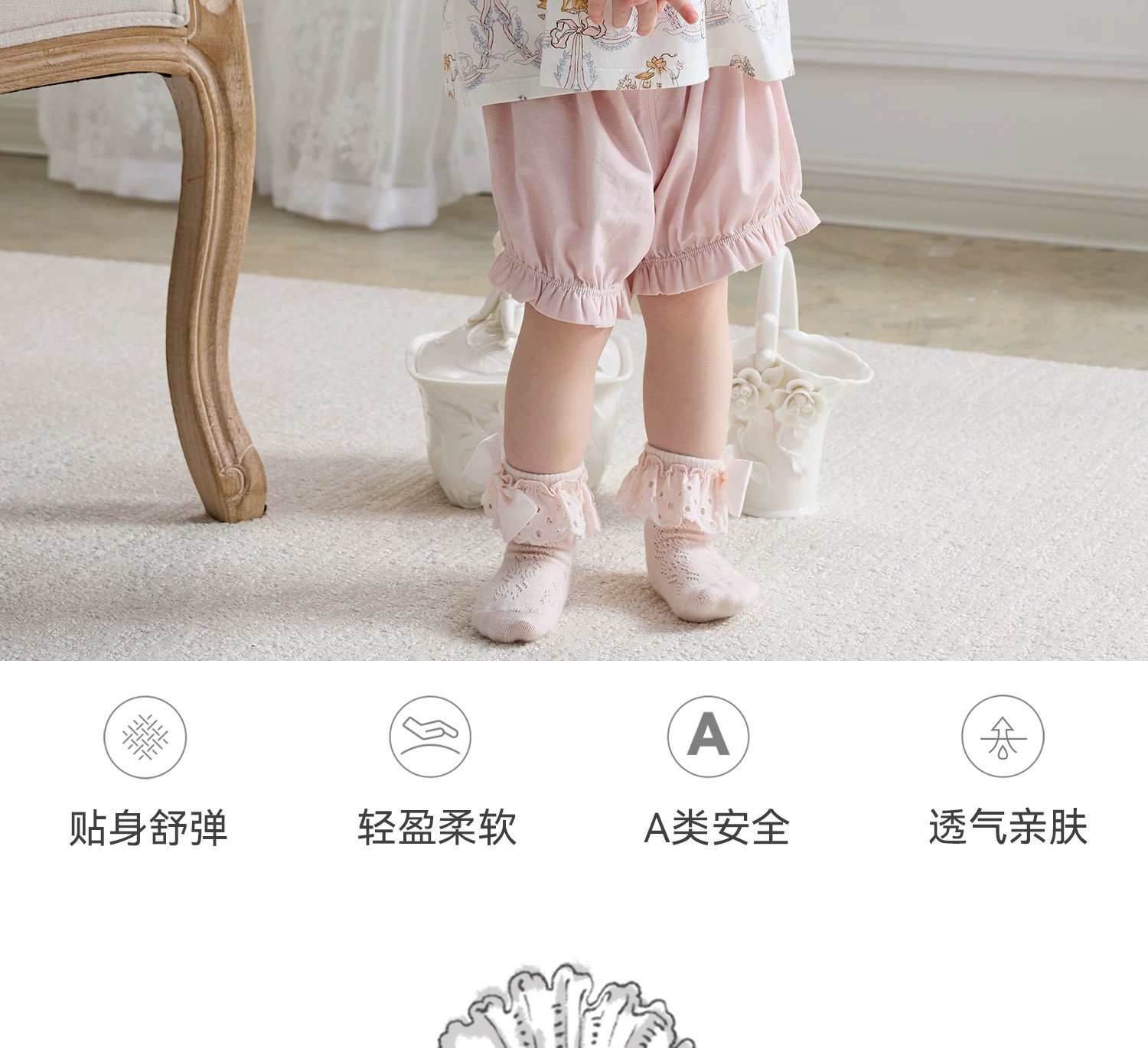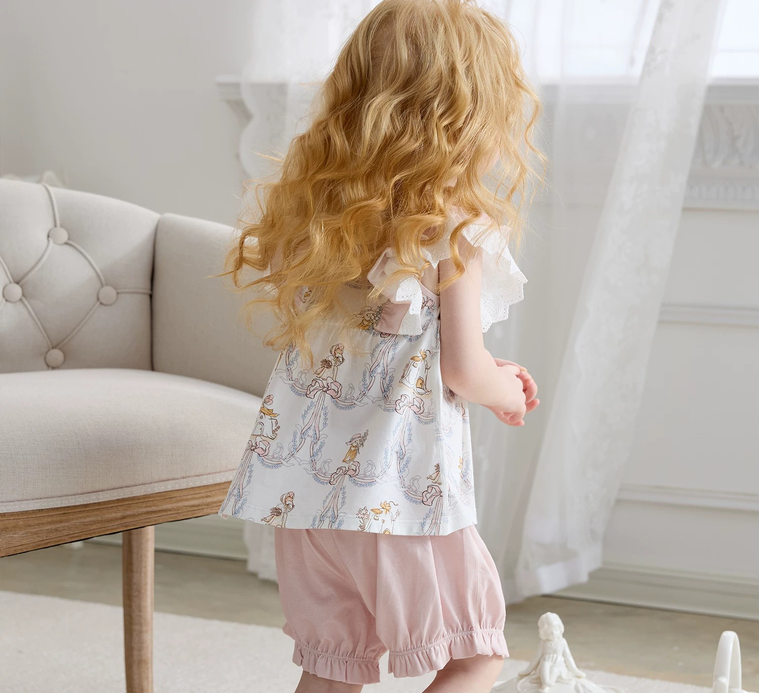 Domiamia 女宝宝针织无袖花边袖套装 透气轻薄公主家居服
