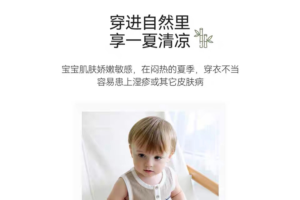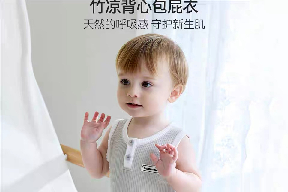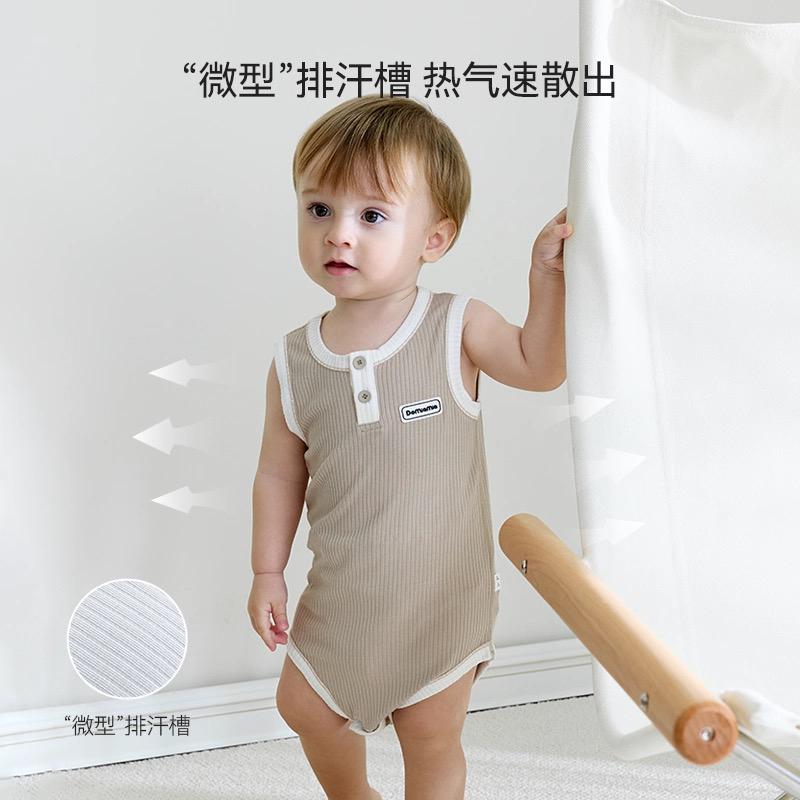 Domiamia 男宝宝针织背心前中开包屁衣(凉感)夏季新生儿竹纤维凉感连体衣