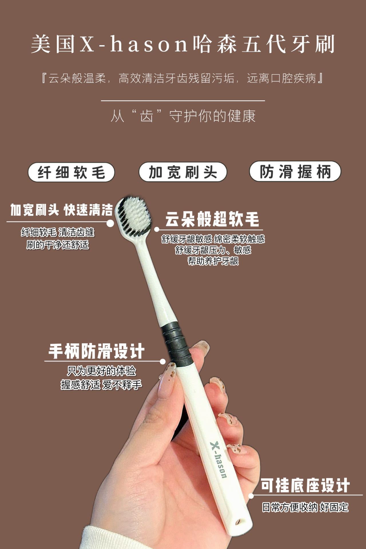 「19.9到手5支」美国X-hason哈森五代牙刷 日式宽头软毛刮舌苔旅行装成人牙刷口腔护理 商品图0