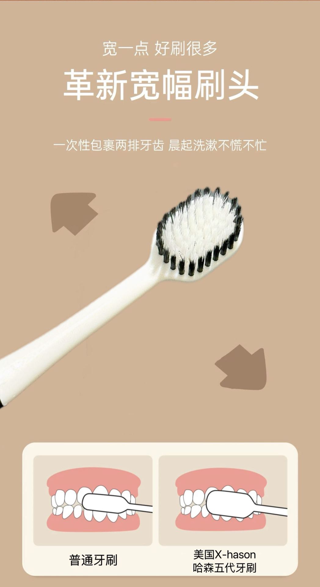 「19.9到手5支」美国X-hason哈森五代牙刷 日式宽头软毛刮舌苔旅行装成人牙刷口腔护理 商品图4