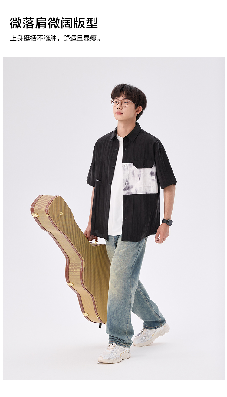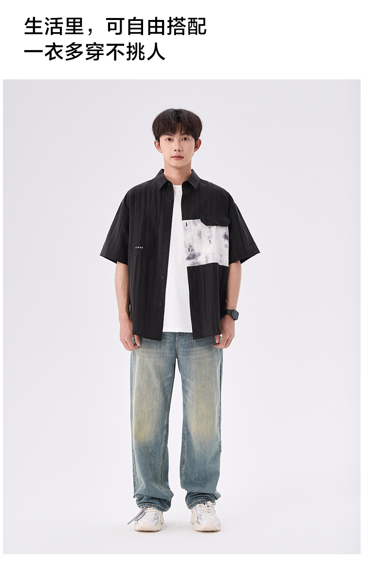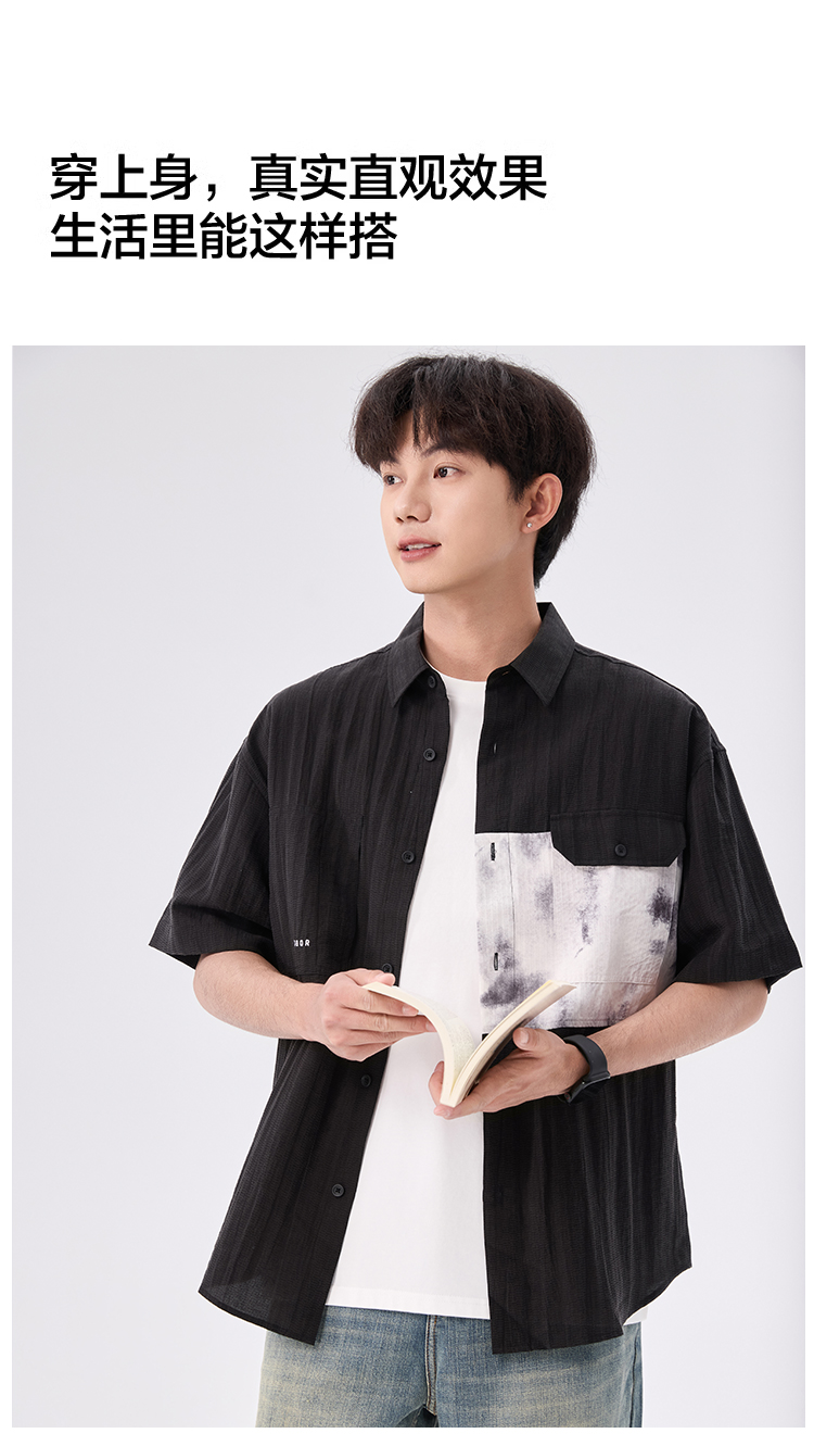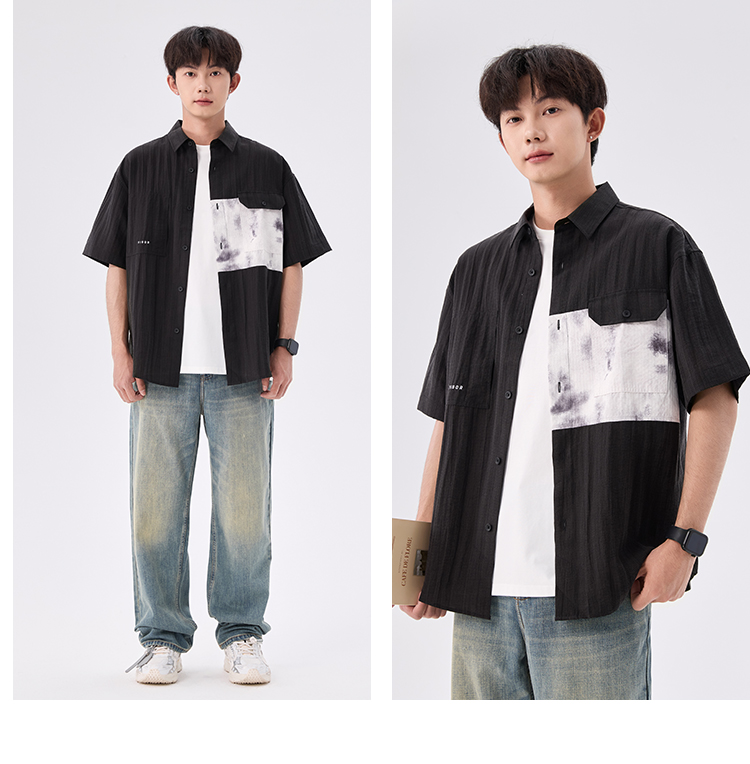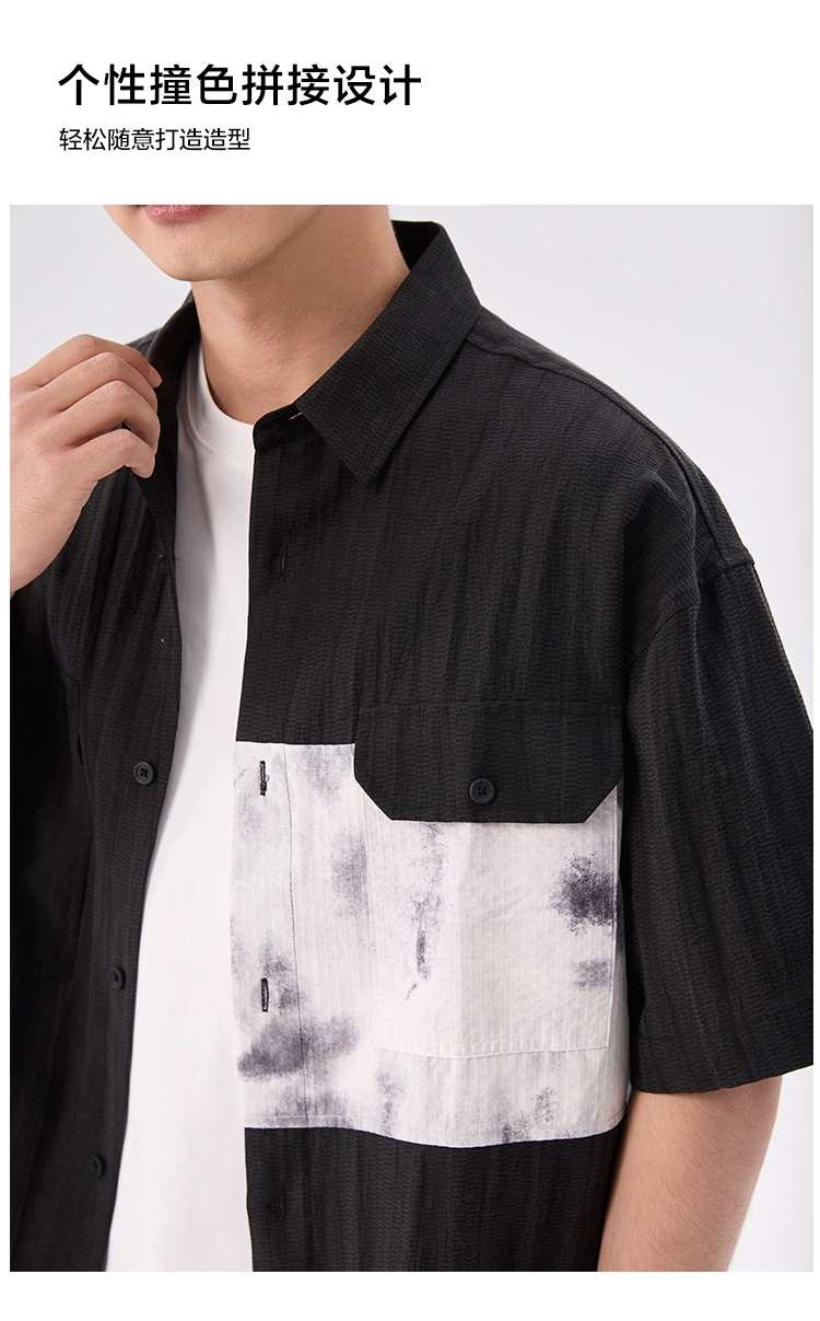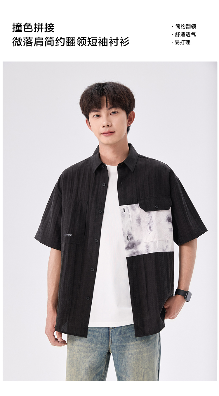 gxgjeans【爆款热卖】撞色拼接翻领男士短袖衬衫25夏款潮流百搭上衣男K&C
