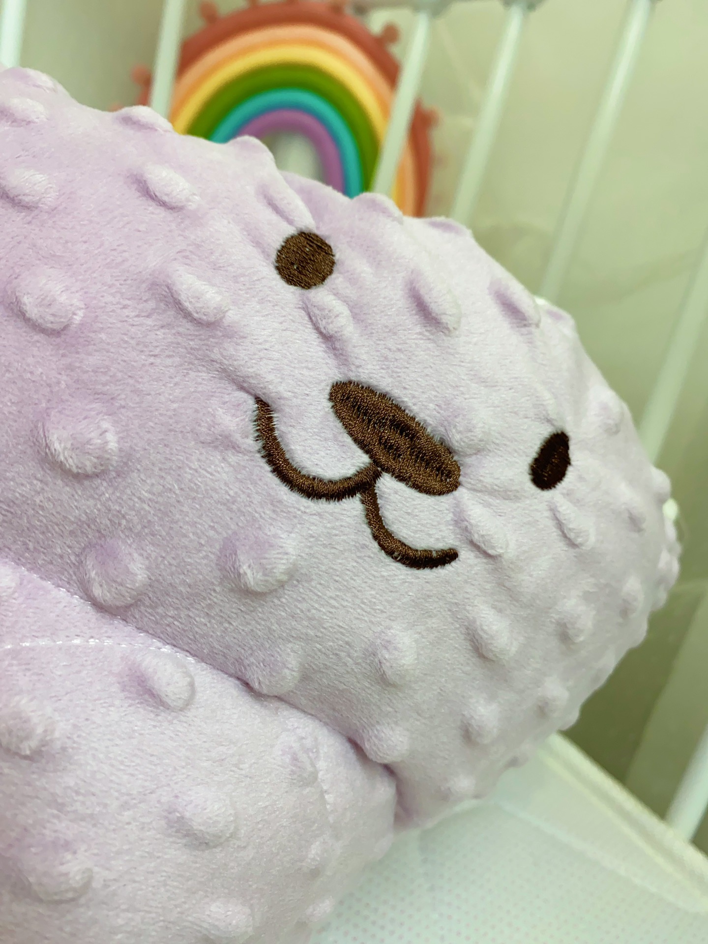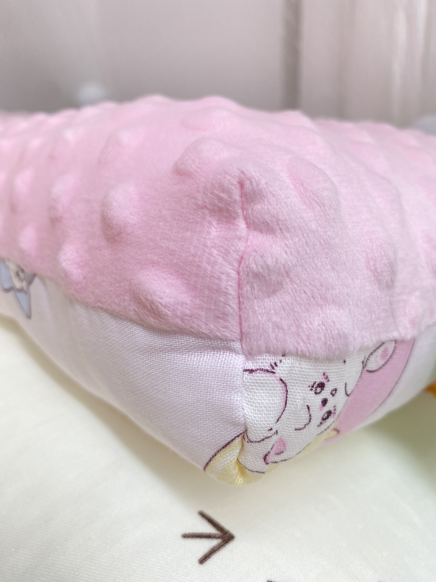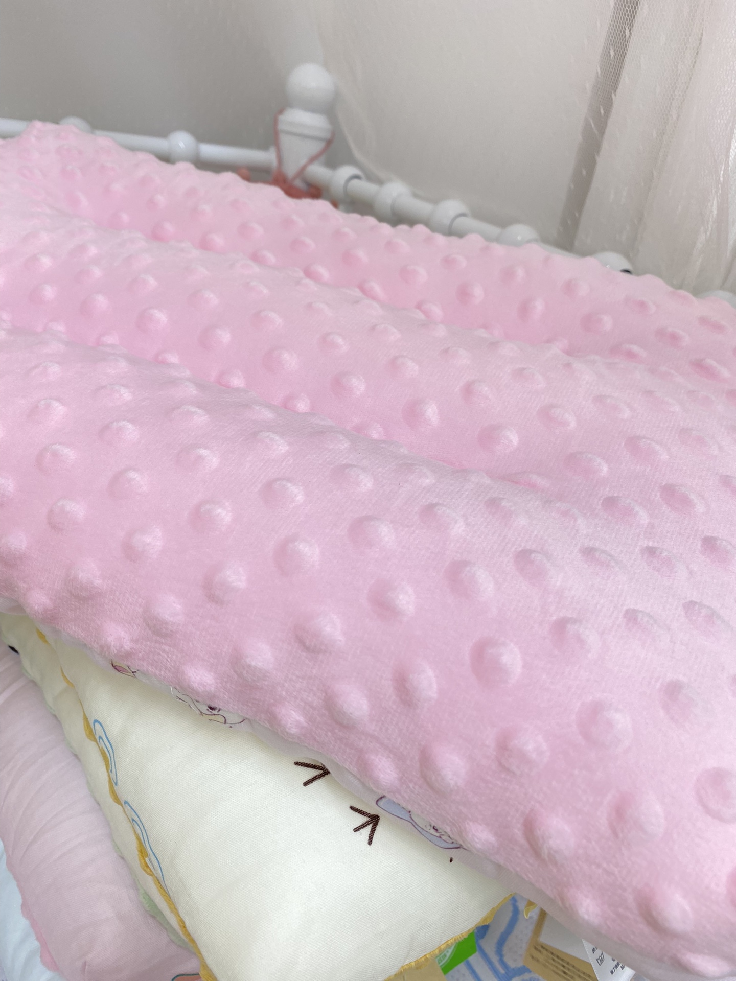 A面全棉纱布印花图案,B面安抚豆豆绒