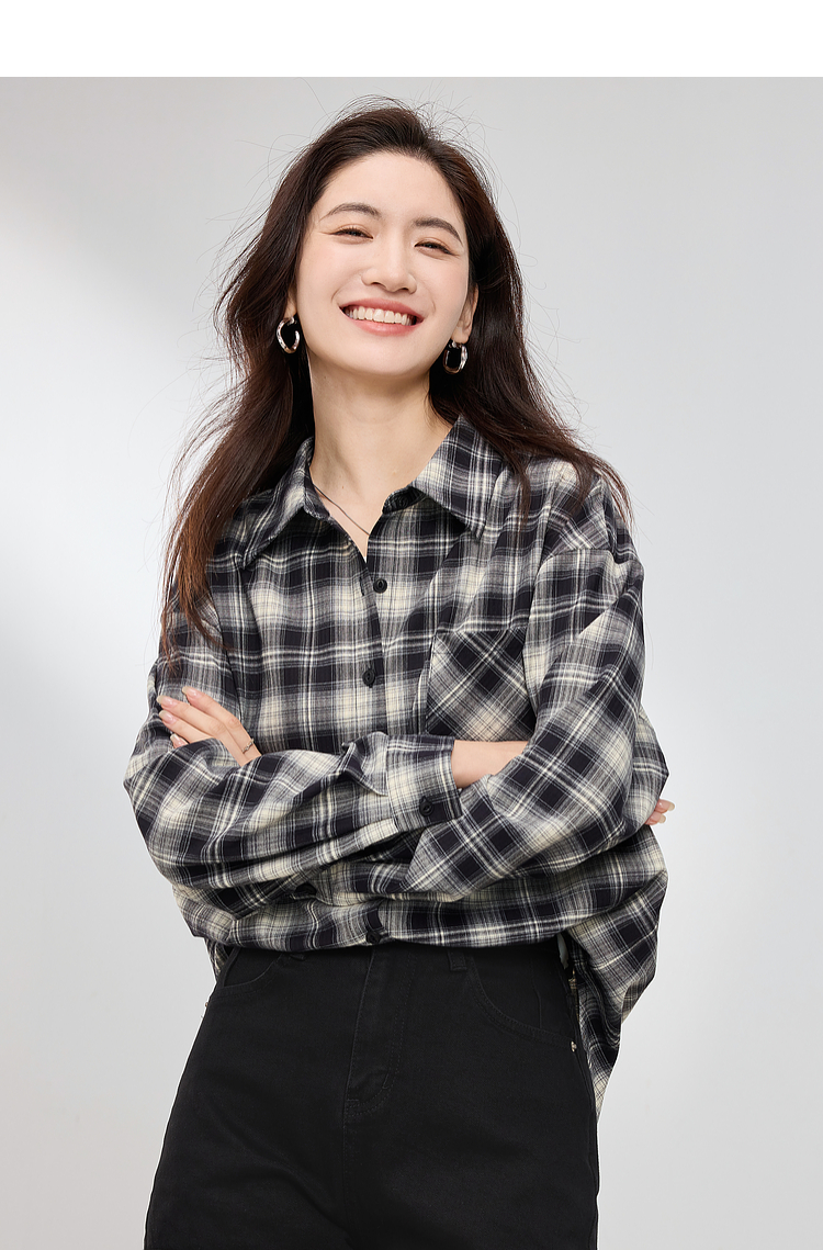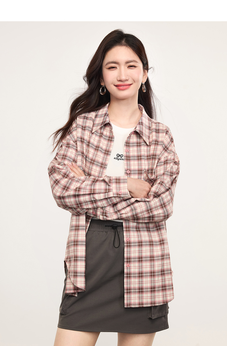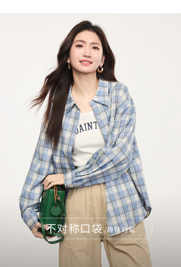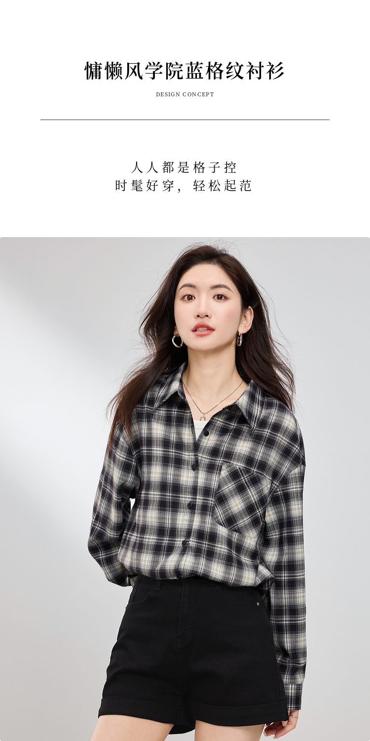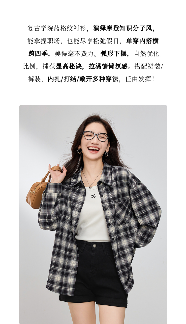 【1件65折】熙世界法式复古学院风格纹衬衣宽松慵懒风衬衫上衣2025春日新款