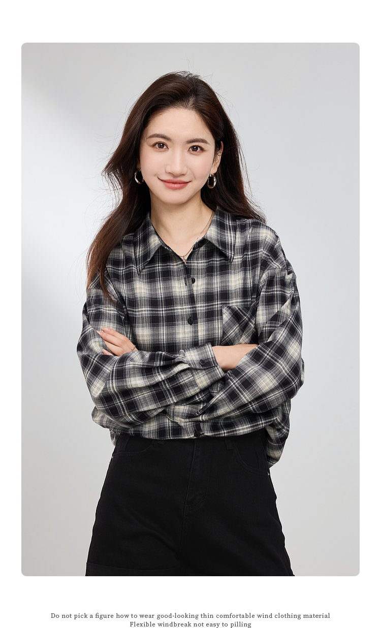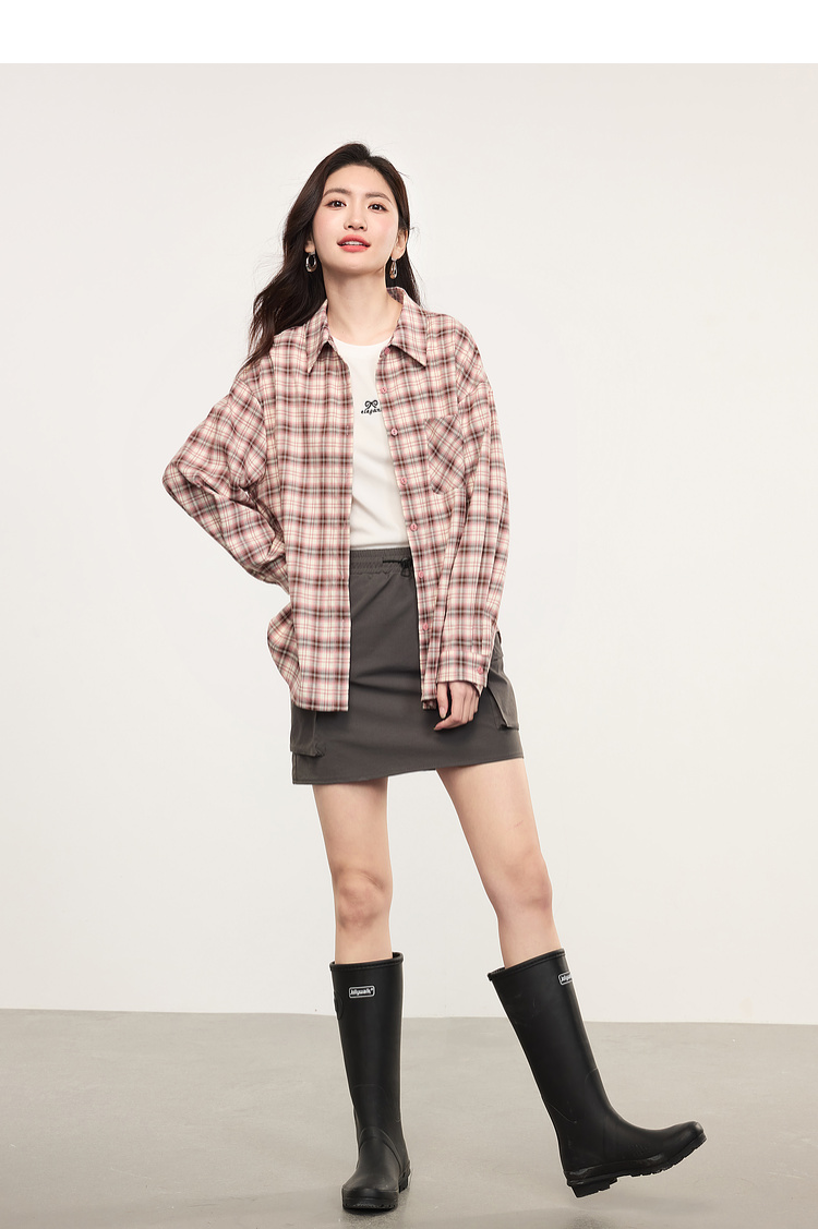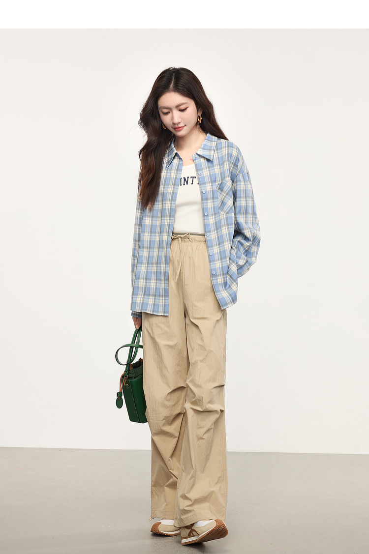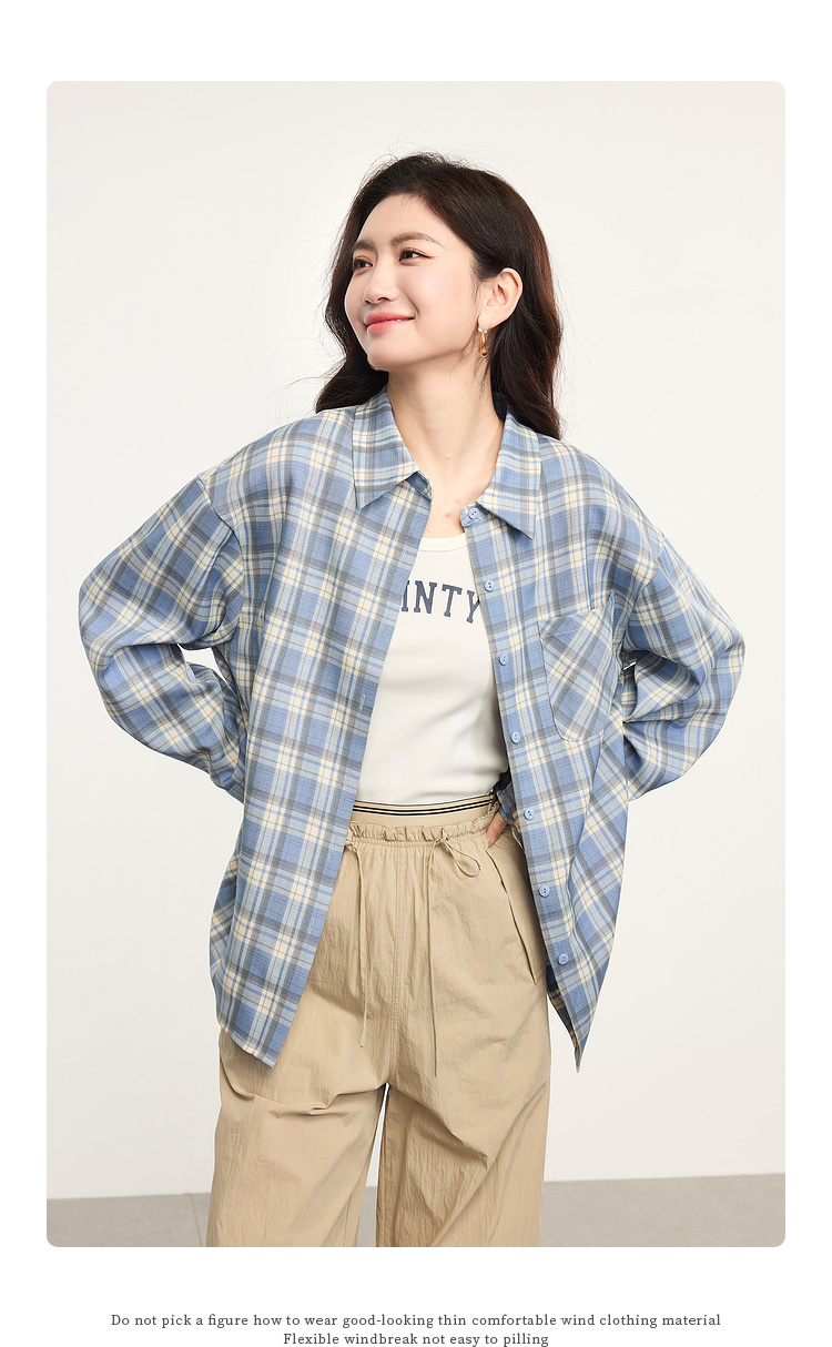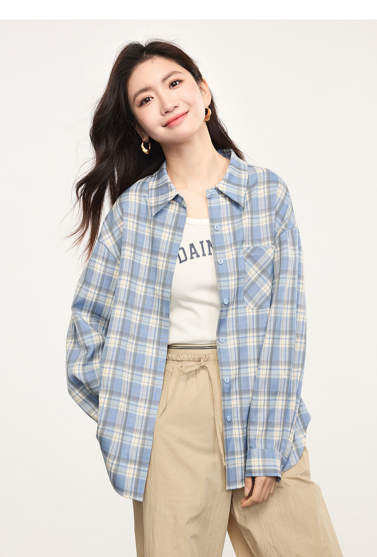 【1件65折】熙世界法式复古学院风格纹衬衣宽松慵懒风衬衫上衣2025春日新款