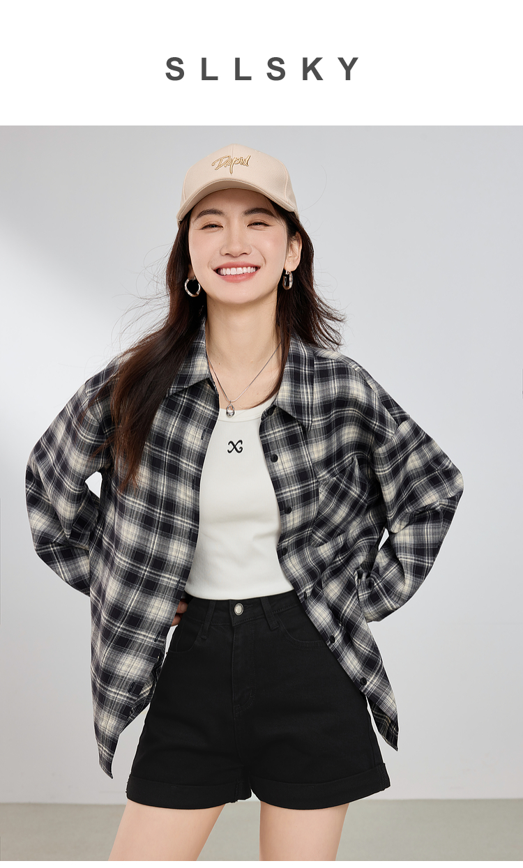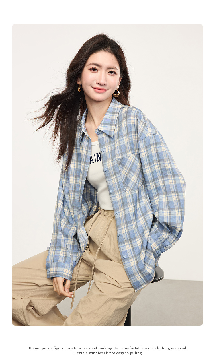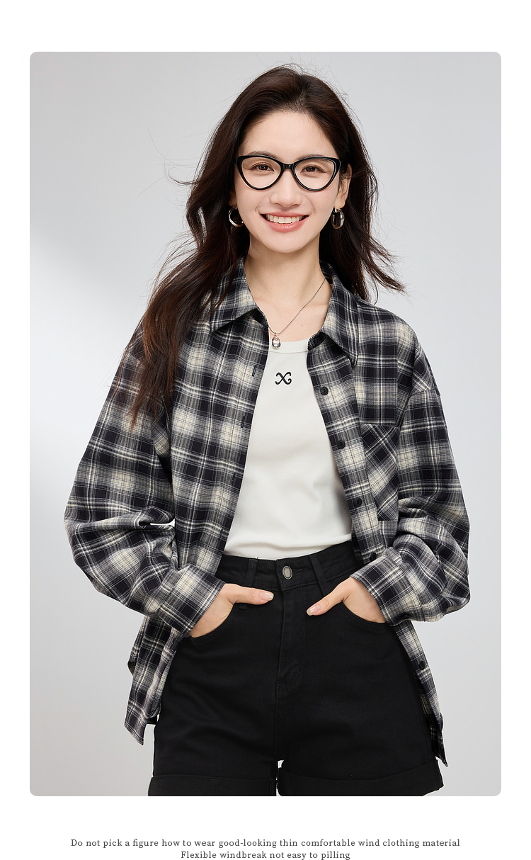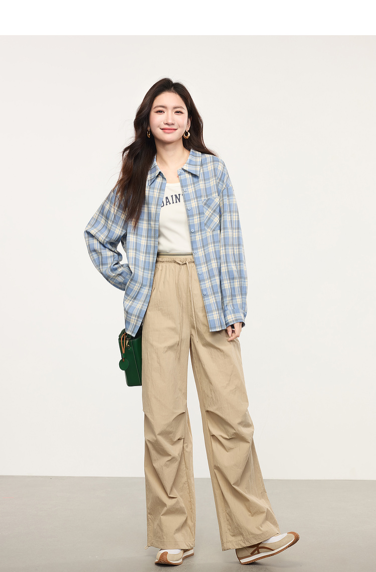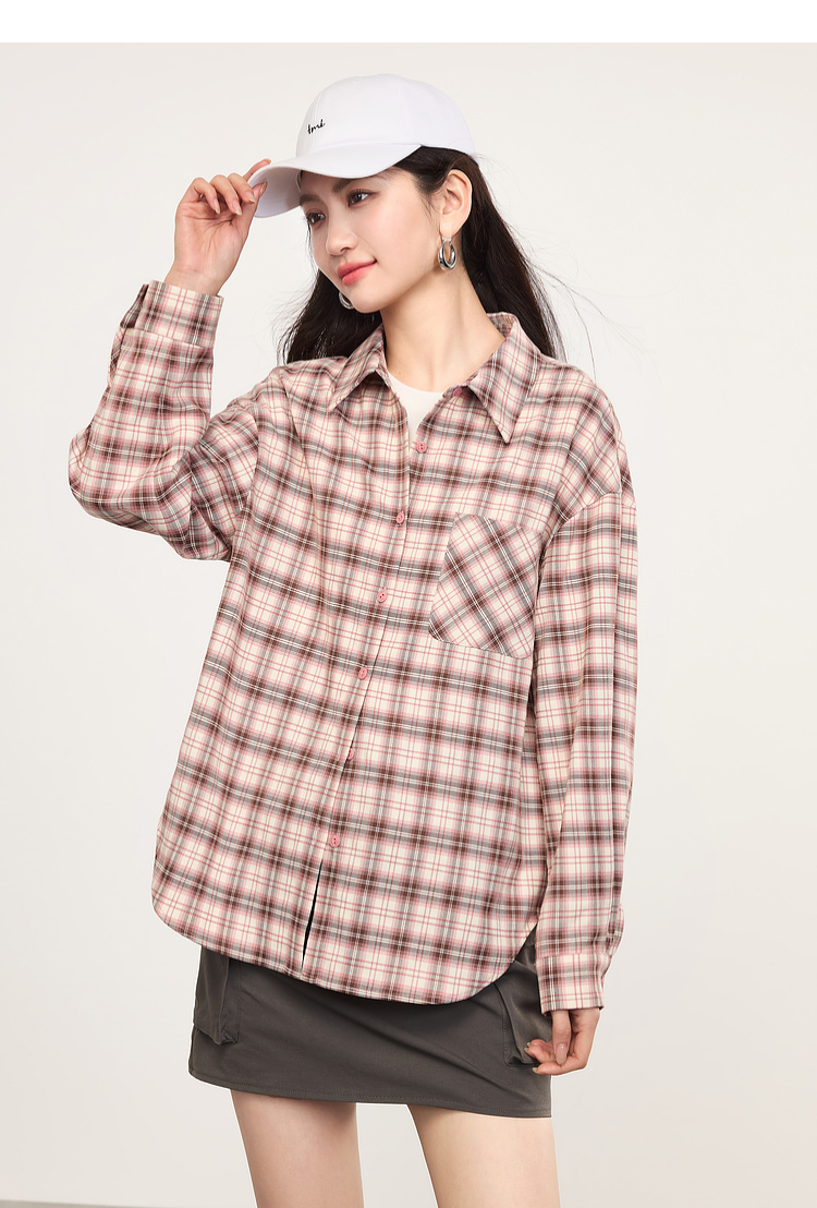 【1件65折】熙世界法式复古学院风格纹衬衣宽松慵懒风衬衫上衣2025春日新款
