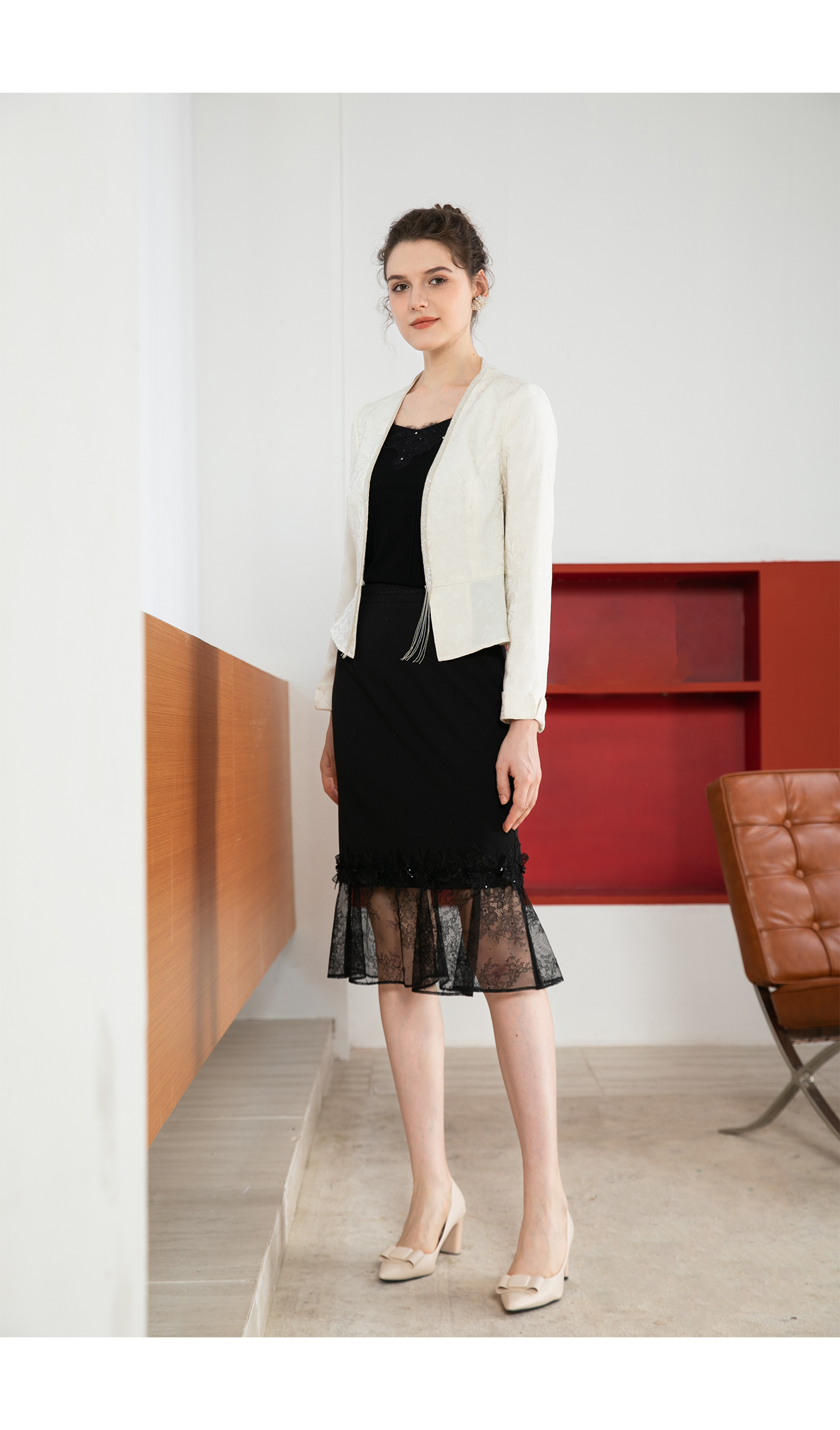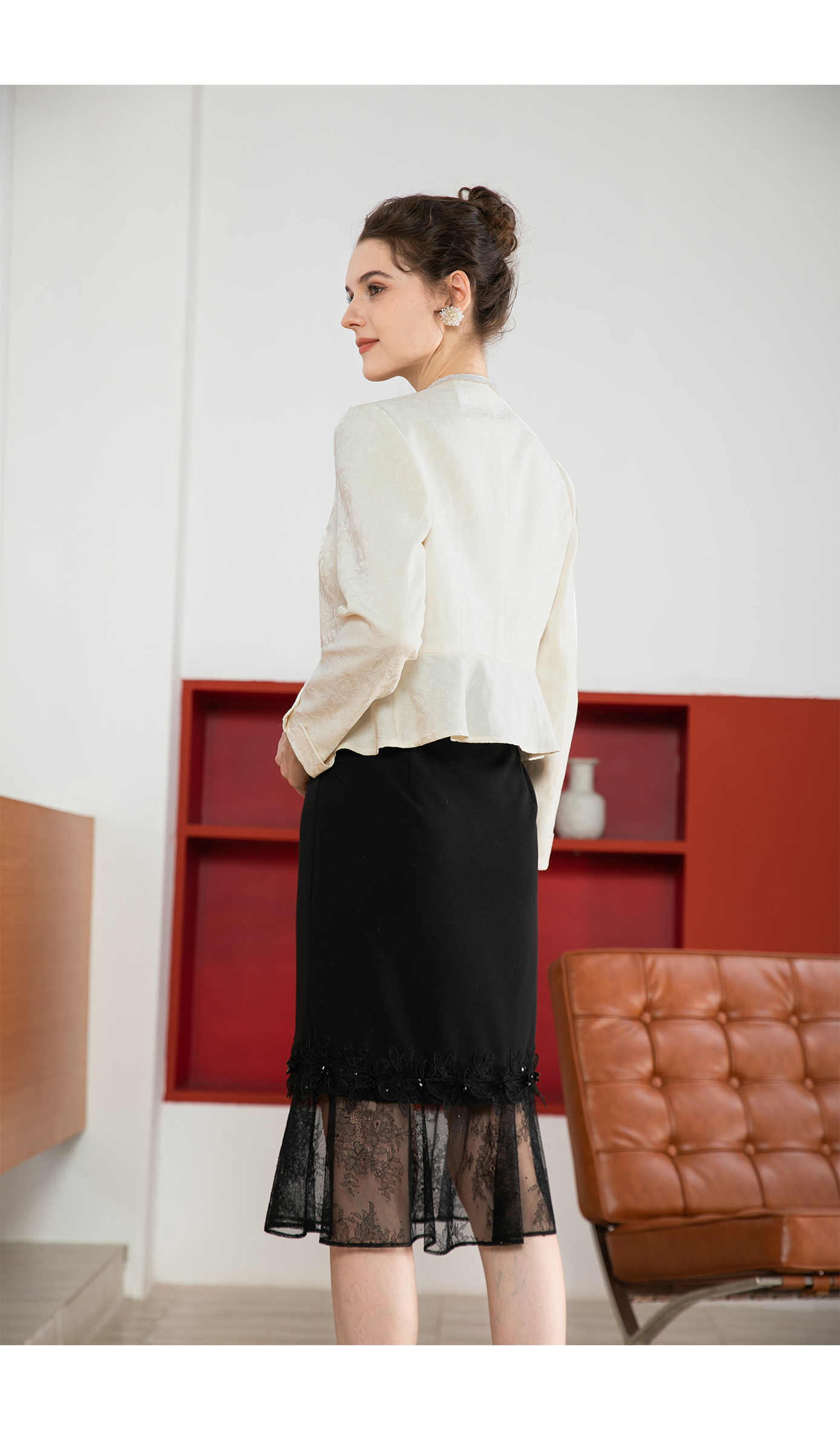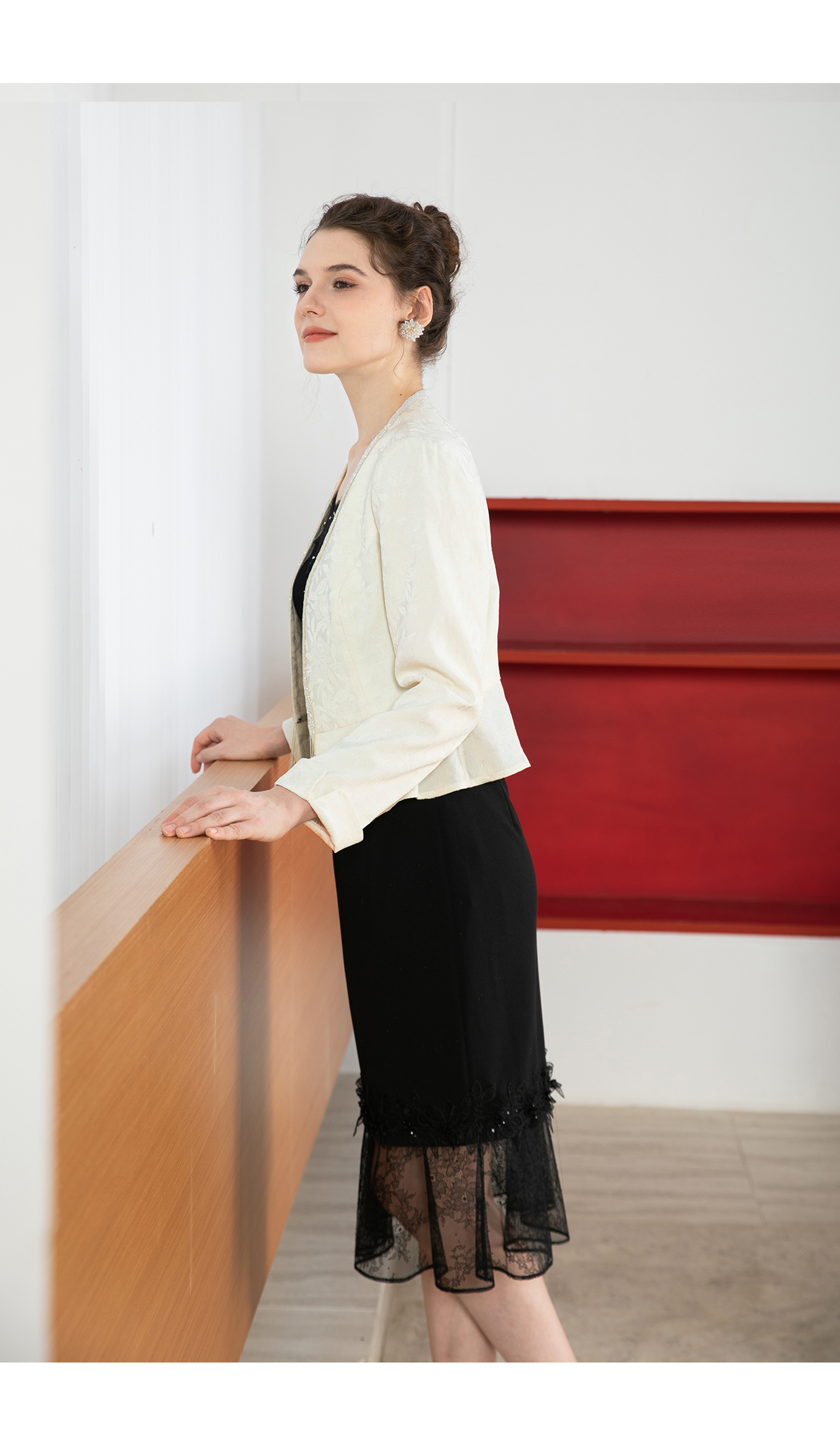 司歌修身蕾丝长袖连衣裙中长裙A921171X