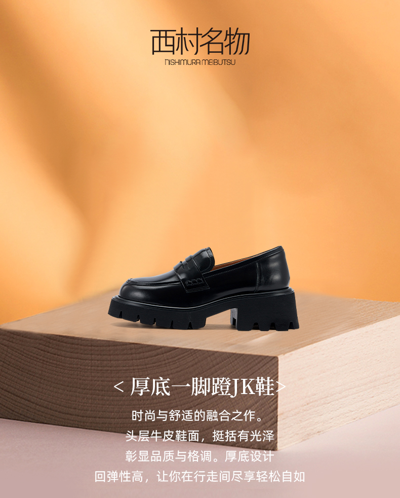西村名物2024春季新品真皮时尚舒适小皮鞋厚底一脚蹬乐福鞋X24AM11501