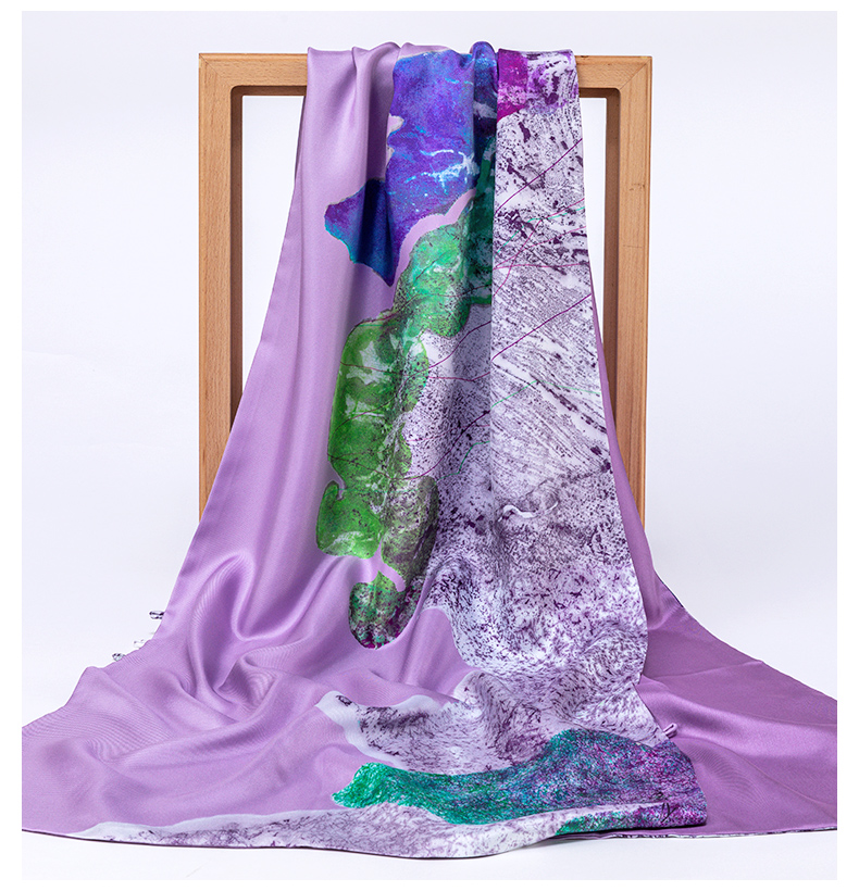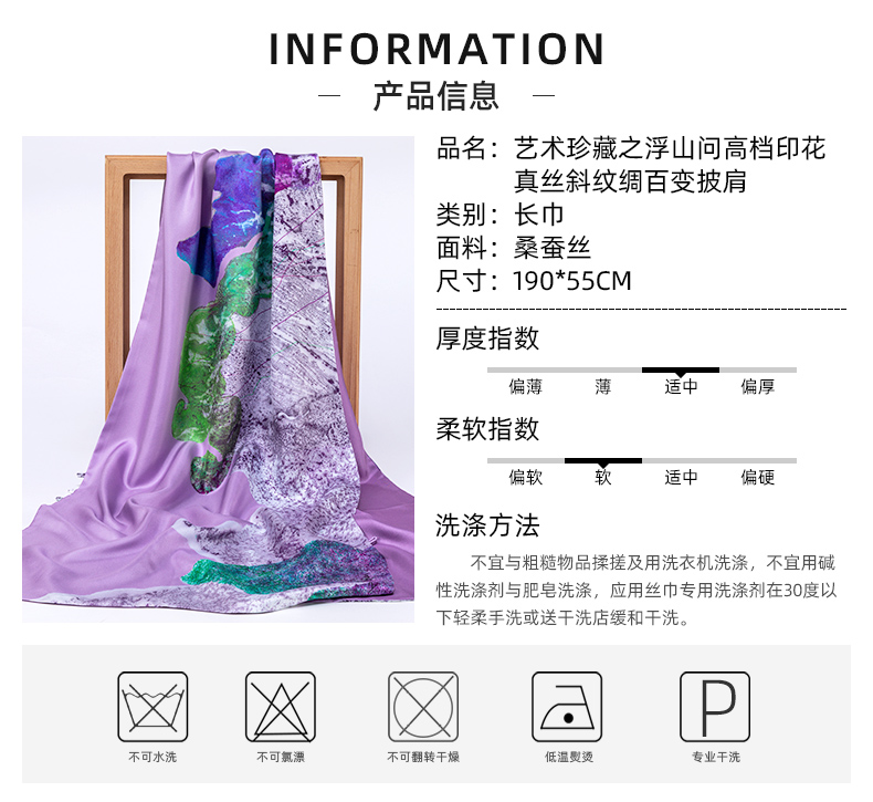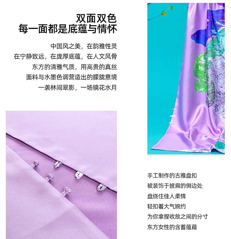 绝代佳人艺术珍藏之浮山问印花真丝丝巾斜纹绸百搭防晒盘丝扣披肩