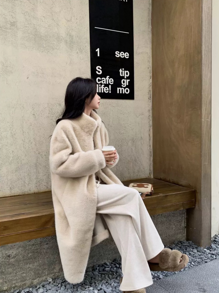 秋冬火出天际的穿搭 【金貂毛保暖立领毛毛大衣外套】温柔富家千金既视感 手感蓬松软糯 顺滑舒服 颜值与保暖并存