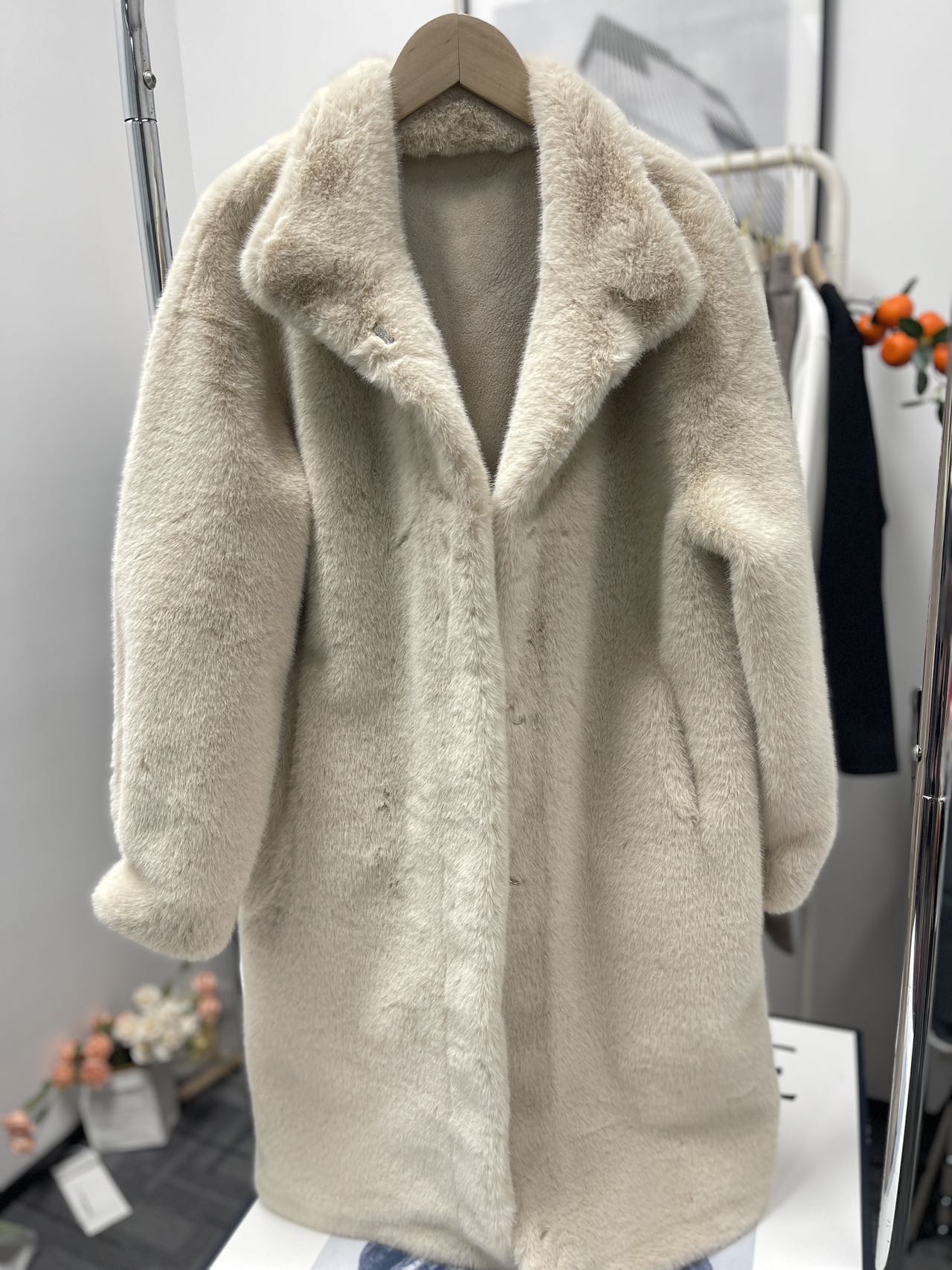 【品名】金貂毛保暖立领毛毛大衣外套