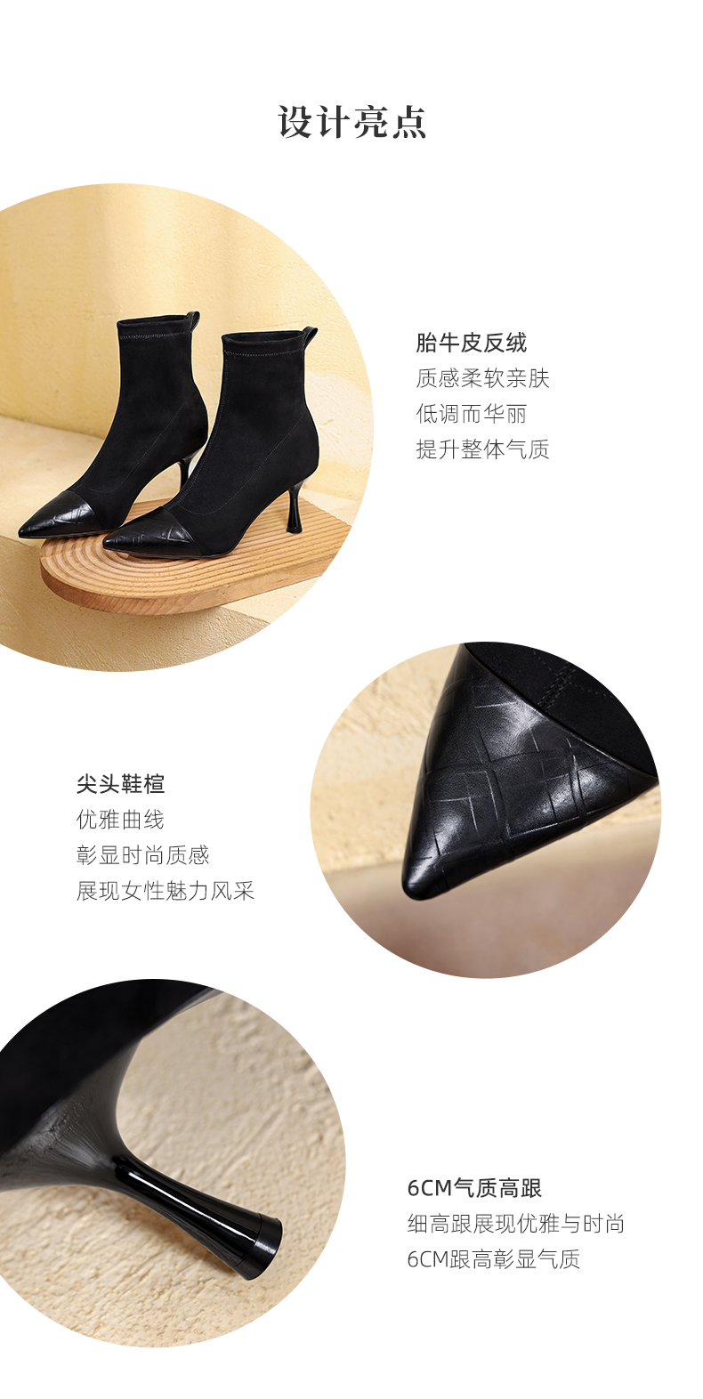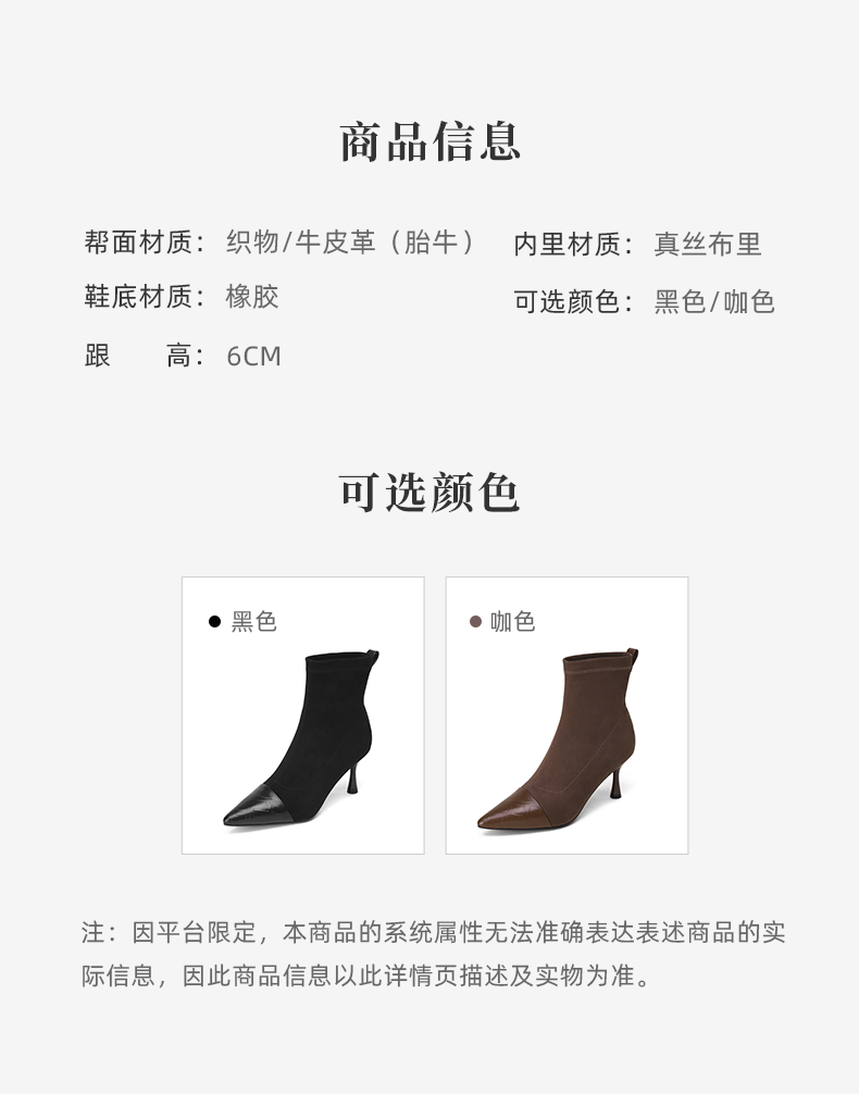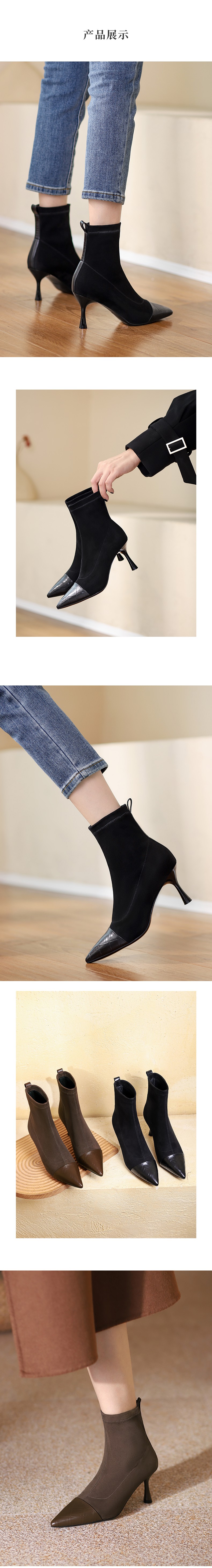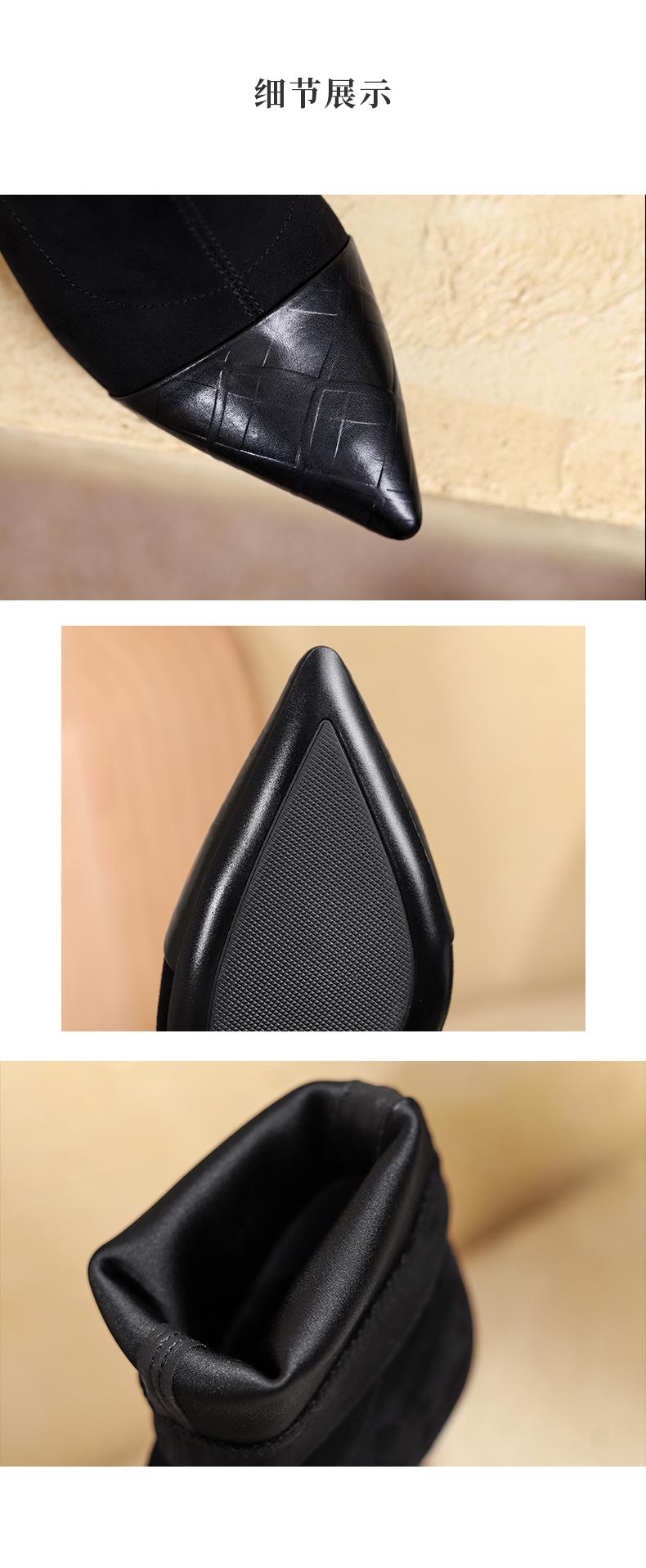 西村名物2021冬季新款弹力高跟短靴女尖头细跟短筒瘦瘦靴T21DS44961