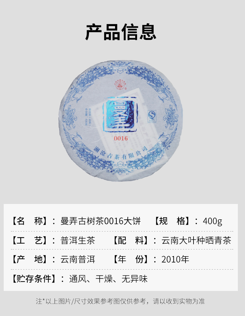 澜沧古茶2010年曼弄古树茶0016大饼普洱茶生茶400g/盒