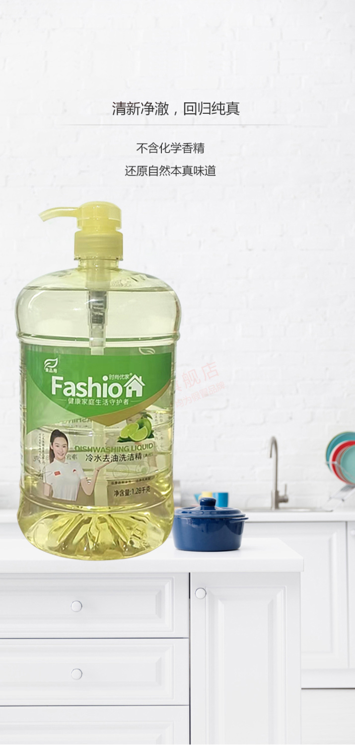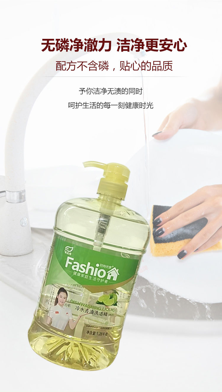 时尚优家冷水去油洗洁精(青柠)1.28L(买一送一)