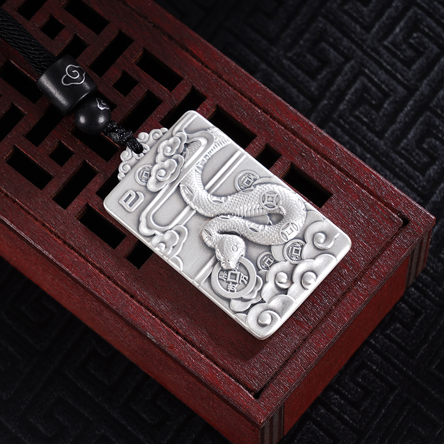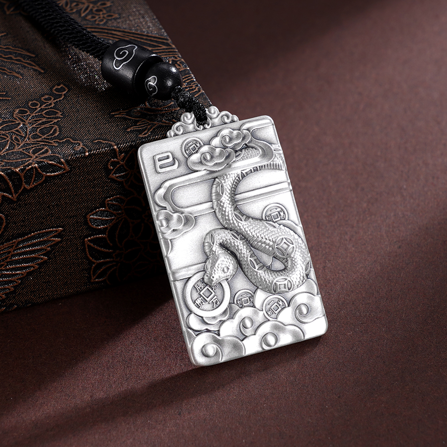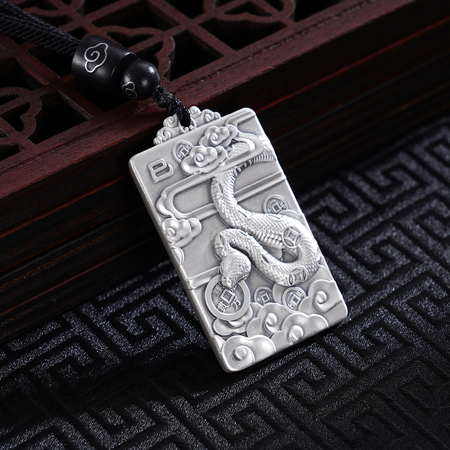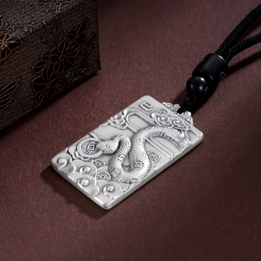 子佩集S999银【灵蛇献瑞】套链【ZXFTL001】仿古项链原创作品生肖带绳方牌2409