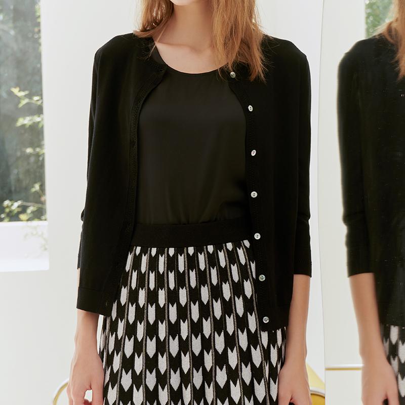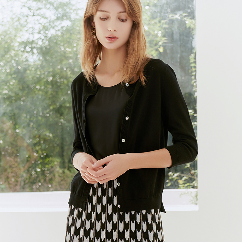 【七分袖薄款针织开衫】23年春季新品女士圆领针织开衫百搭薄款小外套