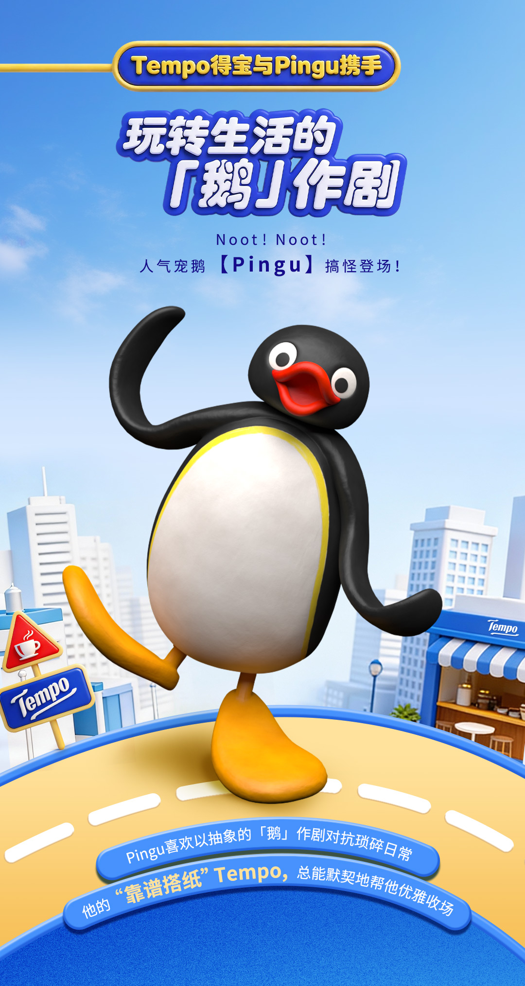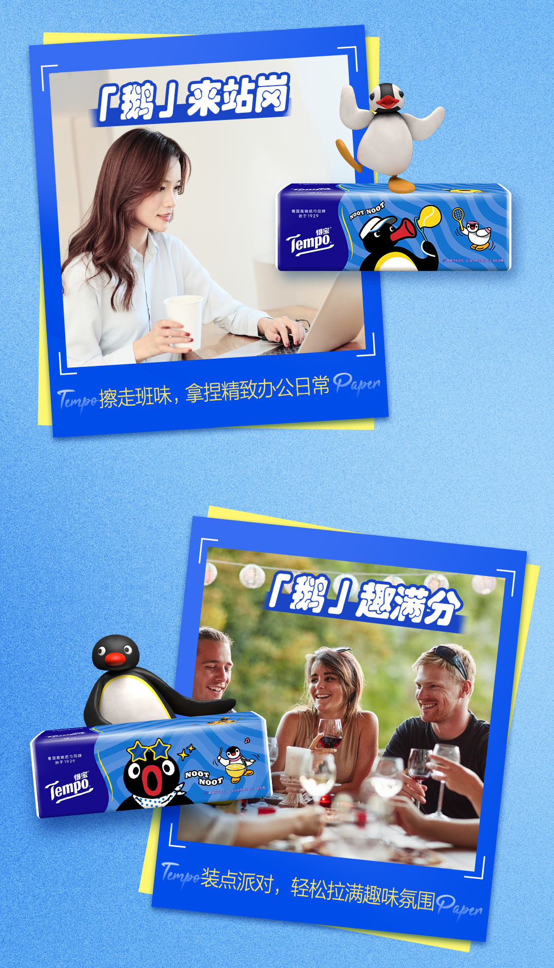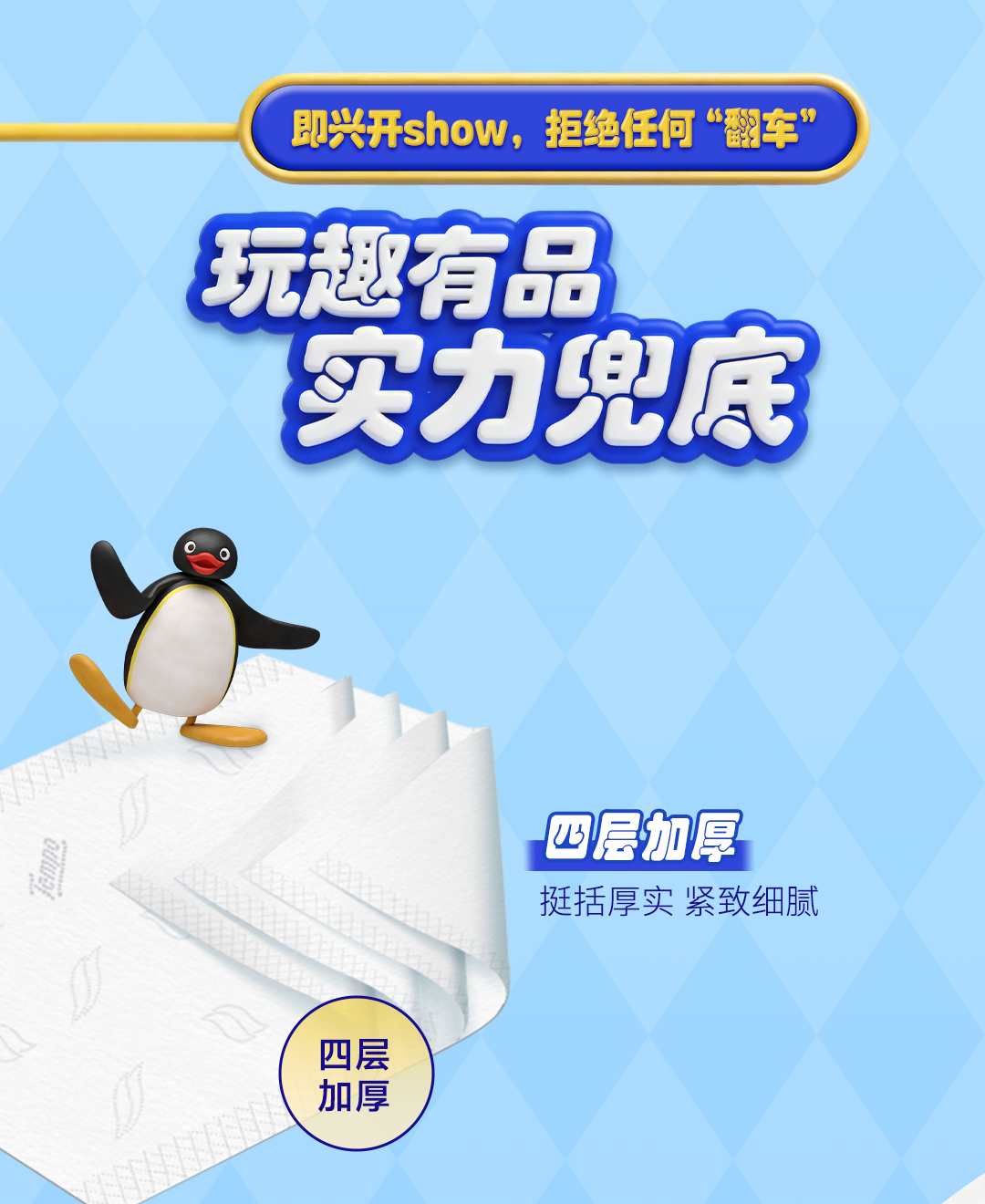 【新品】Tempo得宝 Pingu联名款 无香抽纸80抽*15包/箱 四层加厚 两款不同联名包装 一次拥有