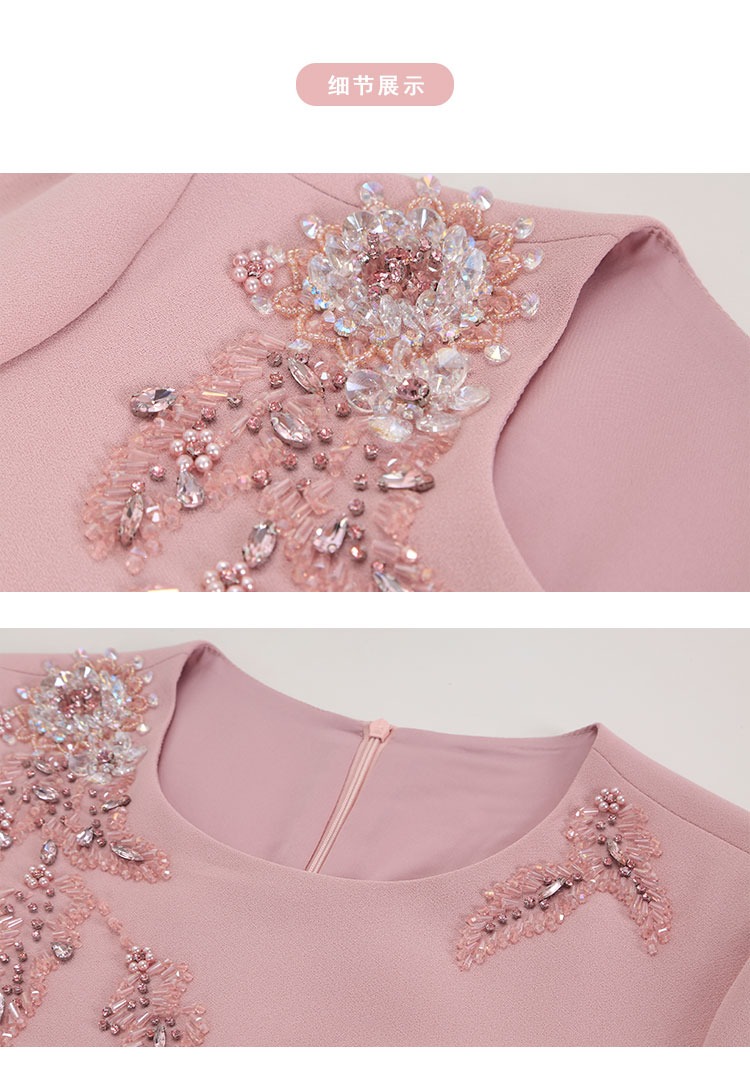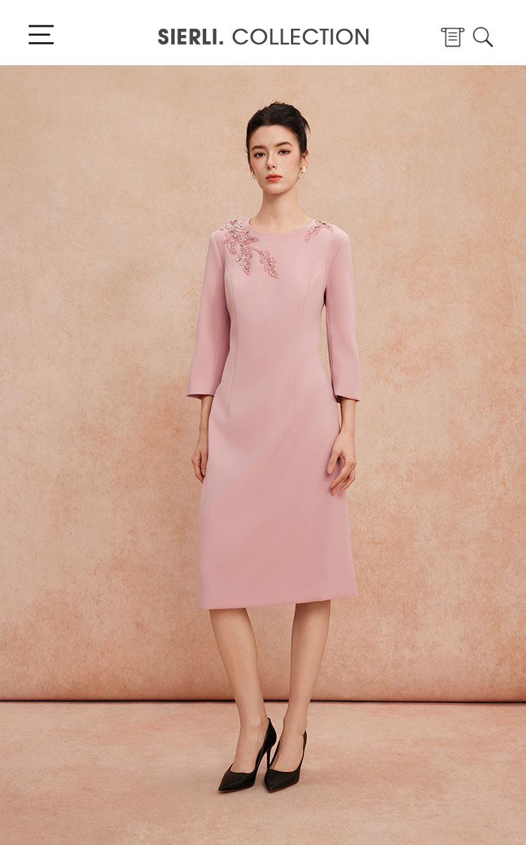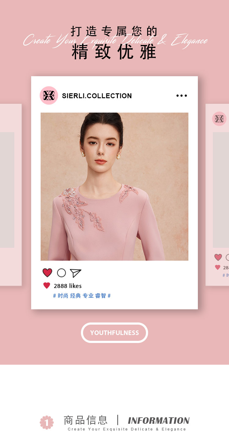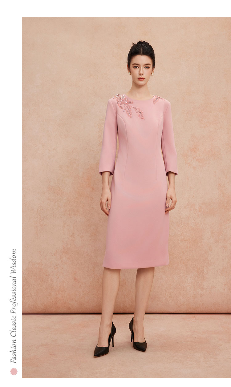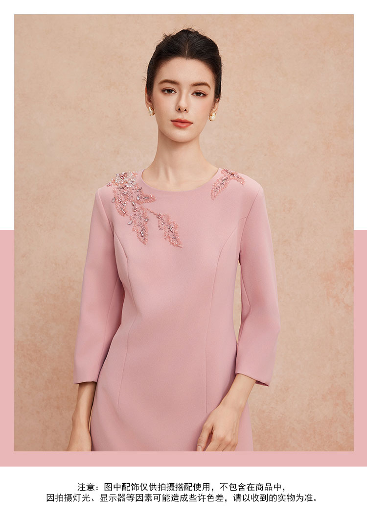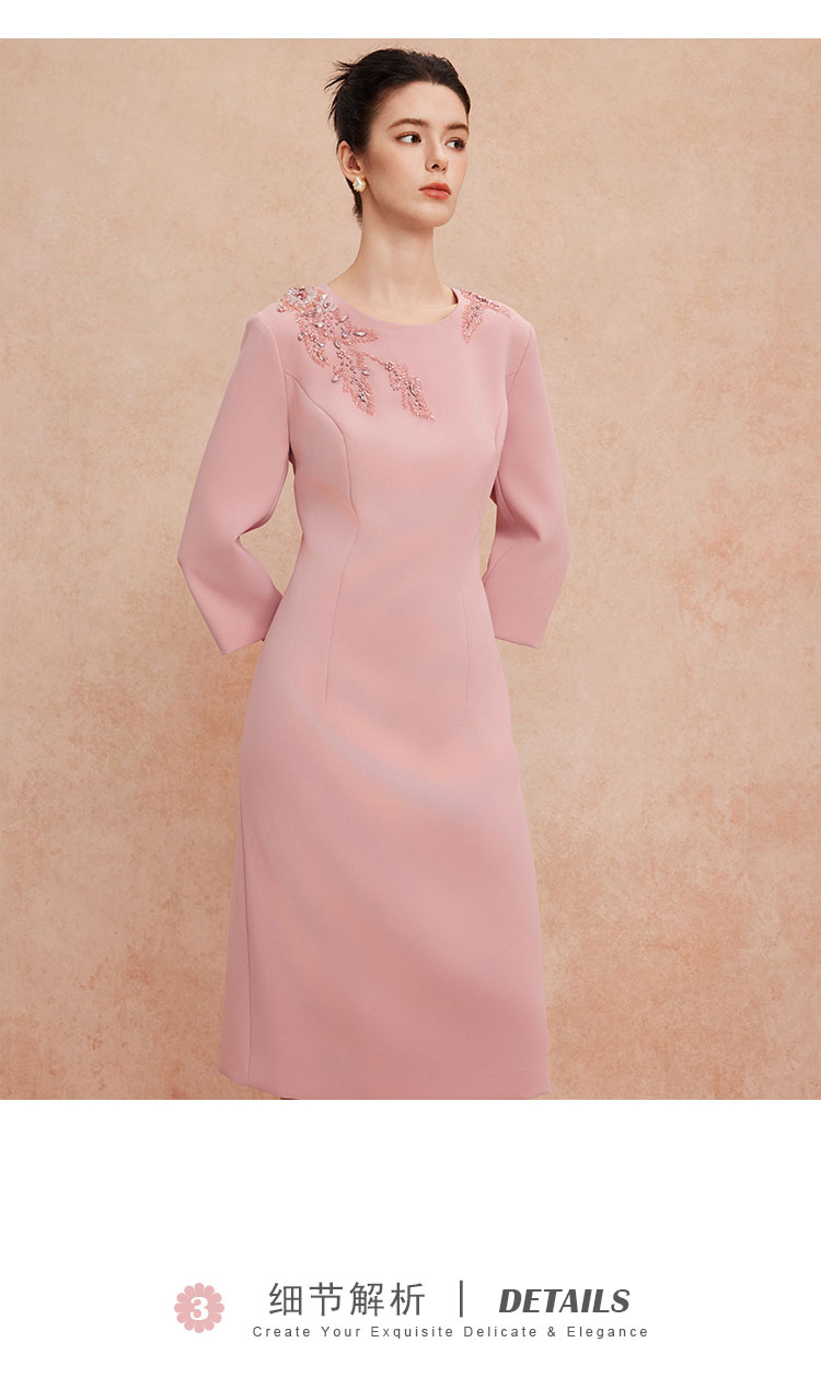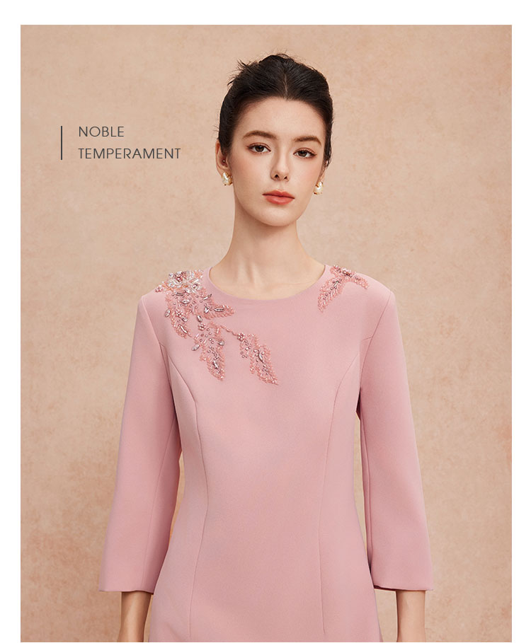 QG806斯尔丽25新款小礼服宴会着装手工立体绣珠收腰直身端庄优雅连衣裙
